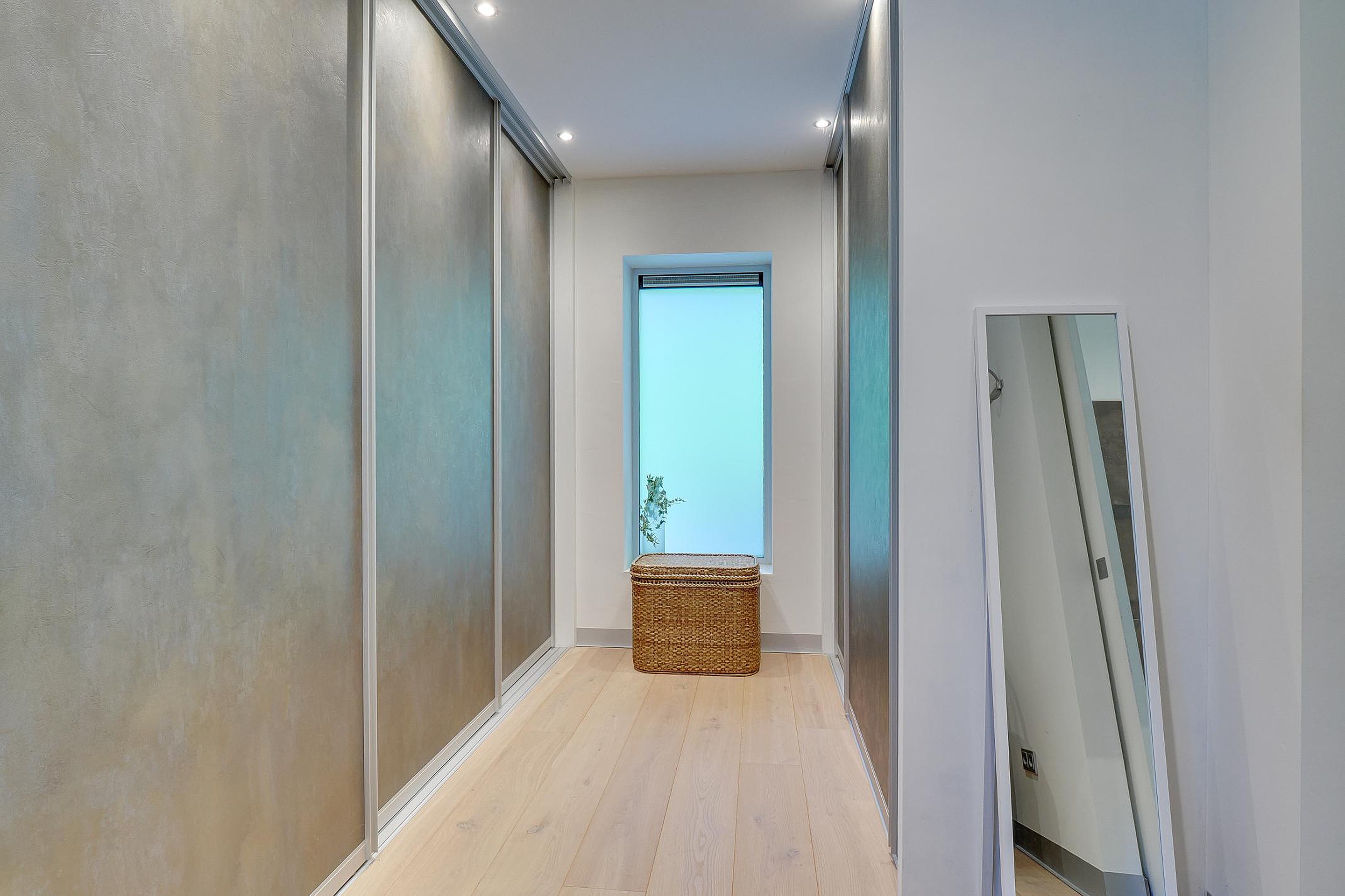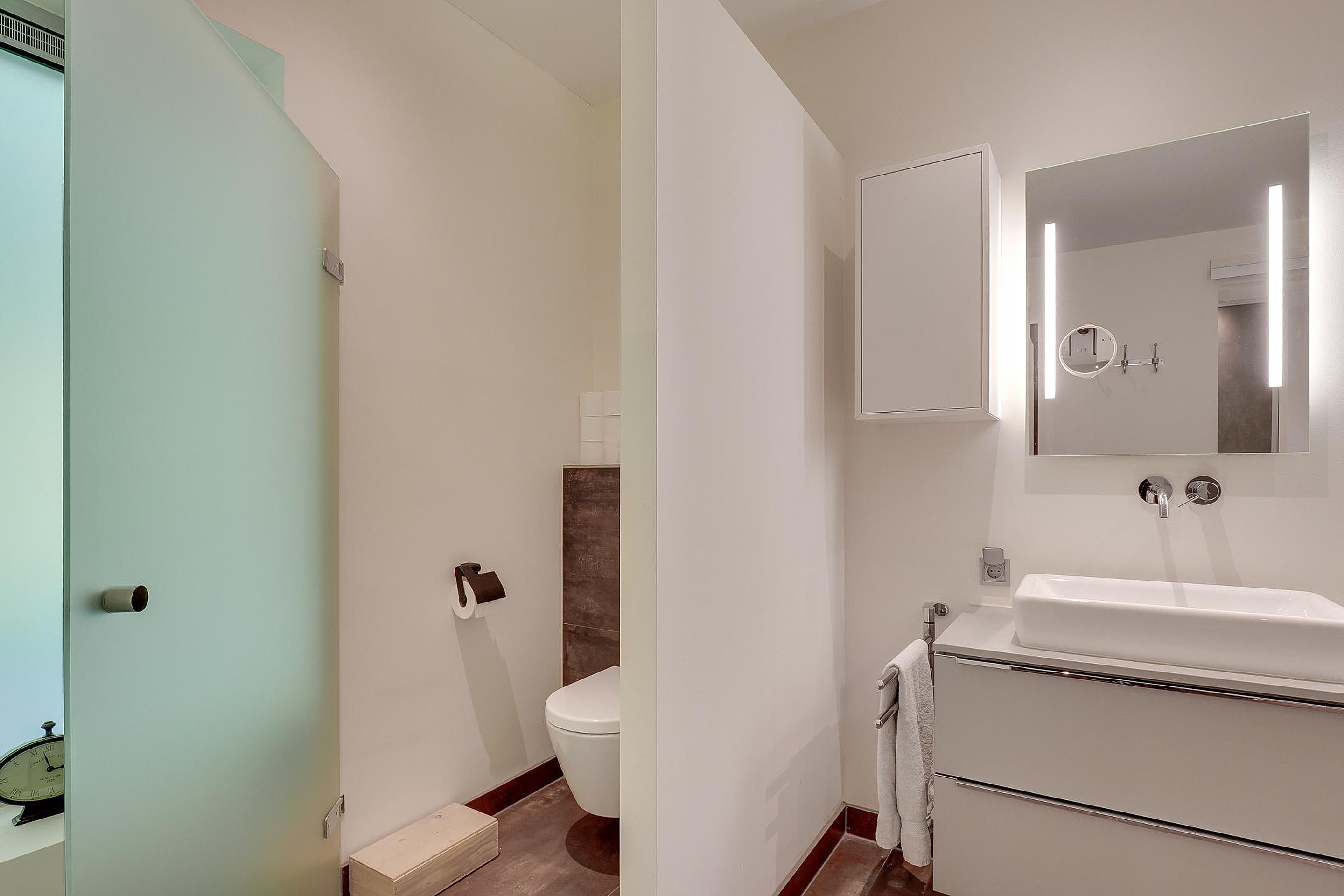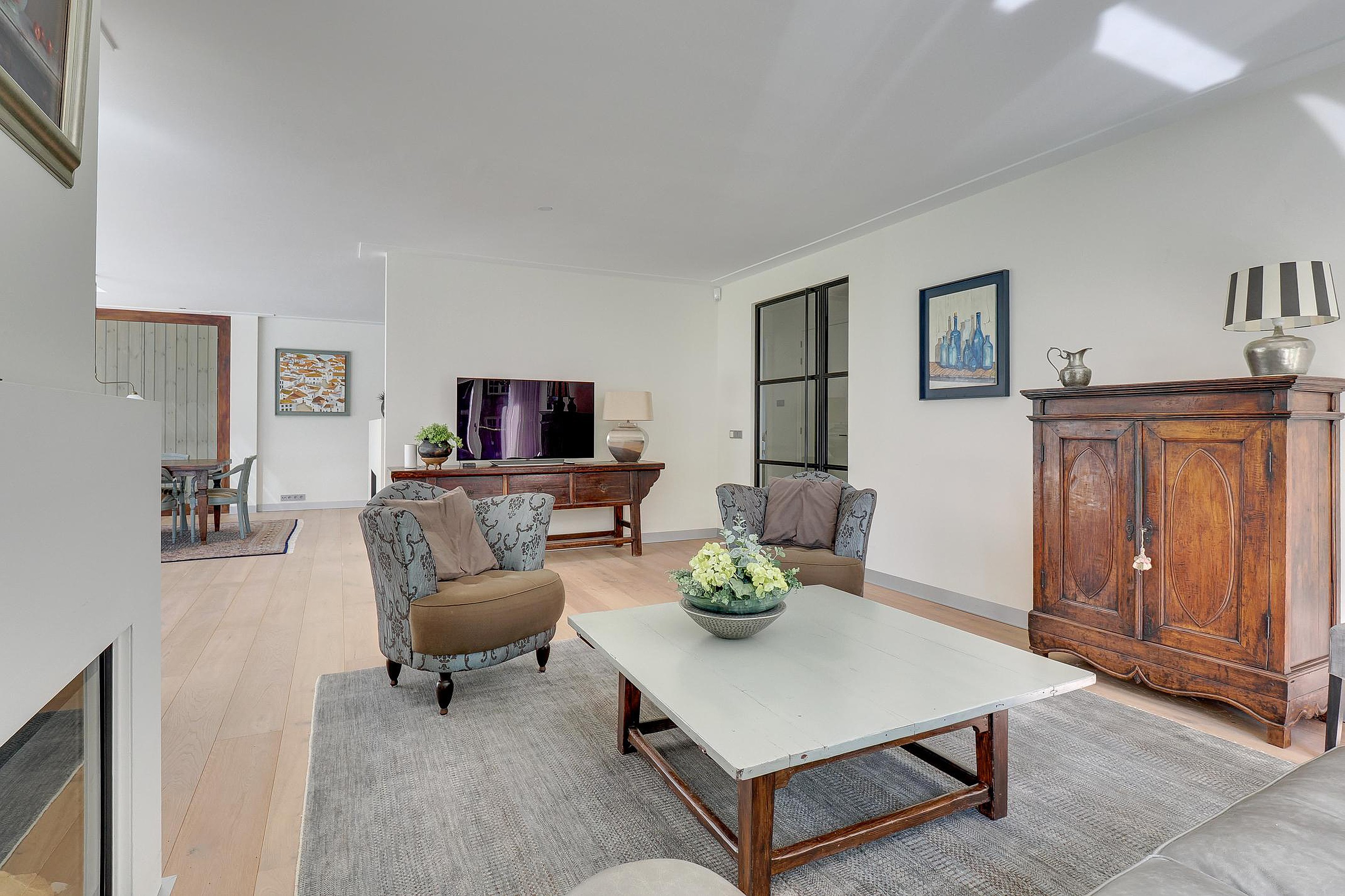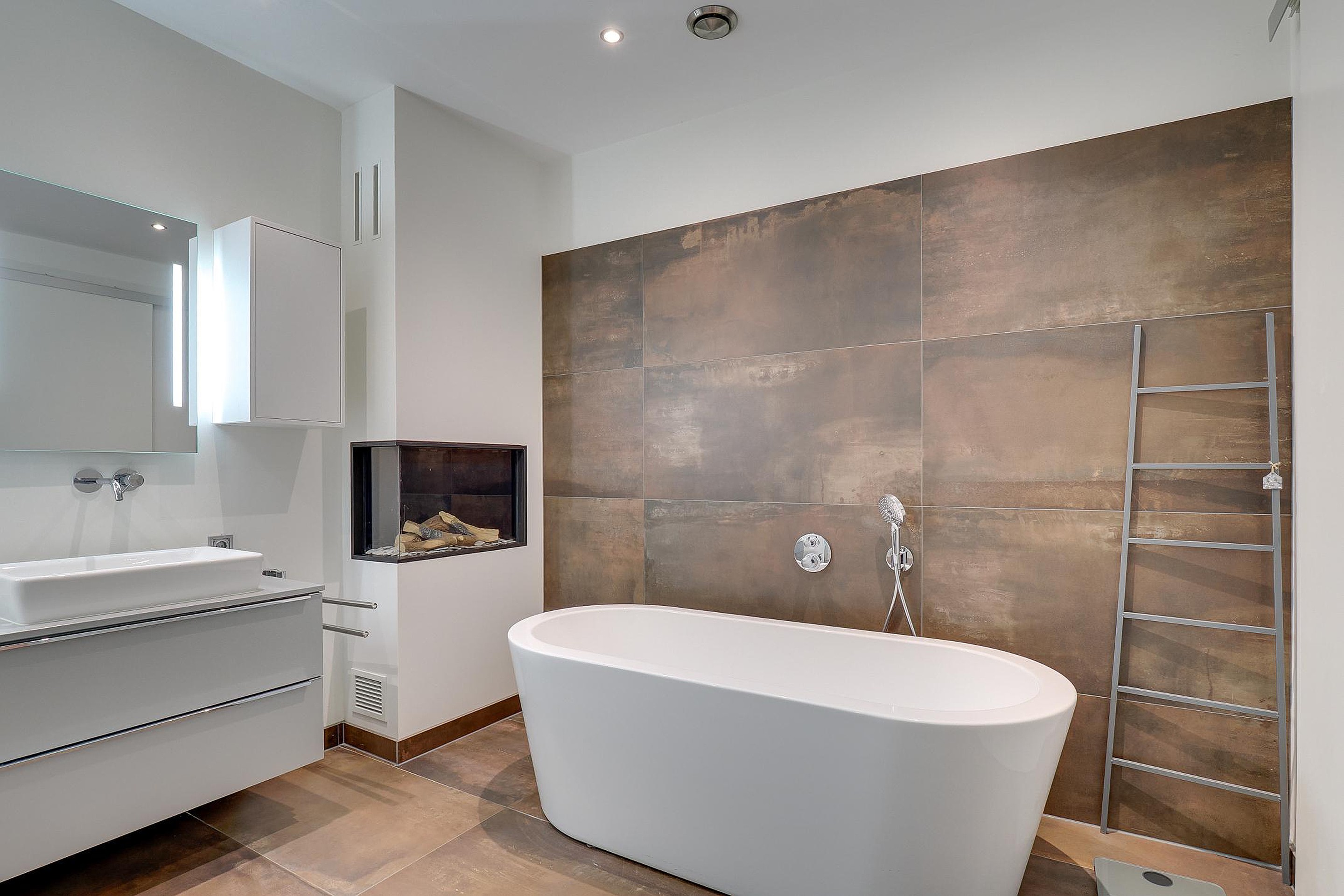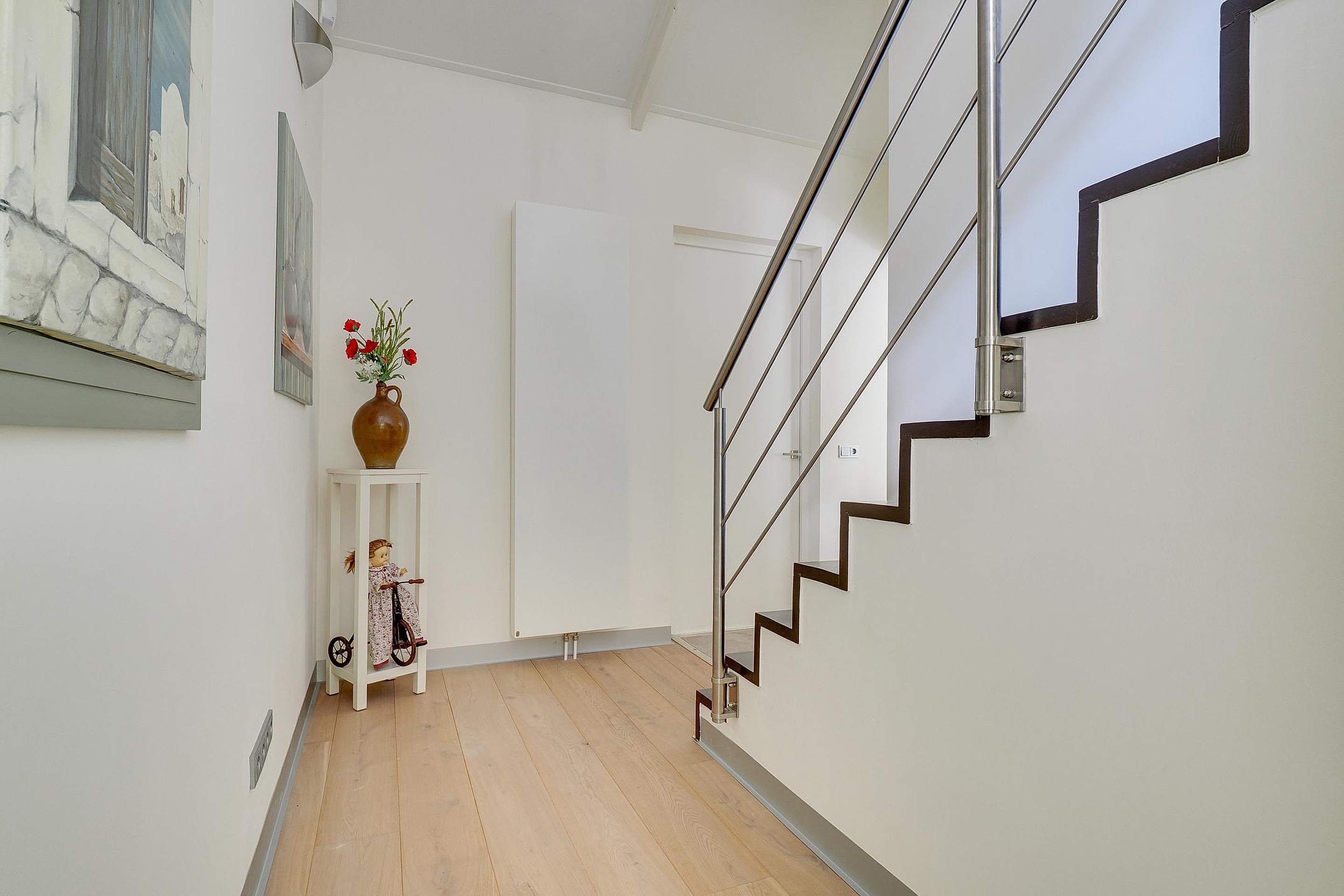 Je komt binnen in een ruime entree met stoere opslaande glasdeuren naar de woonvertrekken. Van hieruit wandel je de woonkamer binnen. Hier ligt een eiken houten vloer met vloerverwarming, lekker aangenaam en duurzaam. De woonkamer baadt in het licht door het vele glas. Schuifdeuren en ramen van vloer tot plafond verbinden de leefruimtes vloeiend met het terras en de tuin. Vooral de grote ramen laten het groen naar binnen komen. De gashaarden zorgen voor gezelligheid in de wat guurdere dagen. De open keuken is modern en voorzien van de beste apparatuur (Miele) incl. een wijnkoeler. Terwijl je kookt, hou je fijn contact met je dierbaren. Aan de zijde van de keuken loop je via de deur naar de Master bedroom met eigen royale walk-in closet en luxe badkamer. Hier slaap je aan de achterzijde en daarom altijd rust gewaarborgd. De aangrenzende luxe sfeervolle badkamer bevat een dubbele wastafel, een ruime inloopdouche en een bad met gashaard. Badderen wordt zo een ultieme wellnes ervaring.