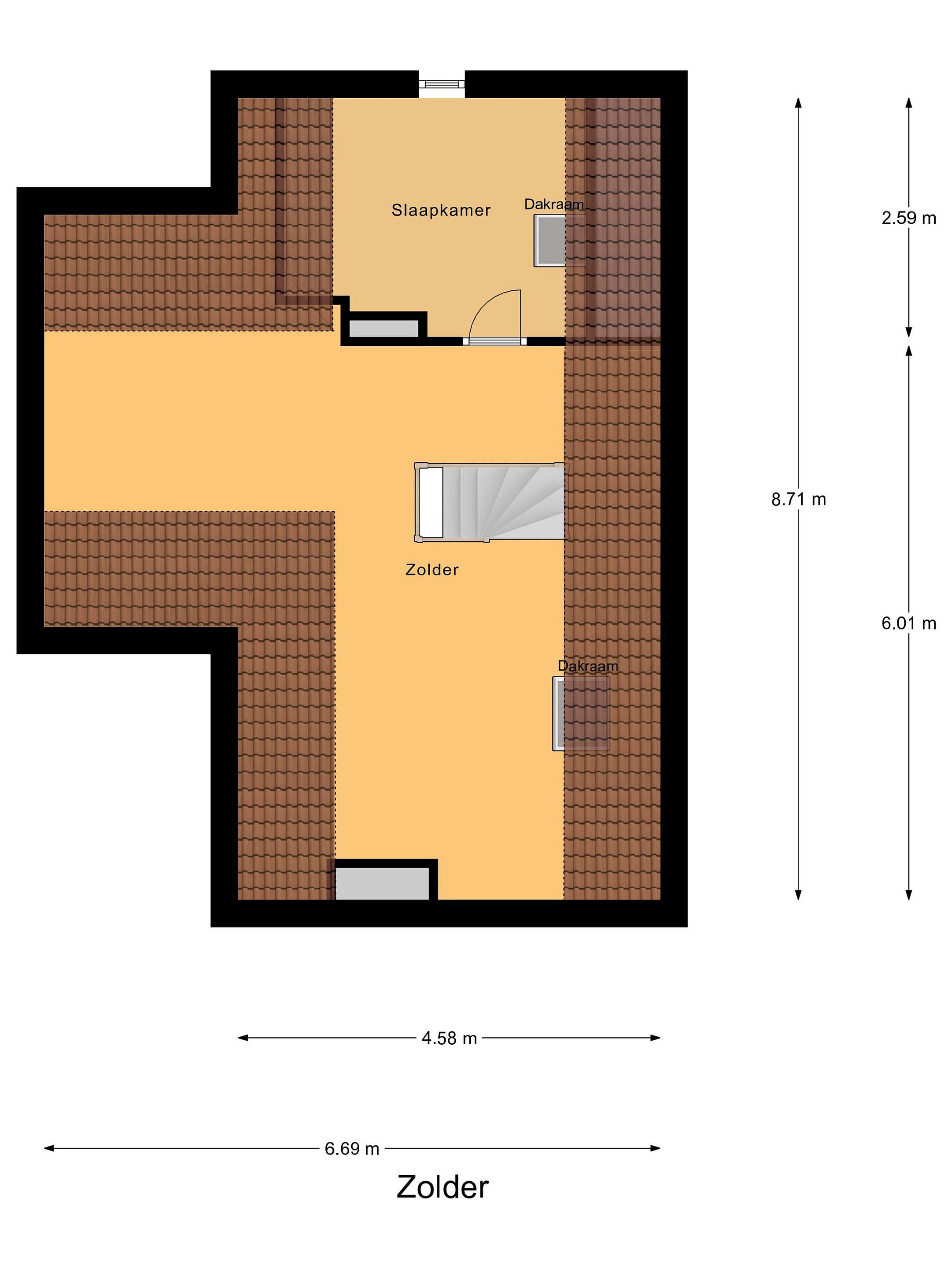 Via een vaste trap bereikbare ruime zolder (ca 27m2) met dakraam en een (slaap/hobby) kamer van ca 7,5 m2 eveneens met dakraam.