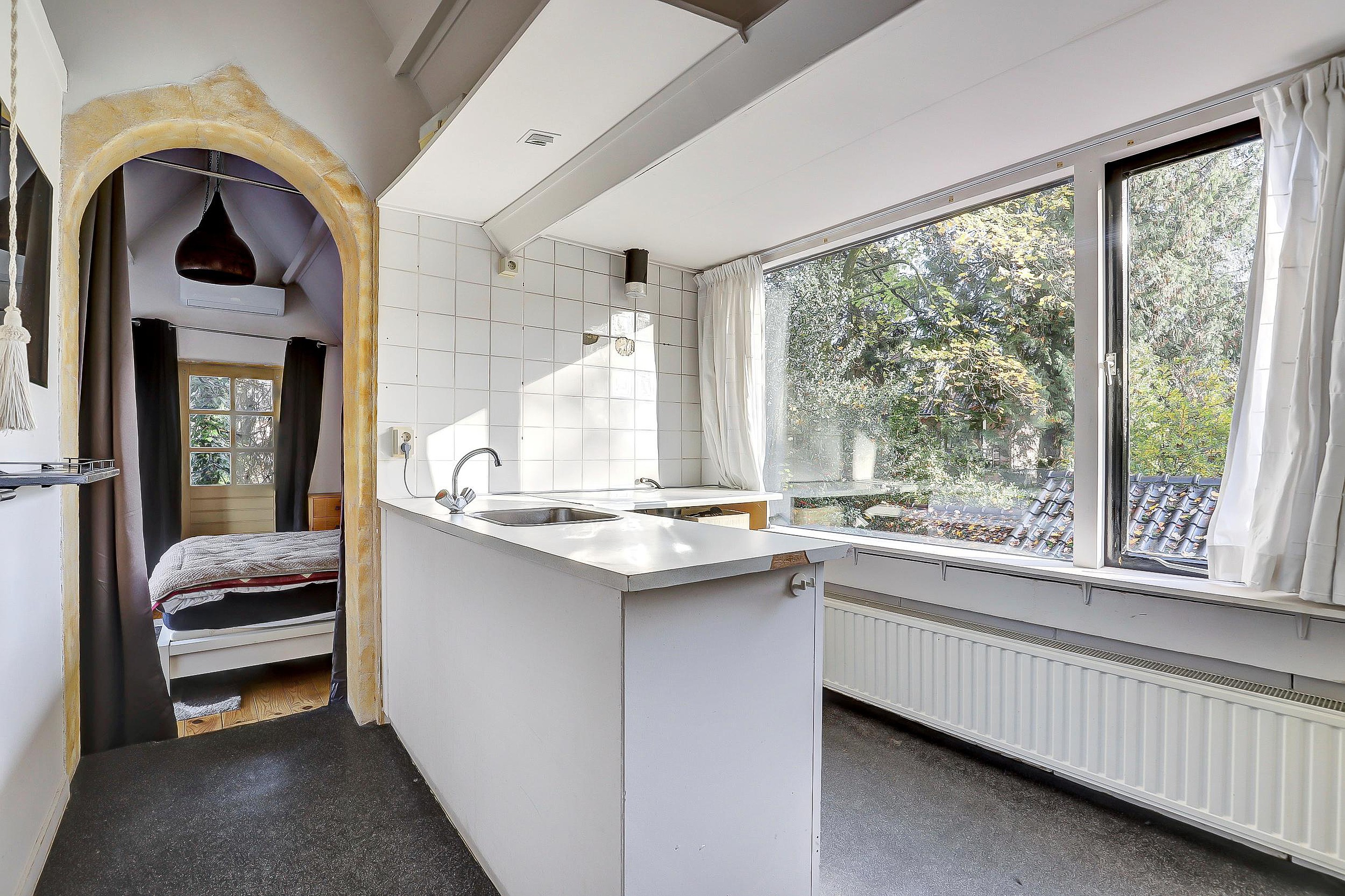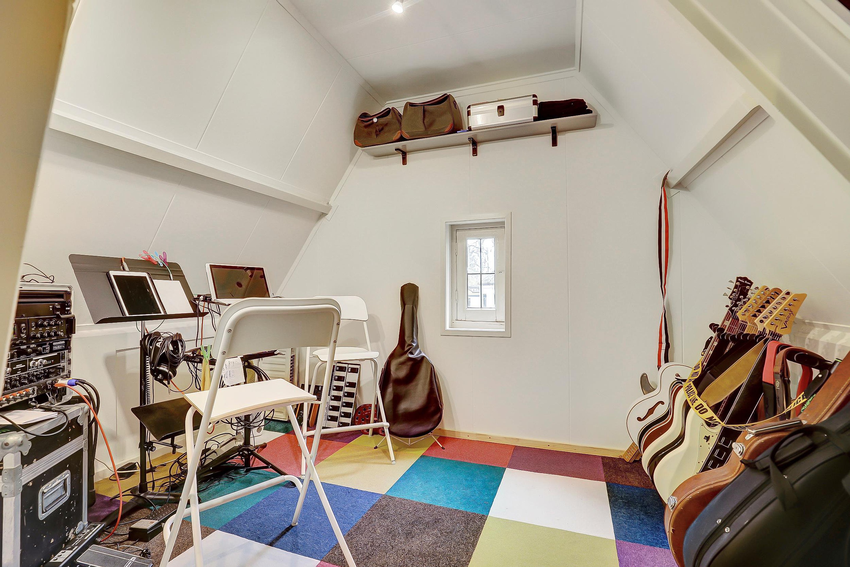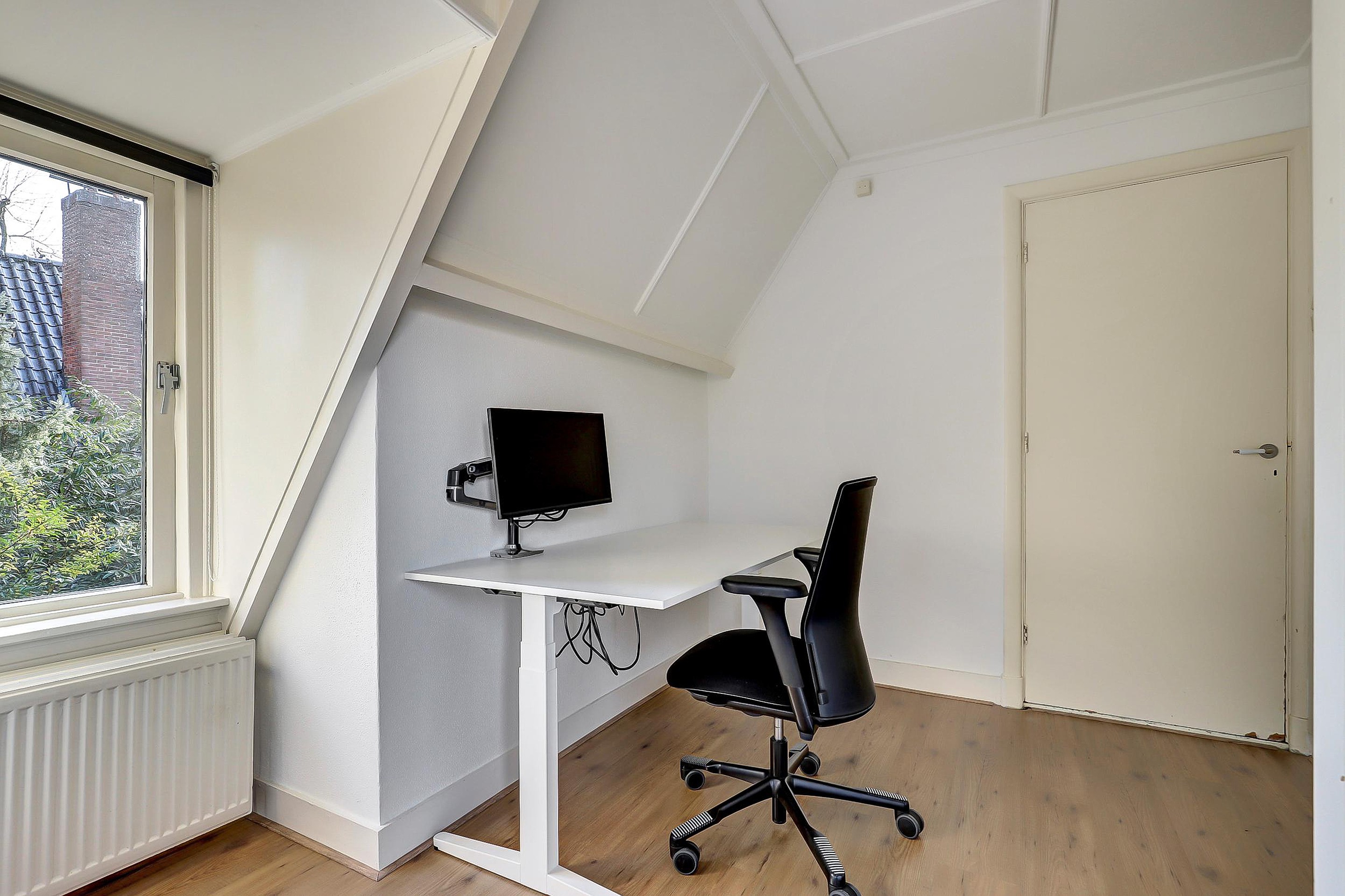 De studio (ca. 30 m2 incl. badkamer en keuken) aan de achterzijde heeft een dakkapel, airco en een separate entree via een stalen trap buitenom. Naastgelegen bevindt zich een afsluitbare ruimte met keukenblok en badkamer met toilet en douche. Deze verdieping is daardoor uitstekend bruikbaar voor bijvoorbeeld een au pair, mantelzorger, thuiswonend kind of als zelfstandige werkruimte.
