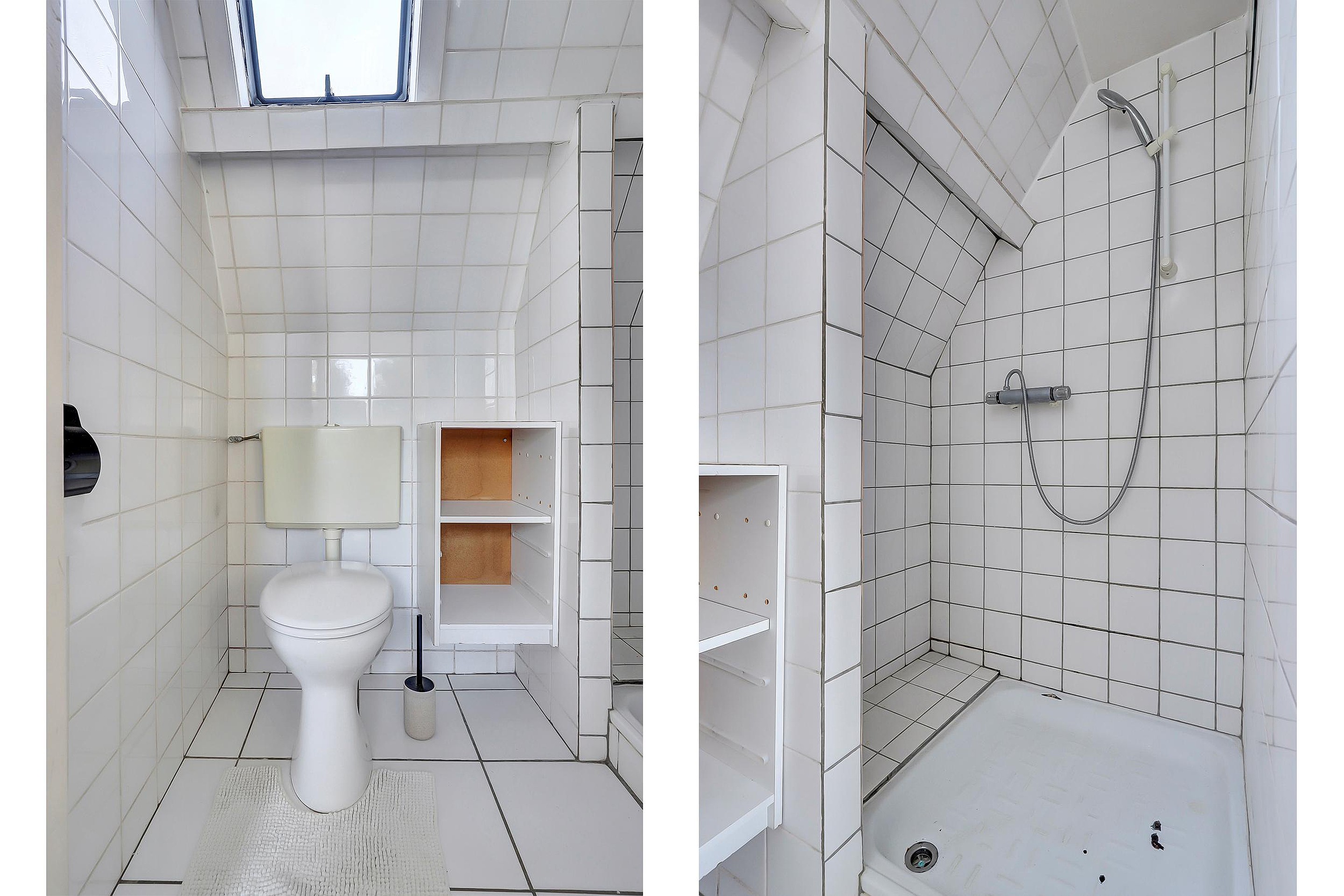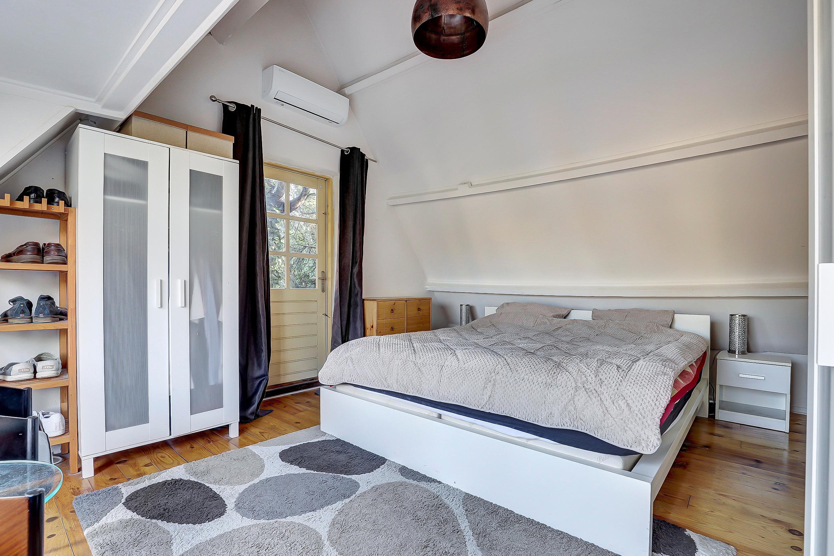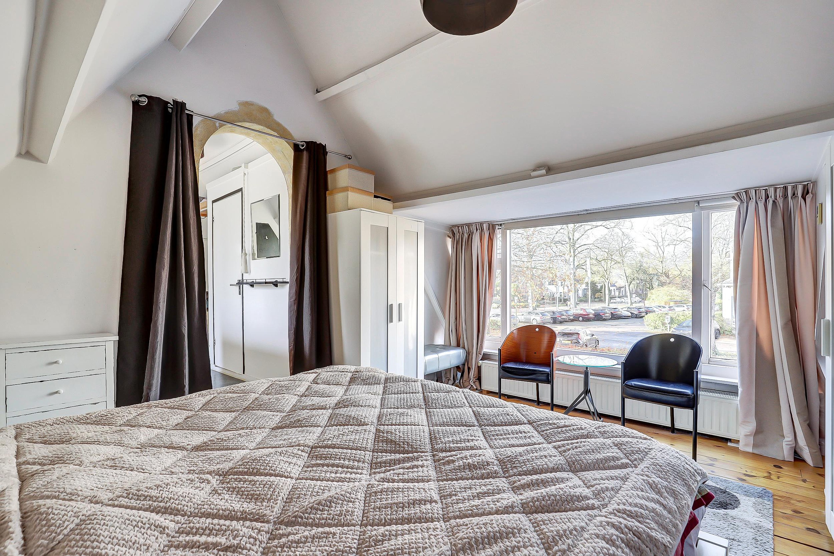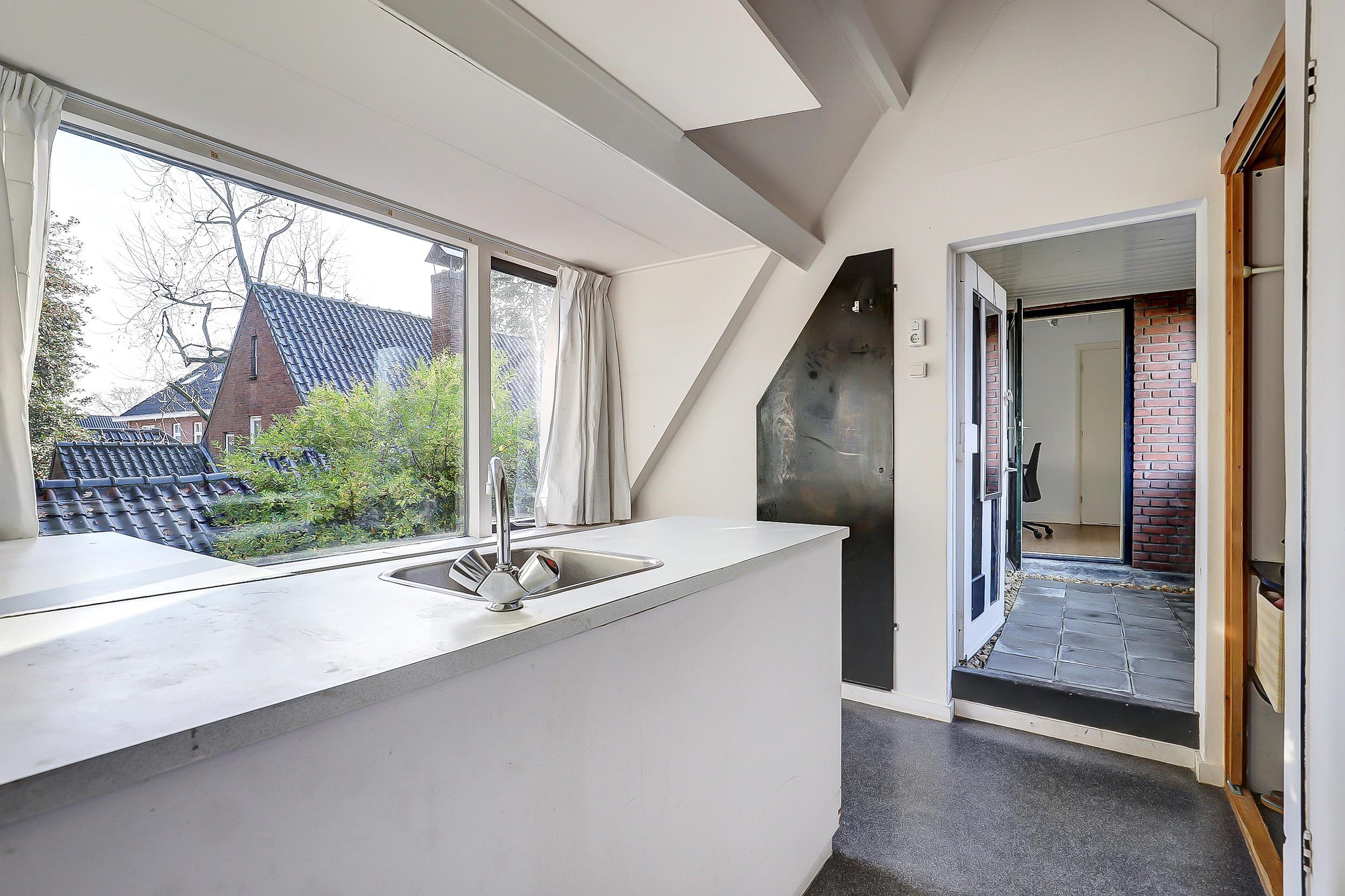 De studio (ca. 30 m2 incl. badkamer en keuken) aan de achterzijde heeft een dakkapel, airco en een separate entree via een stalen trap buitenom. Naastgelegen bevindt zich een afsluitbare ruimte met keukenblok en badkamer met toilet en douche. Deze verdieping is daardoor uitstekend bruikbaar voor bijvoorbeeld een au pair, mantelzorger, thuiswonend kind of als zelfstandige werkruimte.