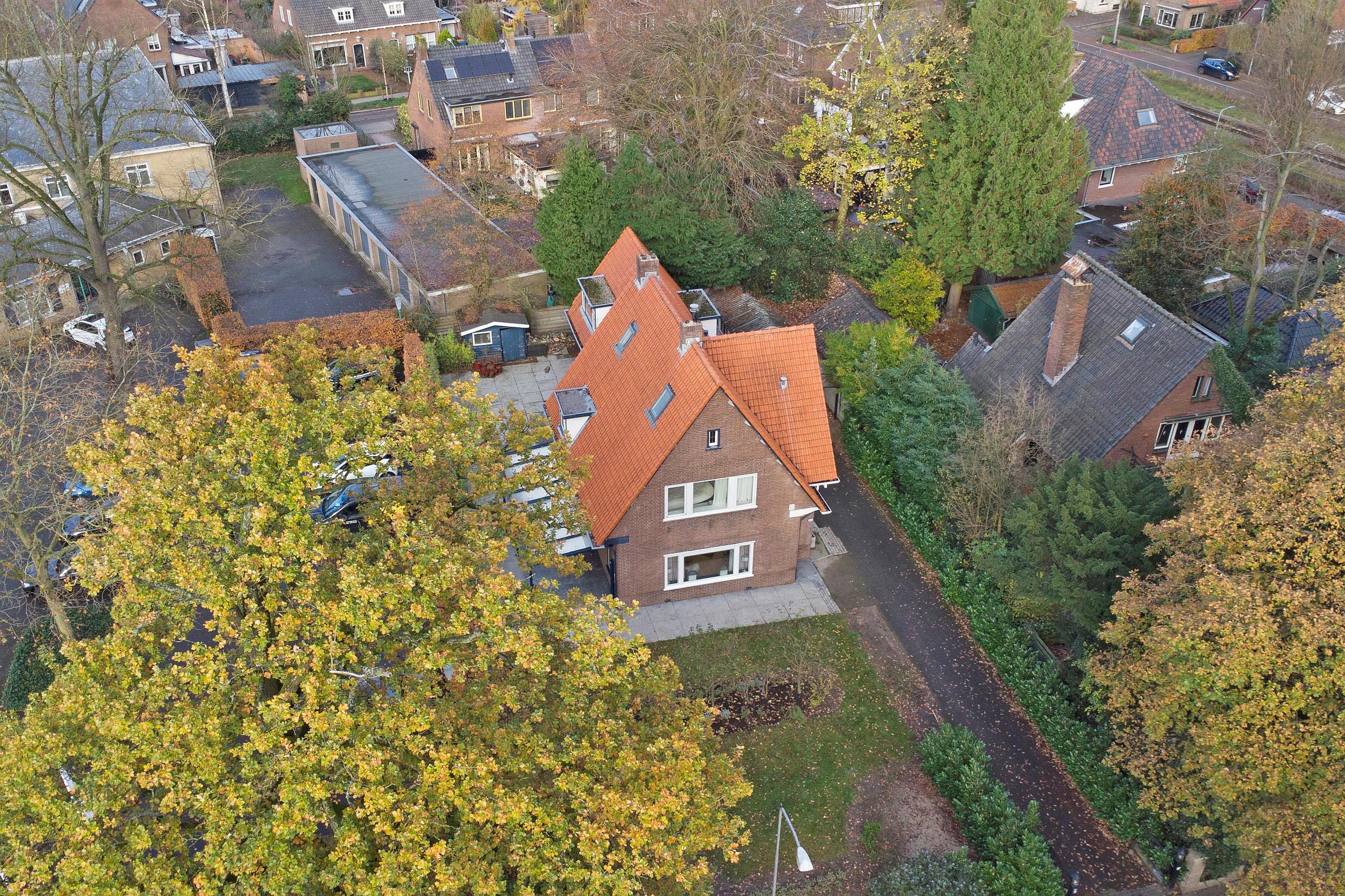 Vrijstaande jaren ’30 villa met authentieke details; L-vormige woonkamer (ca. 40 m2), multifunctionele ruimte (29 m2) en een studio; in totaal zeven (slaap)kamers; mogelijkheid om de woning geheel naar eigen smaak te moderniseren; gelegen aan een groene, geliefde laan nabij centrum, bos én station; royale, privacy rijke tuin rondom de woning.