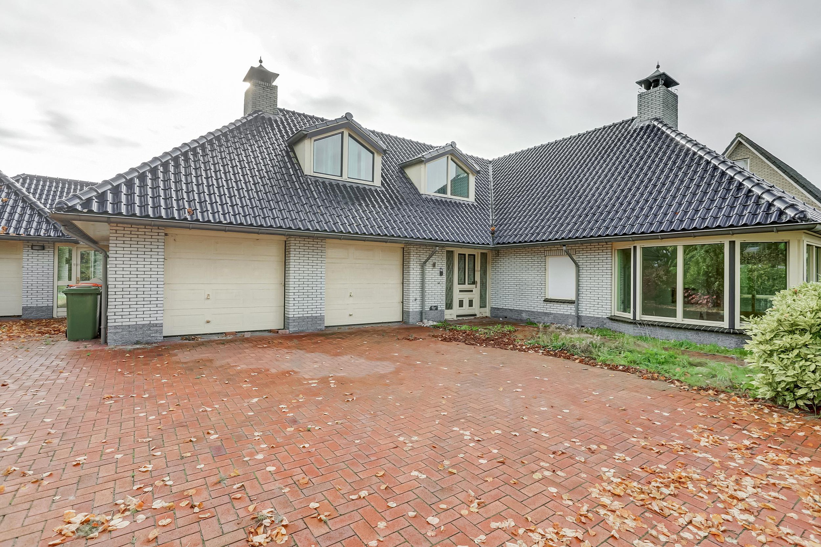 Ruime entree met meterkast en trapopgang. Ruime woonkamer met open keuken, die zorgt voor een fijne verbinding tussen koken en wonen. Vanuit de woonkamer is er uitzicht op de tuin rondom de woning. Daarnaast is er een slaapkamer op de begane grond, wat de woning ook geschikt maakt voor gelijkvloers wonen. De badkamer op de begane grond is gemoderniseerd en voorzien van dubbele wastafel, douche en toilet. Verder is er een bijkeuken met toegang tot buiten. Hal met gastentoilet. Voormalige inpandige garage, nu in gebruik genomen als kantoor/multifunctionele ruimte. De twee garagedeuren zijn nog aanwezig, maar de binnenruimtes hebben inmiddels een andere functie gekregen.