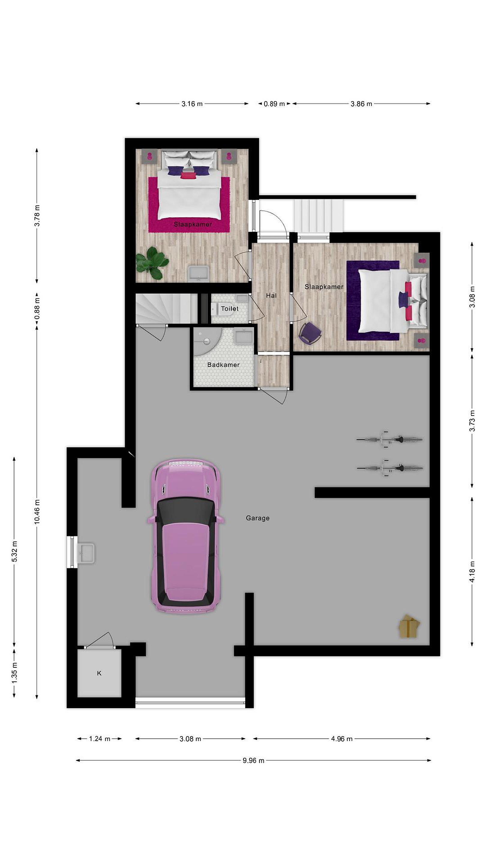 Het souterrain biedt verrassend veel ruimte. Je vindt hier een grote multifunctionele ruimte die dienst kan doen als garage voor meerdere auto’s, hobbyruimte of atelier. Daarnaast bevinden zich hier de witgoed aansluitingen. Deze verdieping heeft ook een hal, een tweede toilet, twee extra slaapkamers en een badkamer. Via een trap heb je direct toegang tot de achtertuin. Ook is het souterrain bereikbaar via de oprit, wat het ideaal maakt voor gasten of praktijk aan huis.