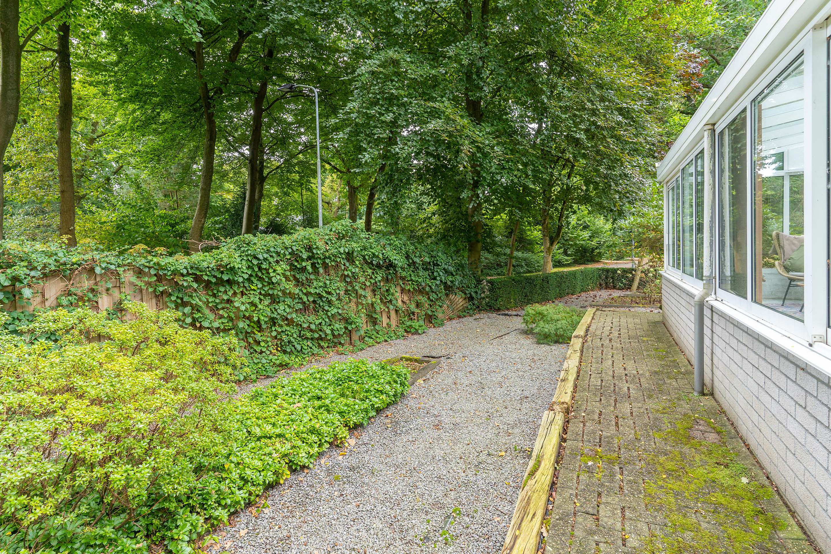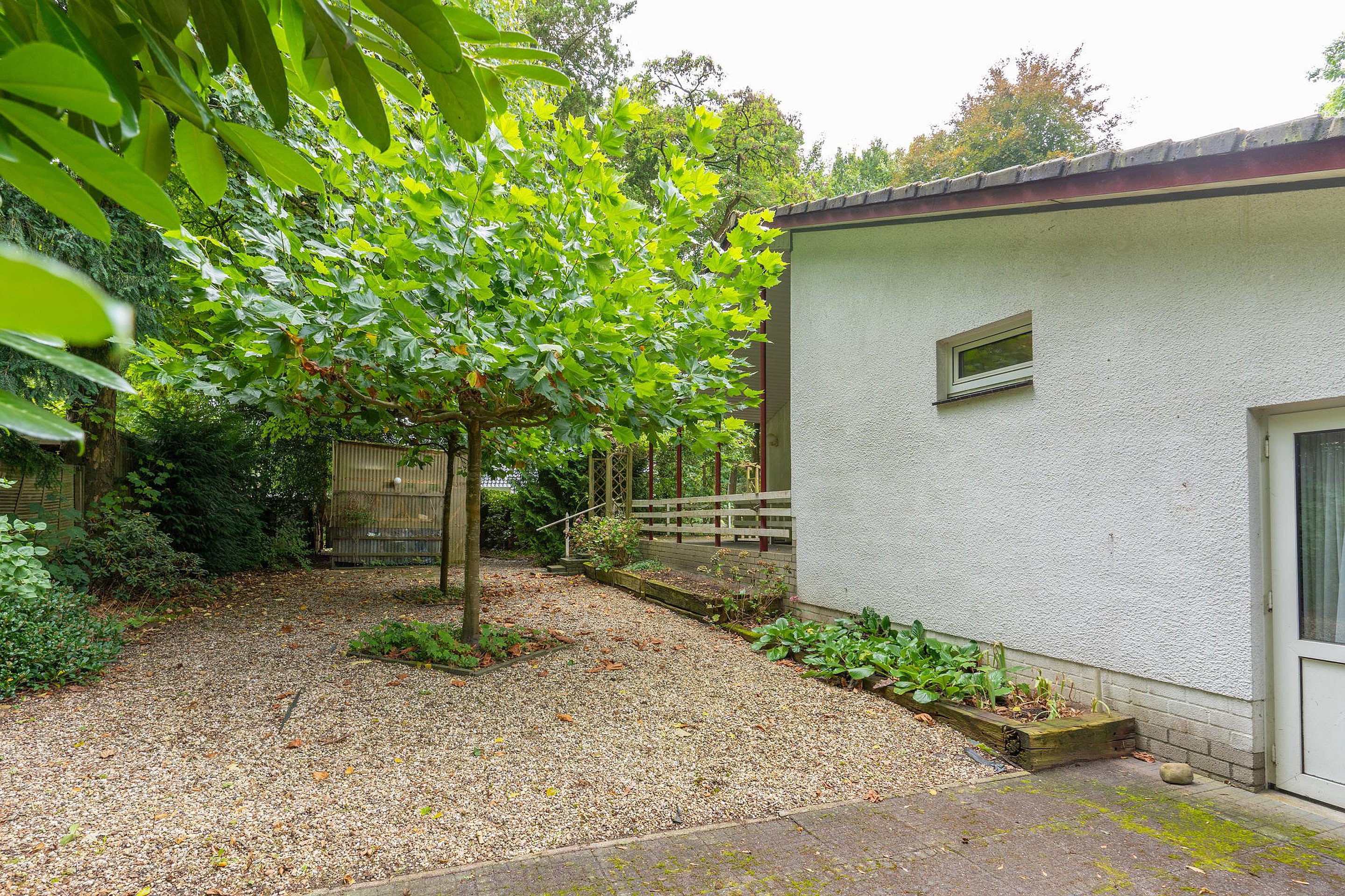 Tuin Bij de woning ligt een royale tuin. Een mix van grindpaden, borders en volwassen beplanting zorgt voor een sfeervol geheel. Aan de voorzijde biedt een dichte haag volop privacy, terwijl de achtertuin een fijne plek is om te ontspannen, te tuinieren of lange zomeravonden te beleven.