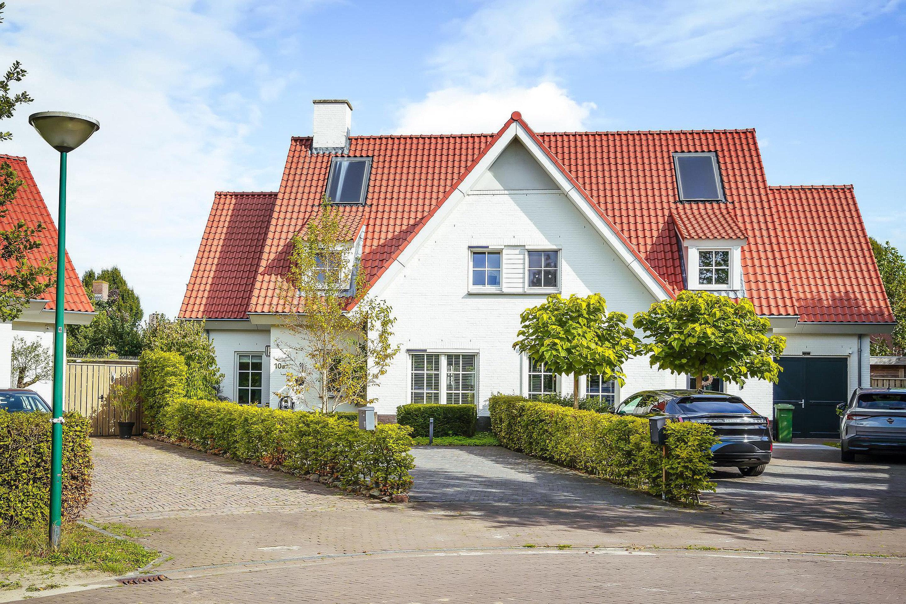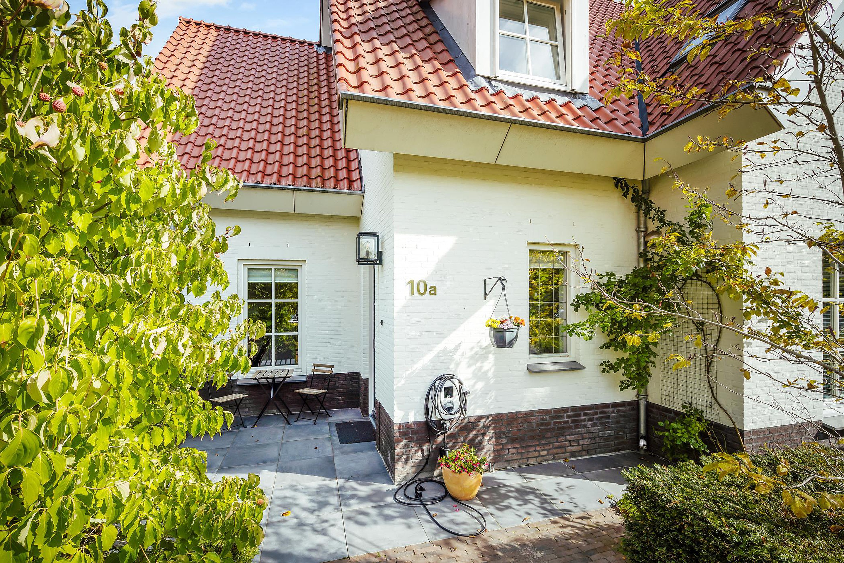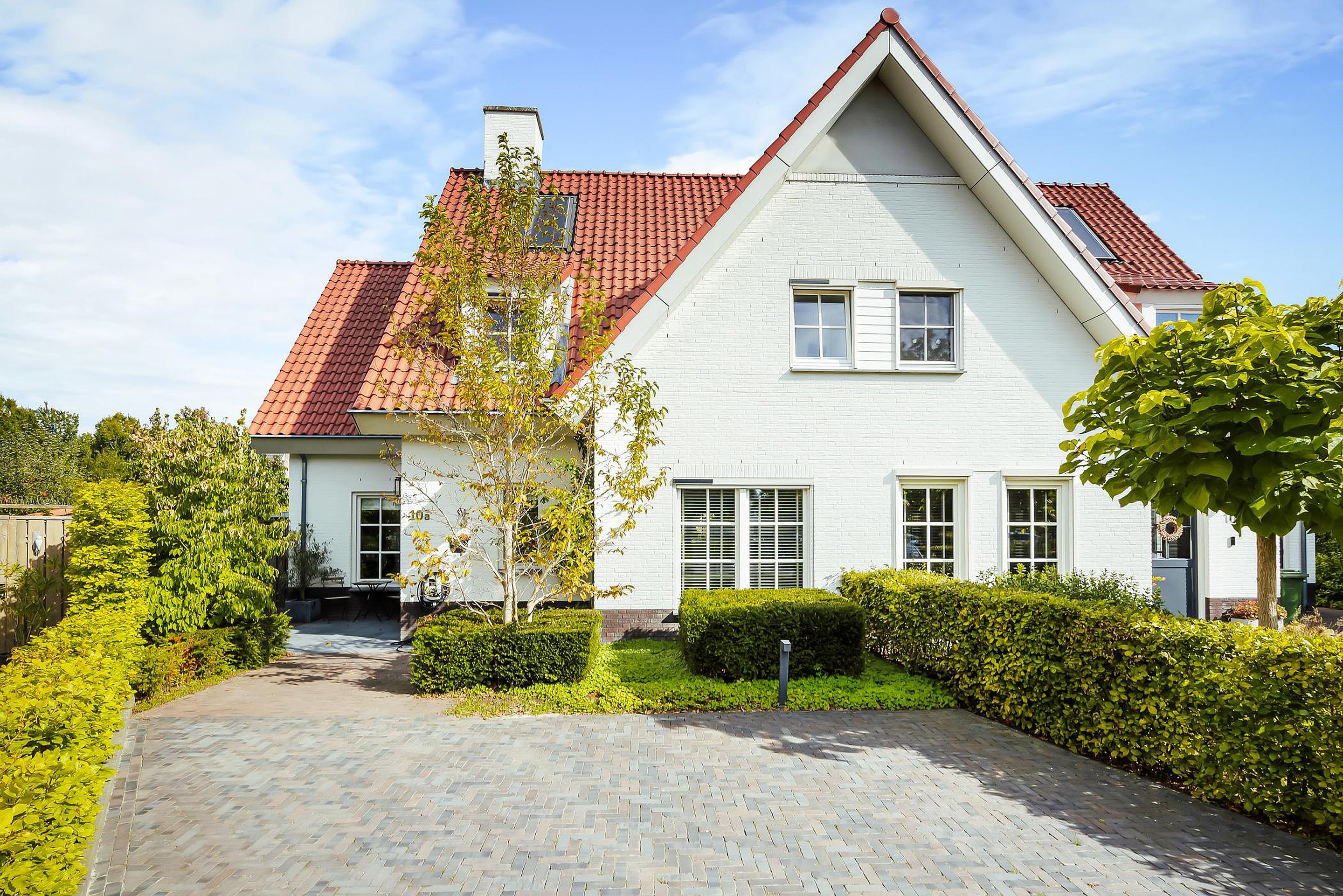 De voortuin is fraai aangelegd en beschikt over een bestraat gedeelte met plek voor 2 auto’s .