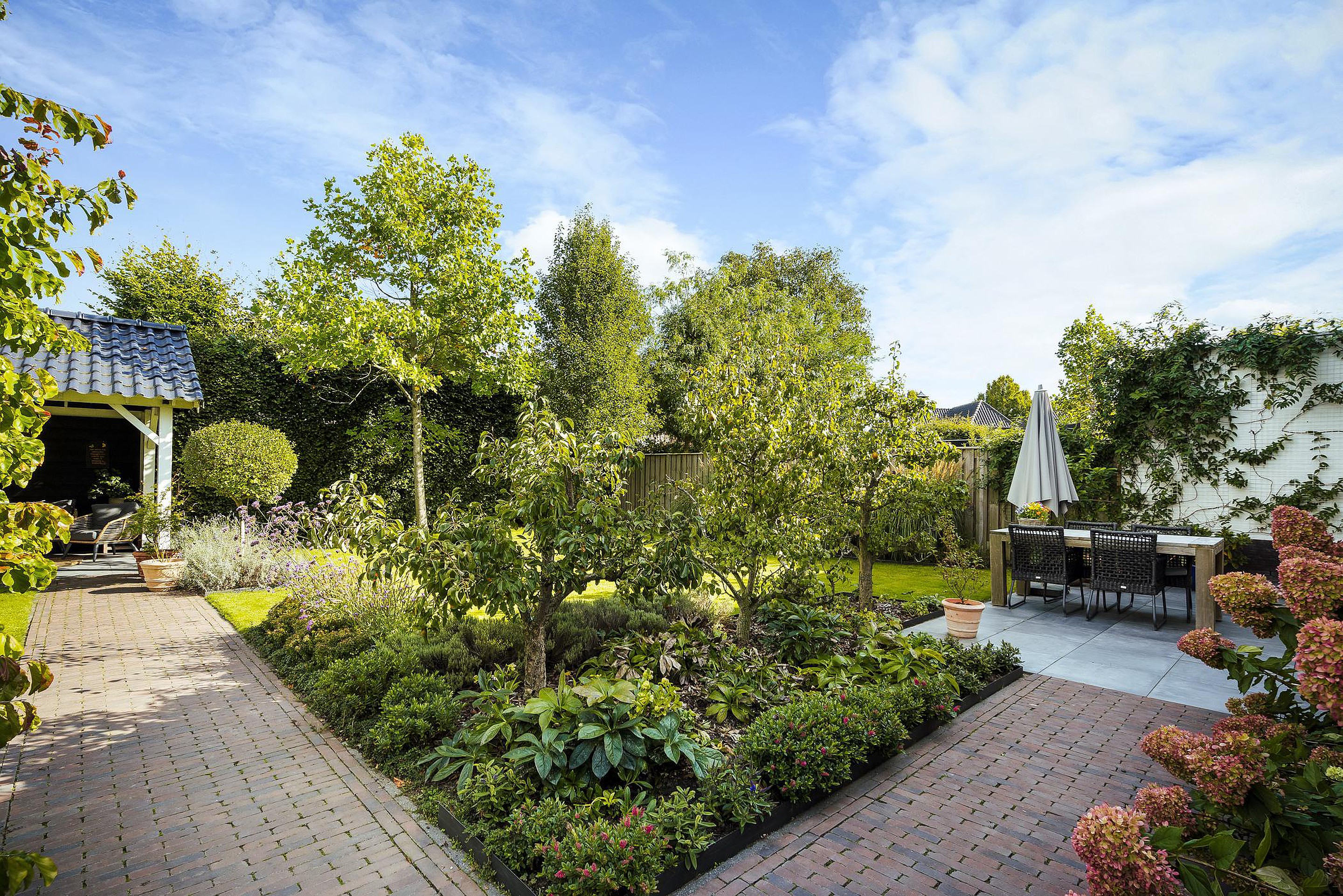 Zonnige tuin op het noorden