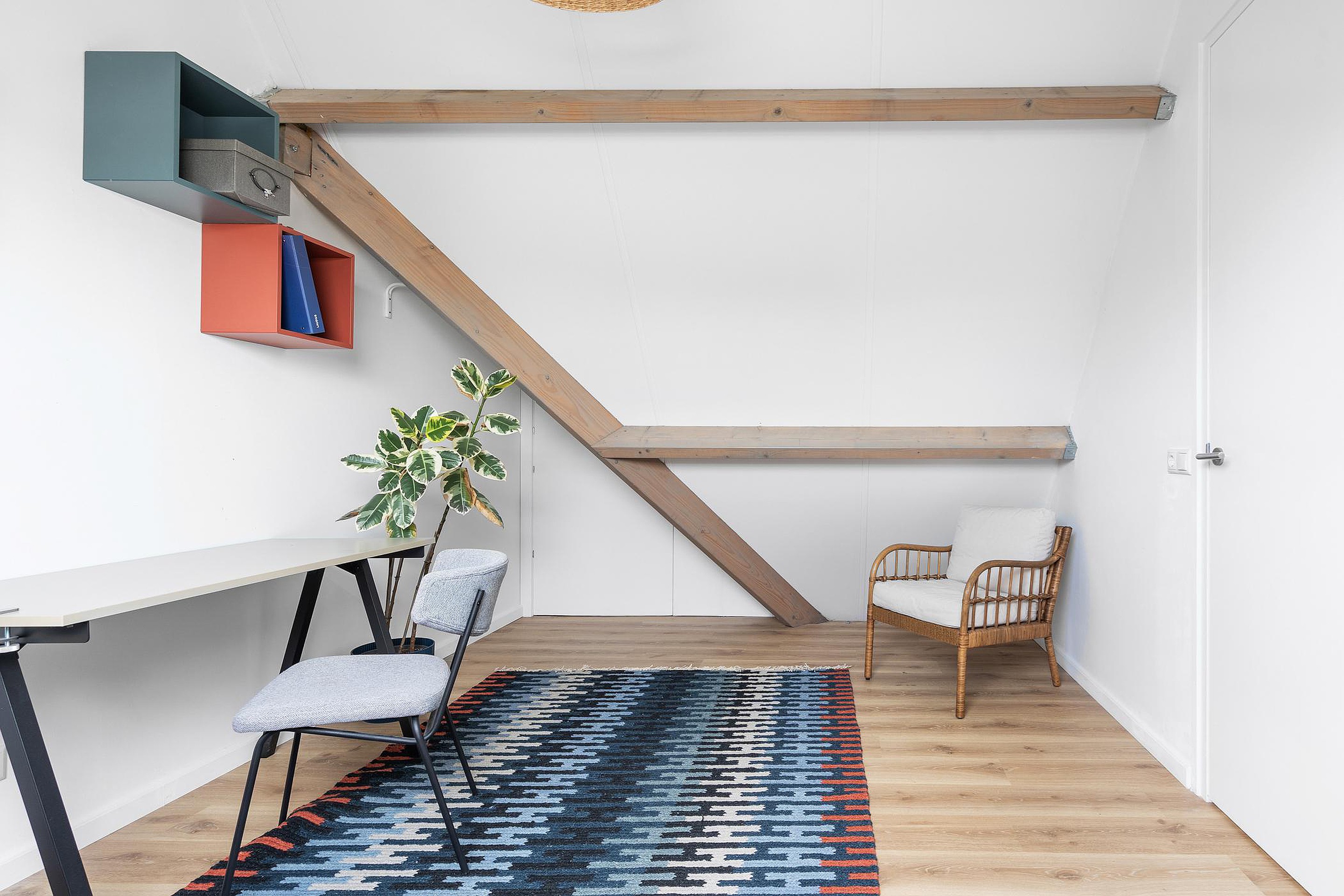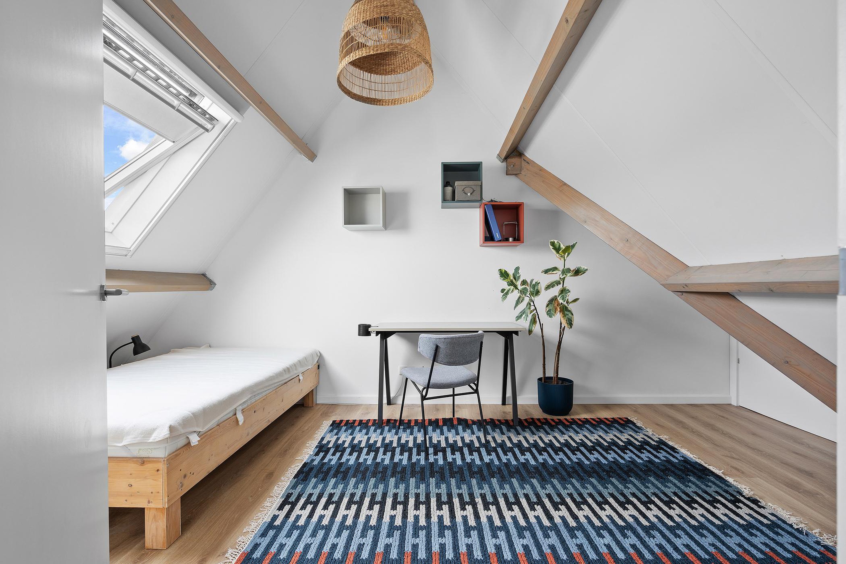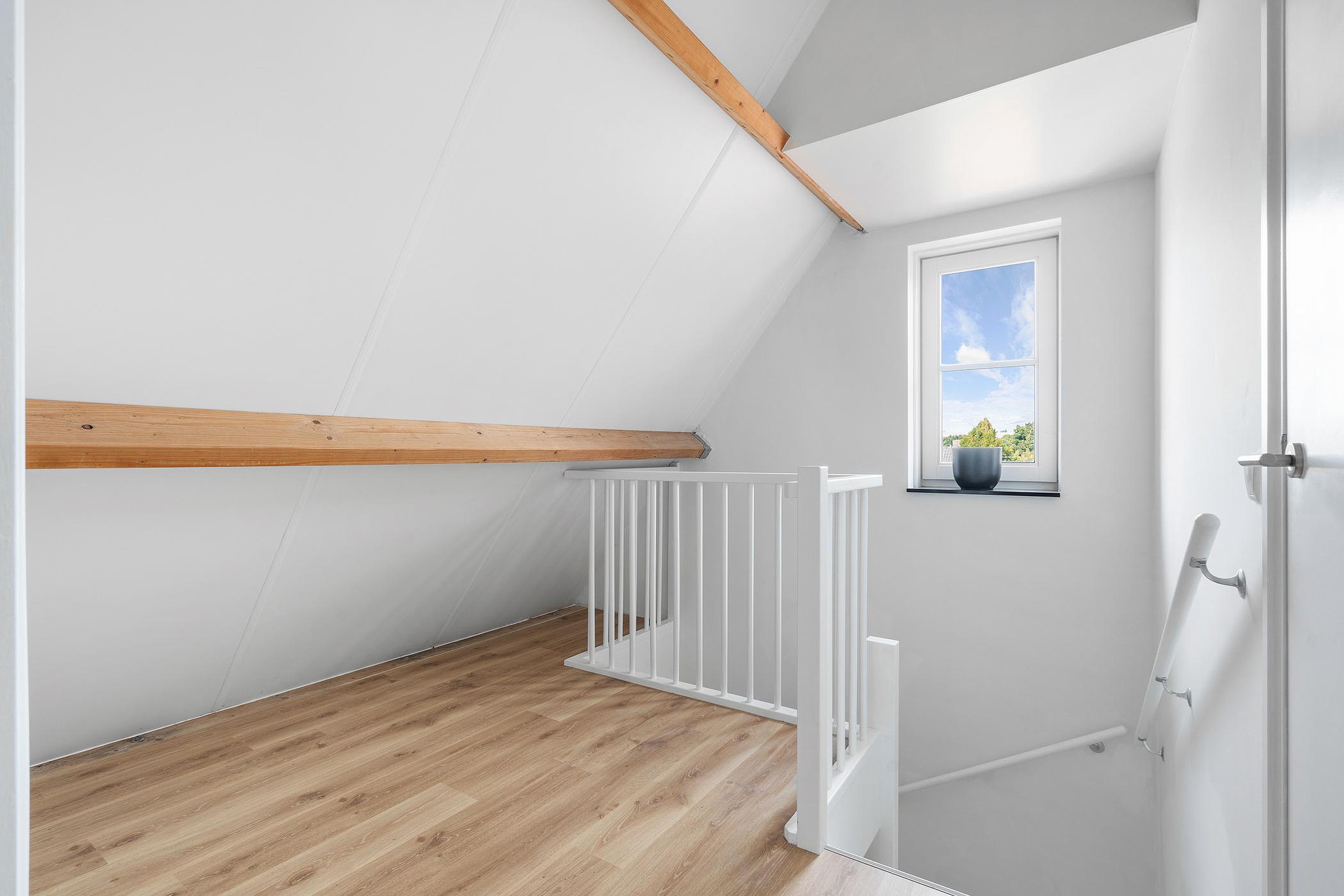 Tweede verdieping Voorzolder met toegang tot de was/stookruimte en een ruime 5e slaapkamer met een Velux dakraam.