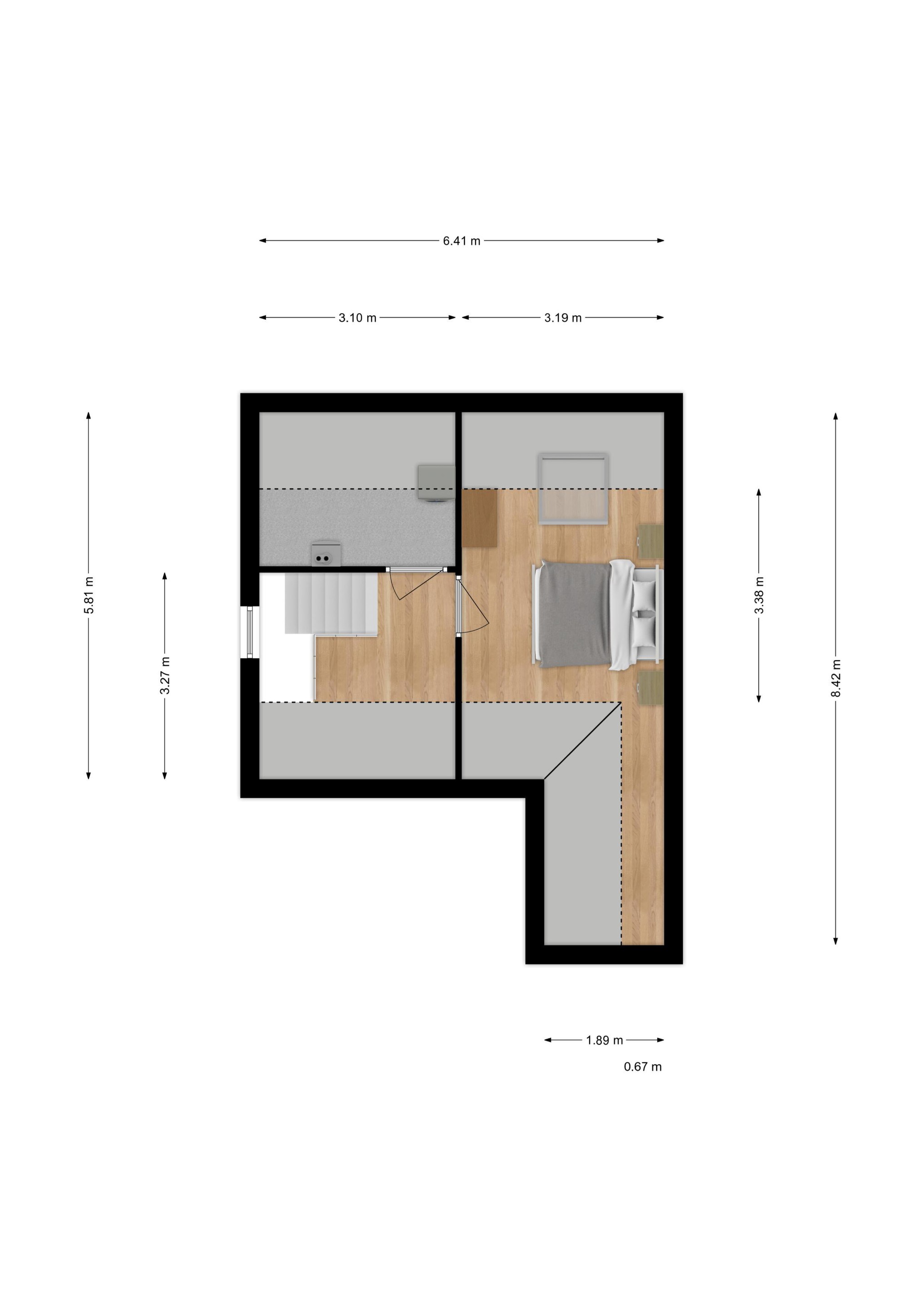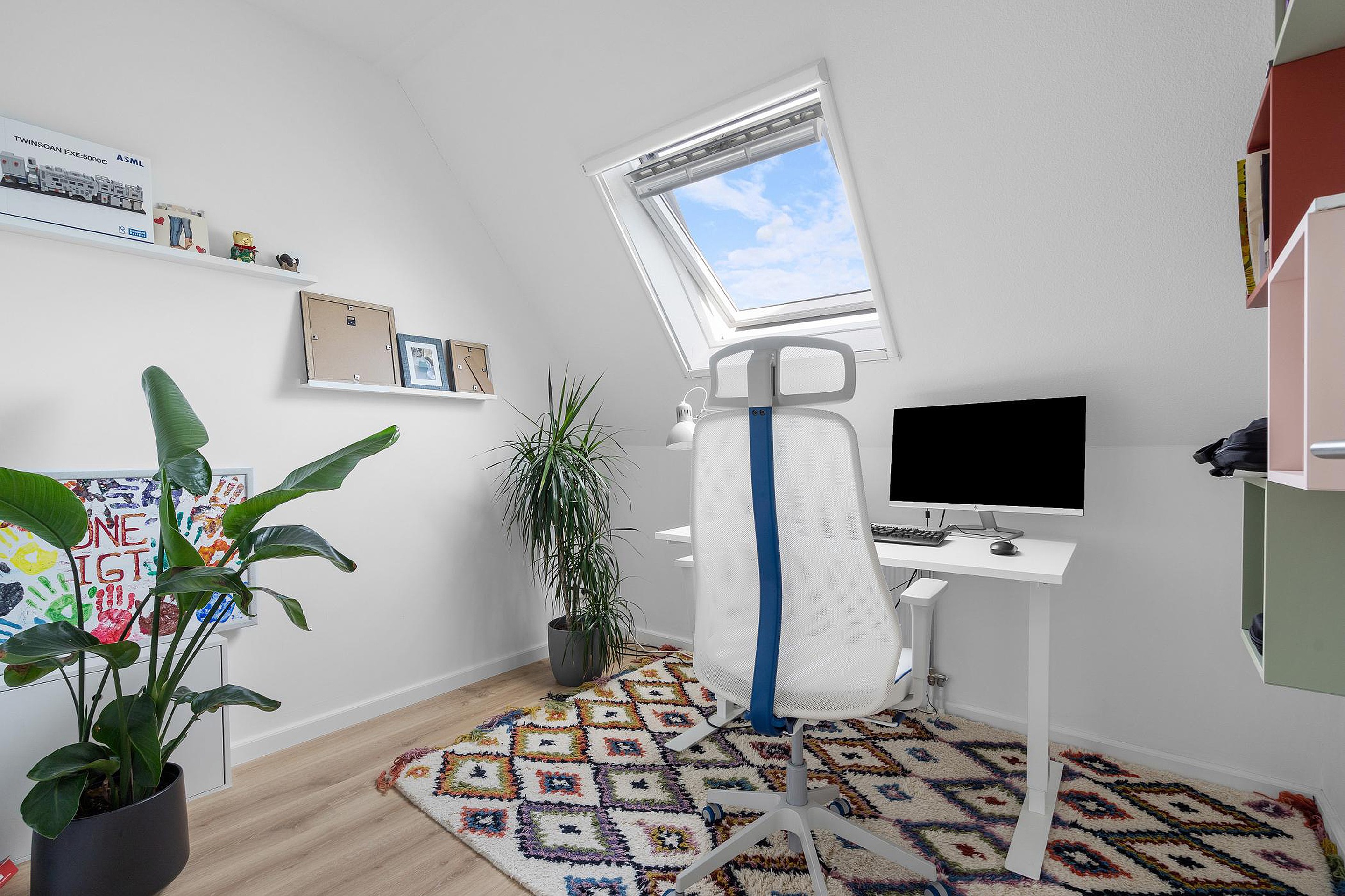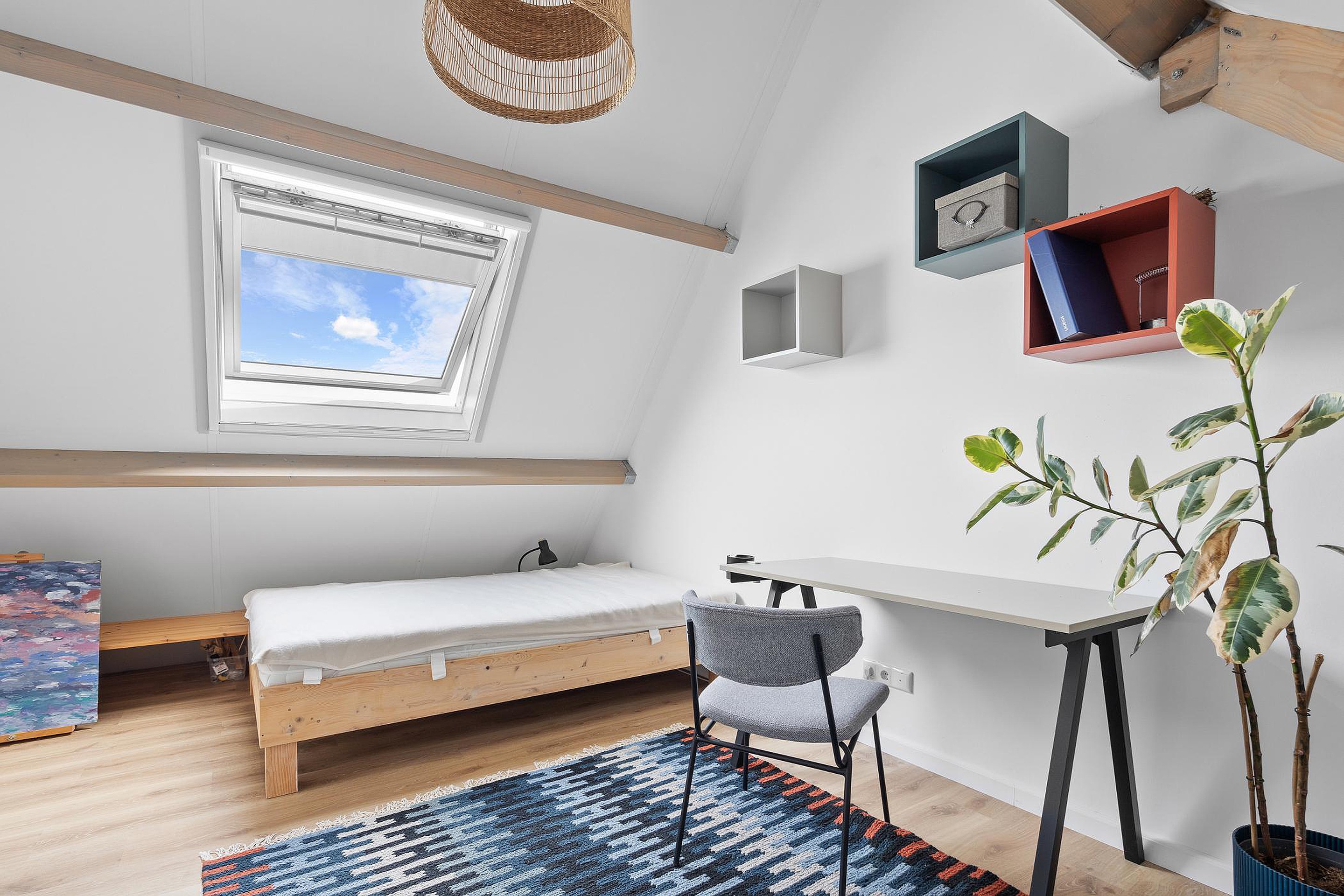 Tweede verdieping Voorzolder met toegang tot de was/stookruimte en een ruime 5e slaapkamer met een Velux dakraam.
