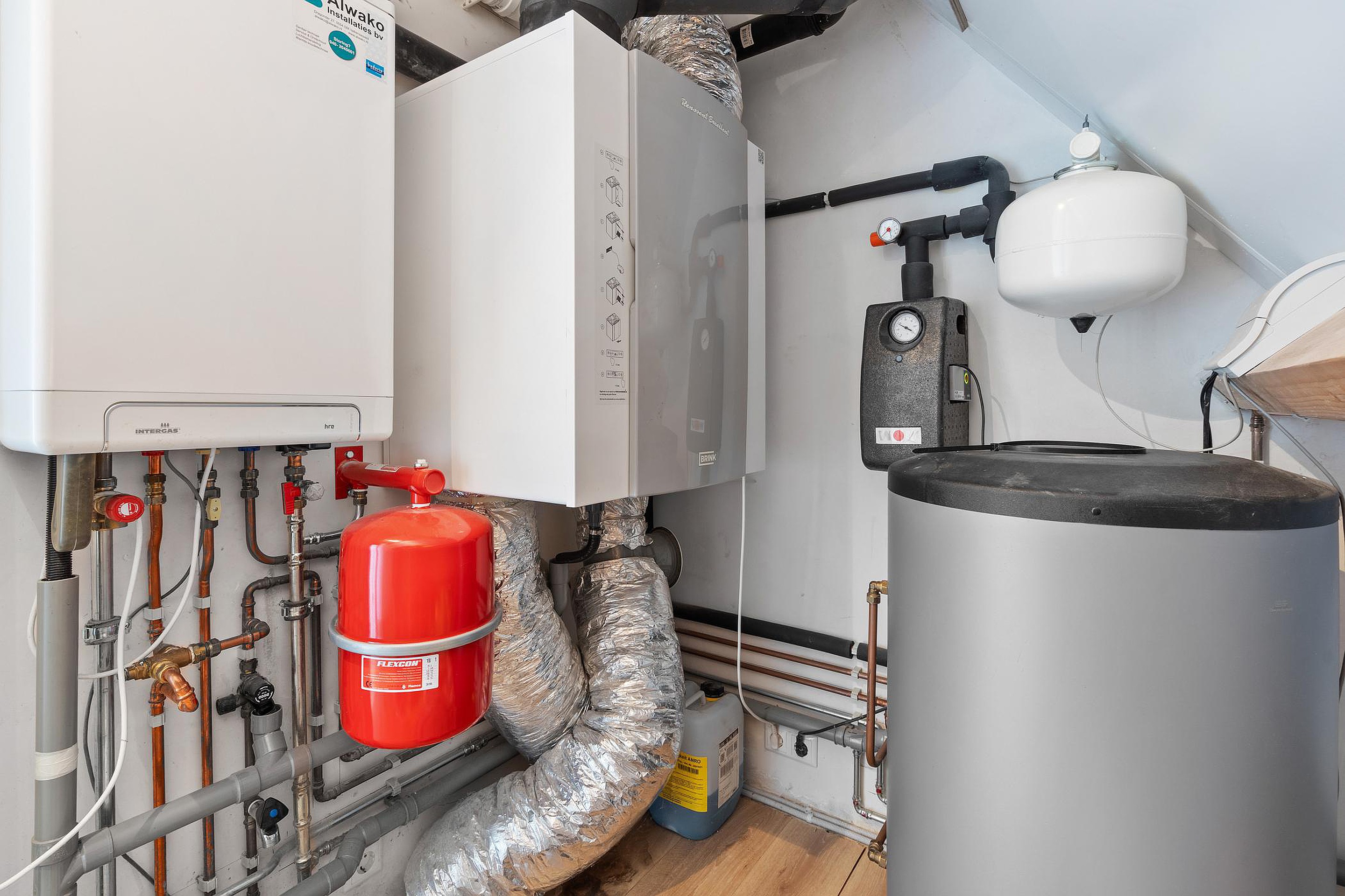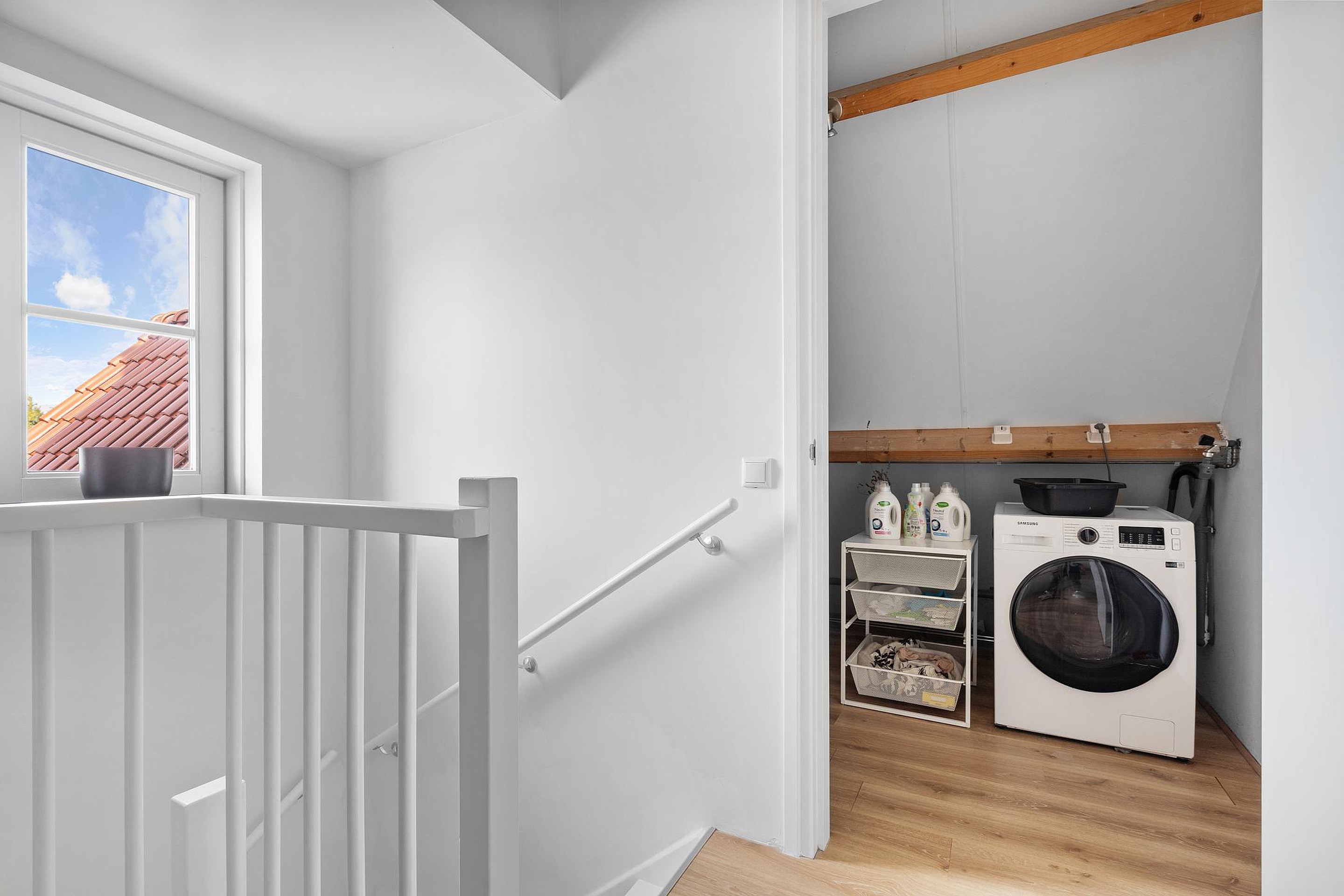 De was/stookruimte biedt plaats aan een wasmachine en -droger en beschikt verder over de opstelplaatsen van de CV-combi, de mechanische ventilatie-unit met WTW, een grote boiler en de omvormer t.b.v. de zonnepanelen.
