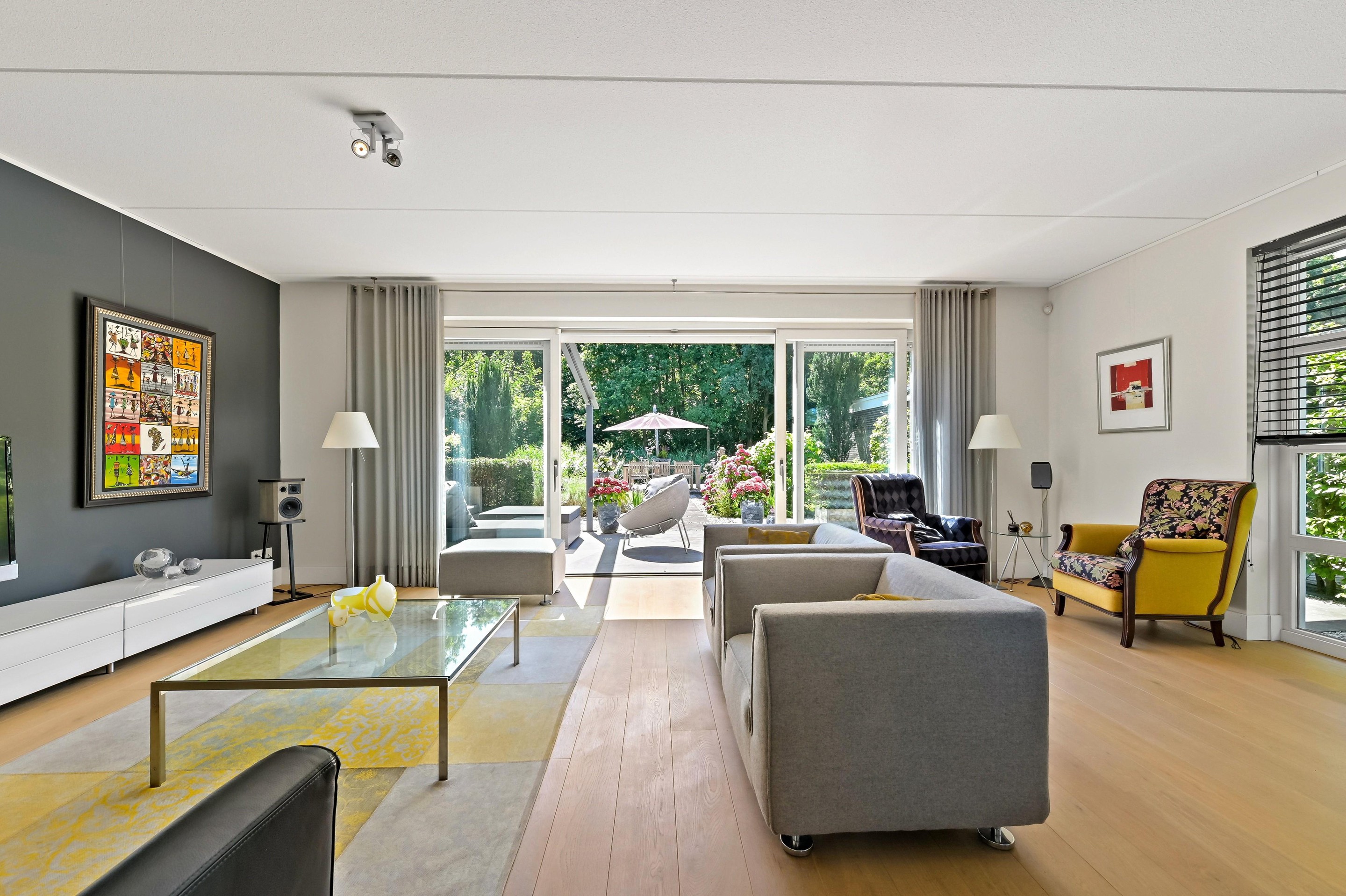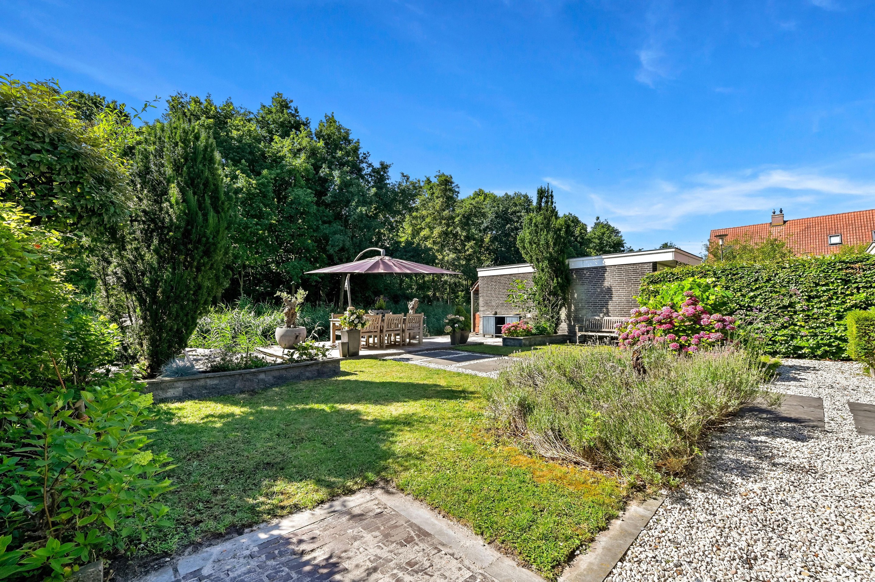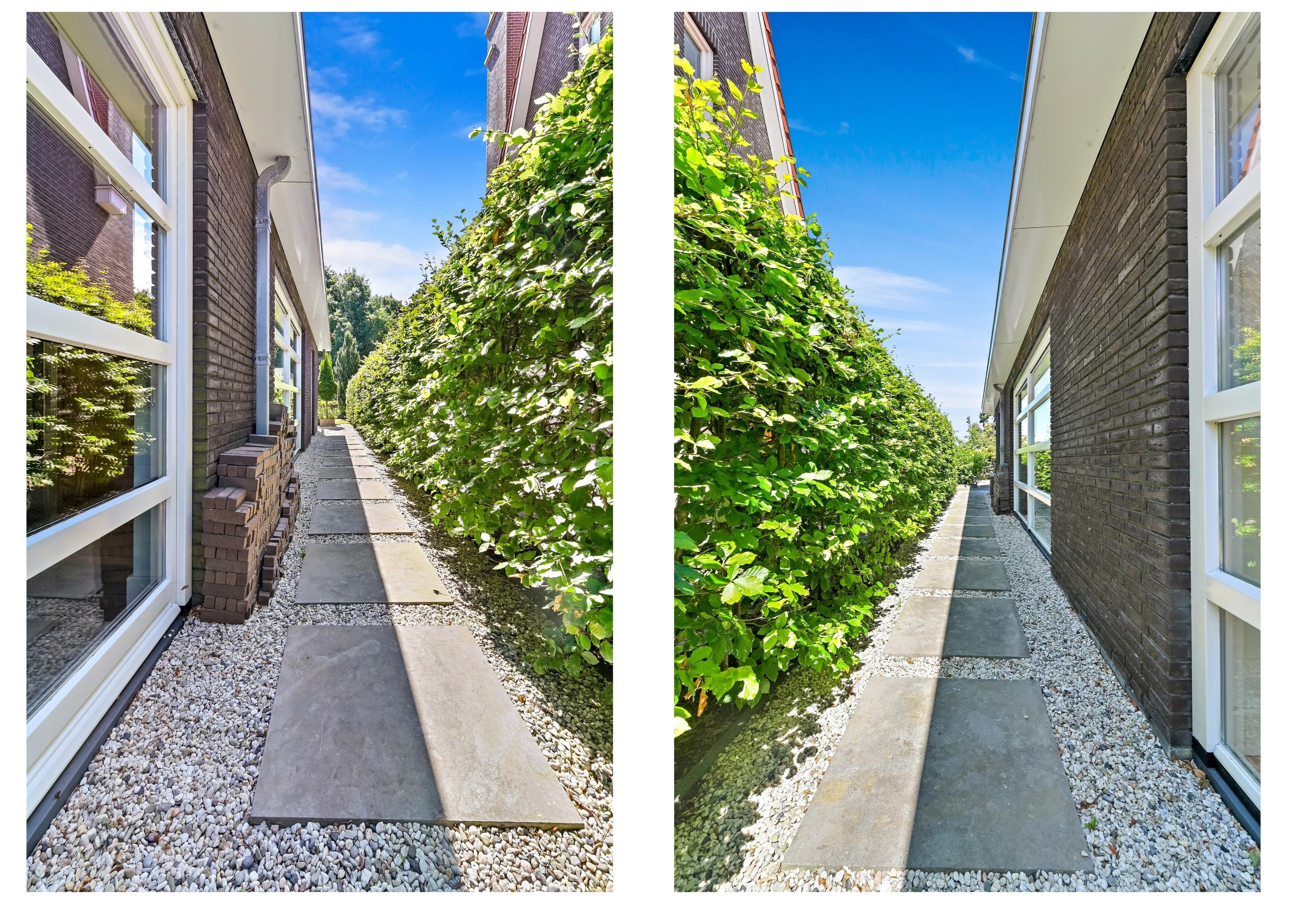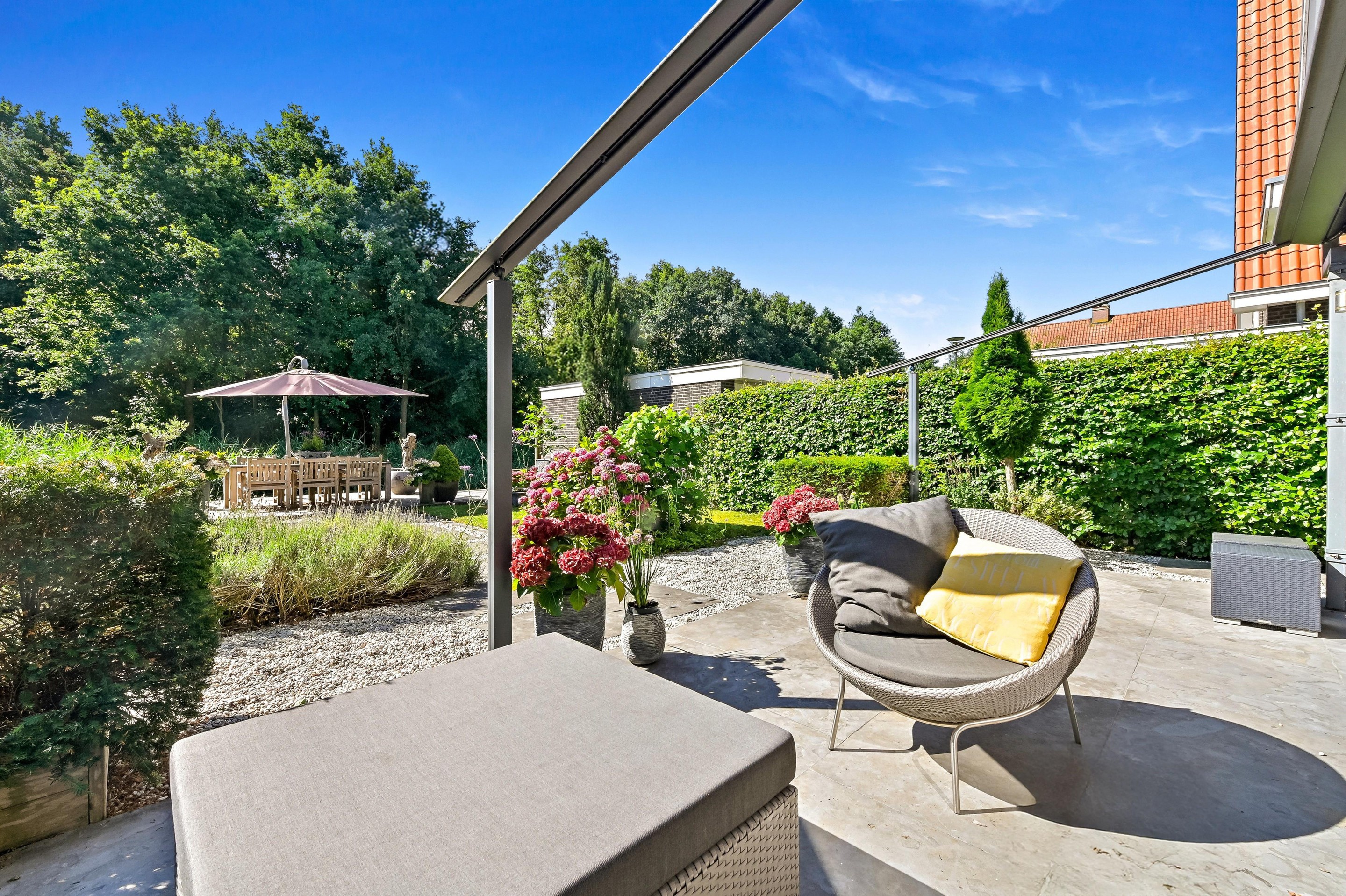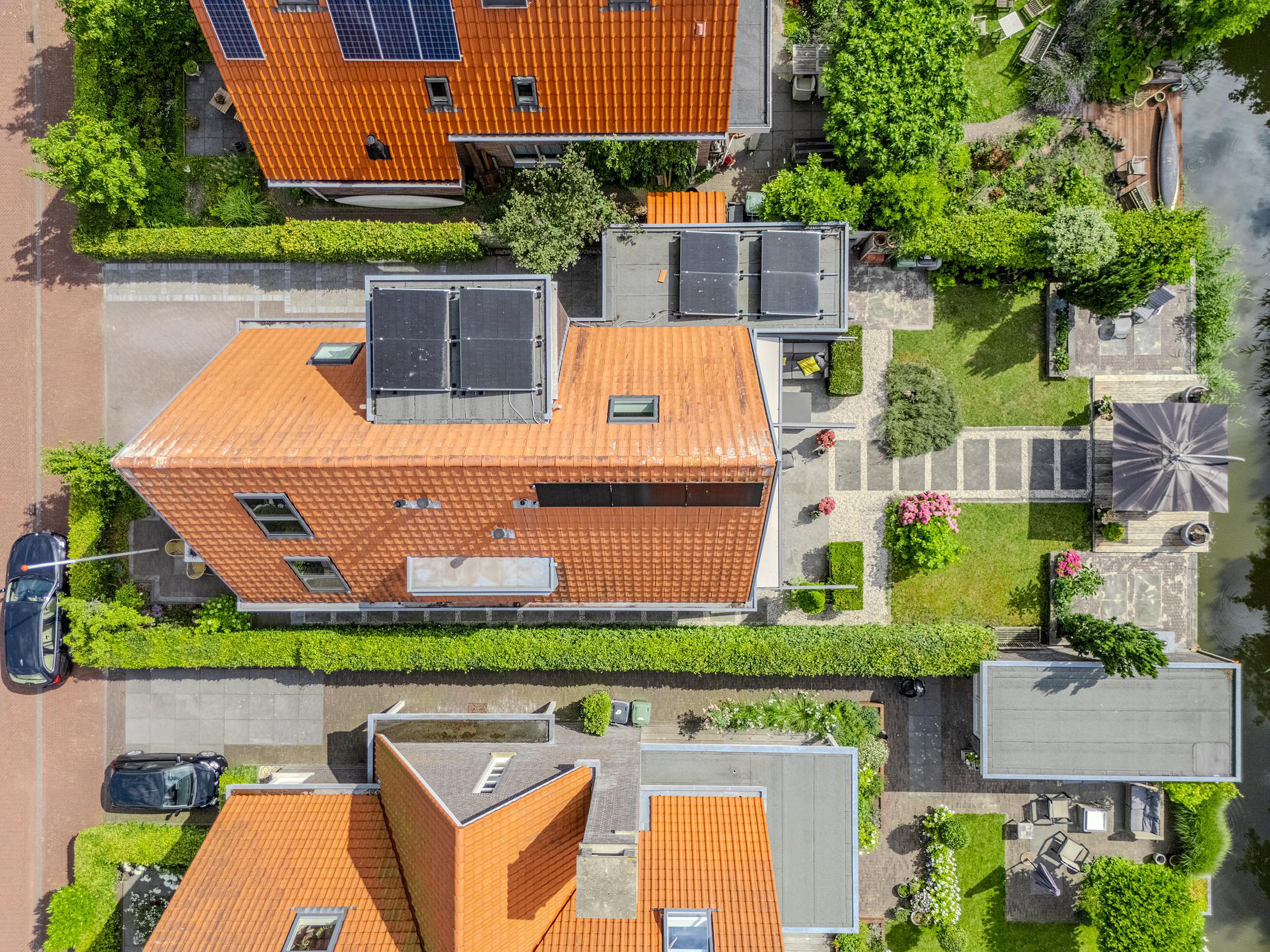 Via de verzorgd aangelegde voortuin met meerdere parkeerplaatsen en laadpaal op eigen terrein bereikt u de garage en hoofdentree van de woning aan de zijkant. Bij binnenkomst ervaart u direct een luxe sfeer door de aanwezigheid van een ruim opgezette hal met statige trap, indrukwekkende vide en grote raampartijen. In de hal vindt u de meterkast, garderobe en de moderne toiletruimte naast de voordeur welke is voorzien van een wandcloset en fonteintje. De dubbele deuren brengen u vanuit de hal naar de zeer royale living met open woonkeuken aan de voorzijde. De luxe, moderne keuken met kastenwand en kook-/spoeleiland van het merk Arclinea is uitgerust met een RVS werkblad met geïntegreerde spoelbak en vijfpits gaskookplaat en hoogwaardige inbouwapparatuur, waaronder een ingebouwde RVS afzuigkap, oven, koel-vrieskast, combi-stoom-oven, koffieautomaat, twee warmhoudlades en vaatwasser. Achter de keuken bevindt zich een praktische bijkeuken welke tevens te bereiken is via een deur in de zijgevel. In deze bijkeuken vindt u naast de diverse opbergmogelijkheden een spoelbak, extra koelkast en vriezer. De zeer royale L-vormige woonkamer is aan de achterzijde en zijkant van de woning gesitueerd. De woonkamer biedt voldoende plek voor een zeer ruime zithoek en grote eettafel, welke momenteel tussen de woonkamer en de keuken te vinden is. Dankzij de grote raampartijen in de zijgevel komt er van drie zijden licht de woning binnen. De royale schuifpui in de achtergevel biedt toegang tot de schitterende, op het zuiden georiënteerde achtertuin. De achtertuin is onder architectuur aangelegd en voorzien van onder andere een onderheid terras, elektrisch bedienbaar zonnescherm, drainagesysteem, buitenkraan en tuinverlichting. In de achtertuin zijn meerdere terrassen te vinden waardoor u gedurende de dag altijd wel een plekje in de zon (en schaduw) kunt vinden. De achtertuin grenst via een watergang aan het Maaslandse Bos, waardoor u heel veel privacy in de tuin zult ervaren. Vanuit de achtertuin is tevens de garage te bereiken. In de garage vindt u onder andere elektra, verlichting, op maat gemaakte kasten en dubbele deuren naar de oprit aan de voorzijde. Ook is er in de garage een 220 grondkabel aanwezig, welke naar de achtertuin is doorgetrokken. De garage is een ideale plek voor het opbergen van uw spullen of bijvoorbeeld het stallen van de fietsen van het gehele gezin.