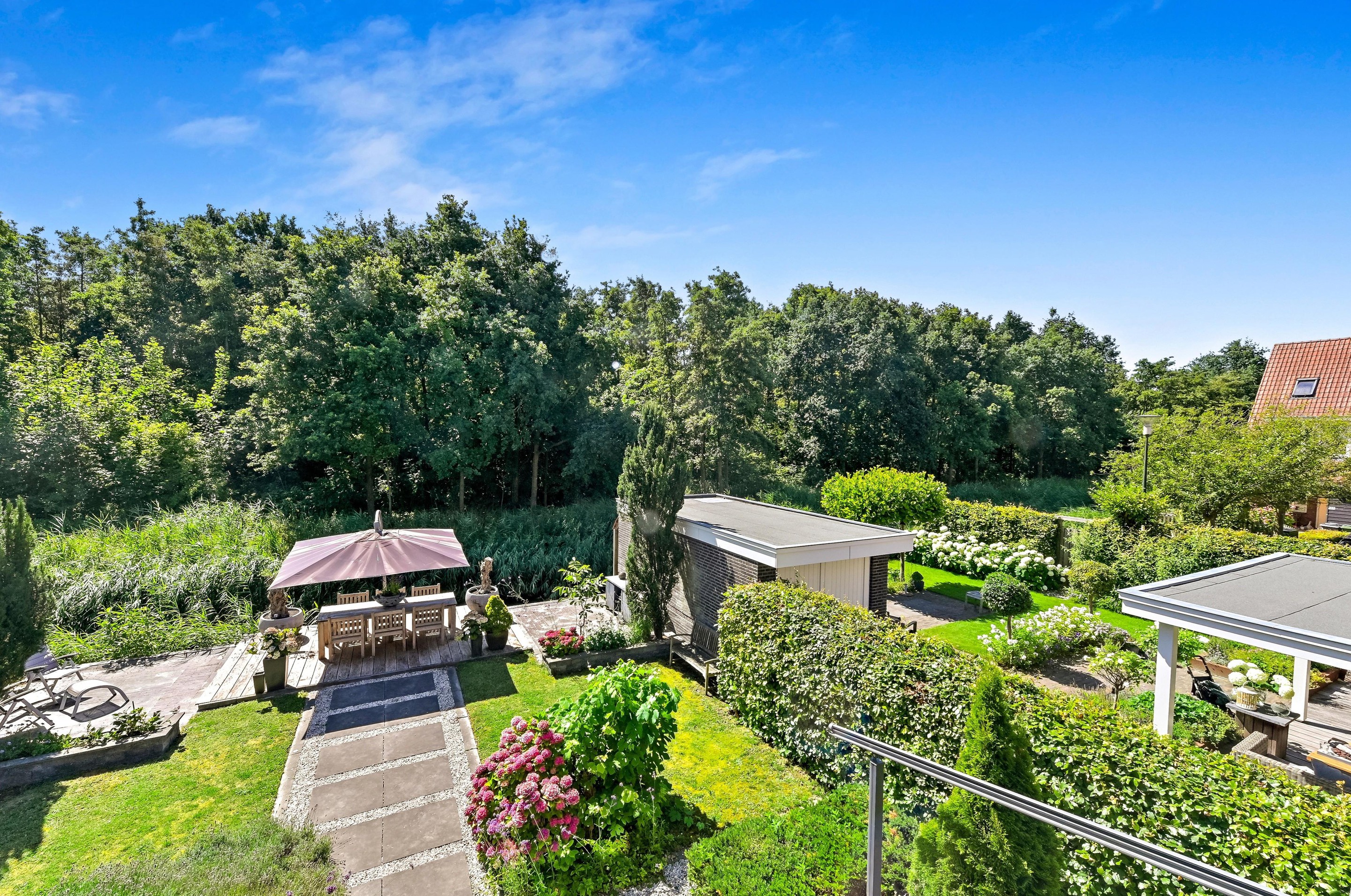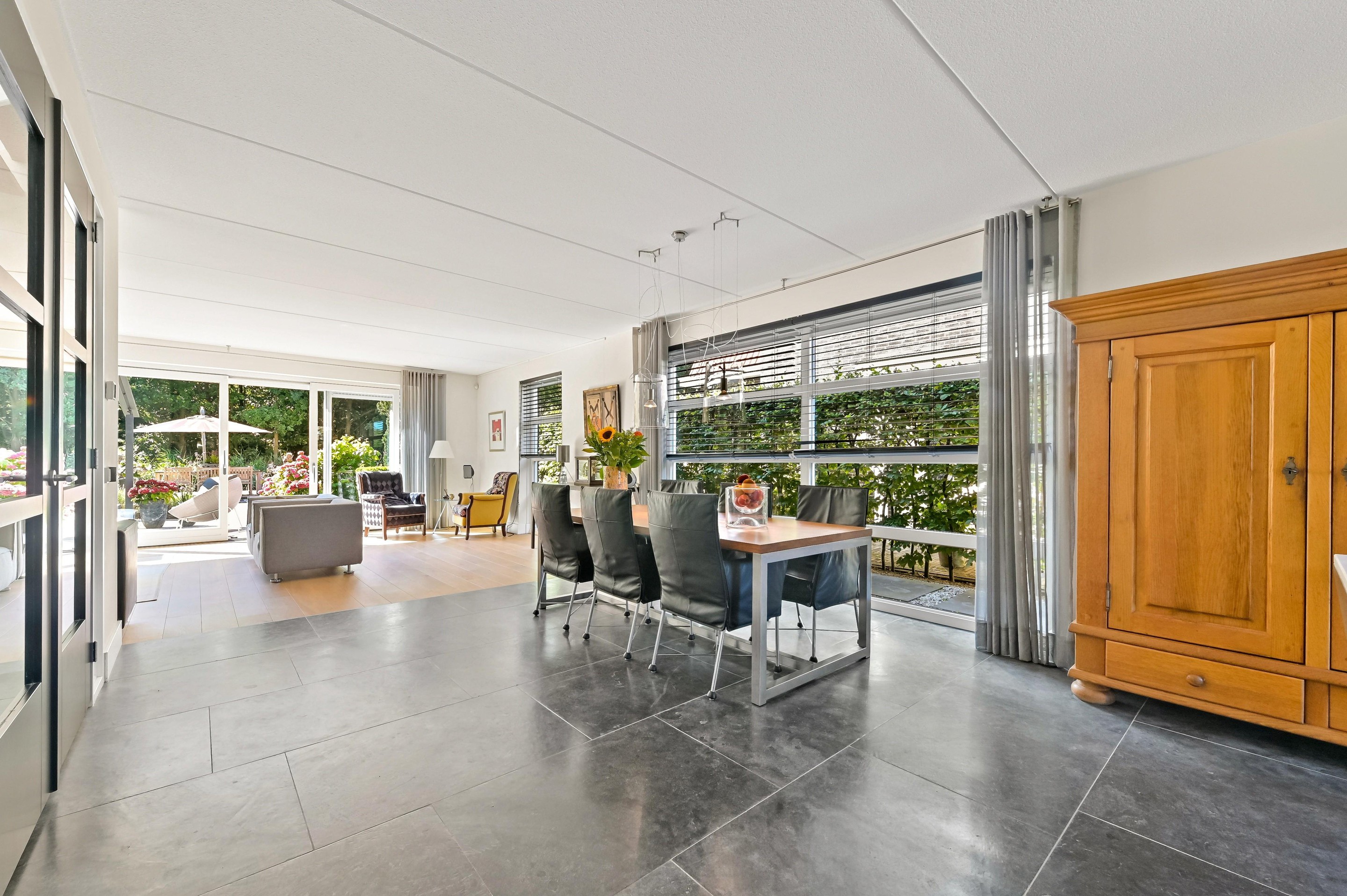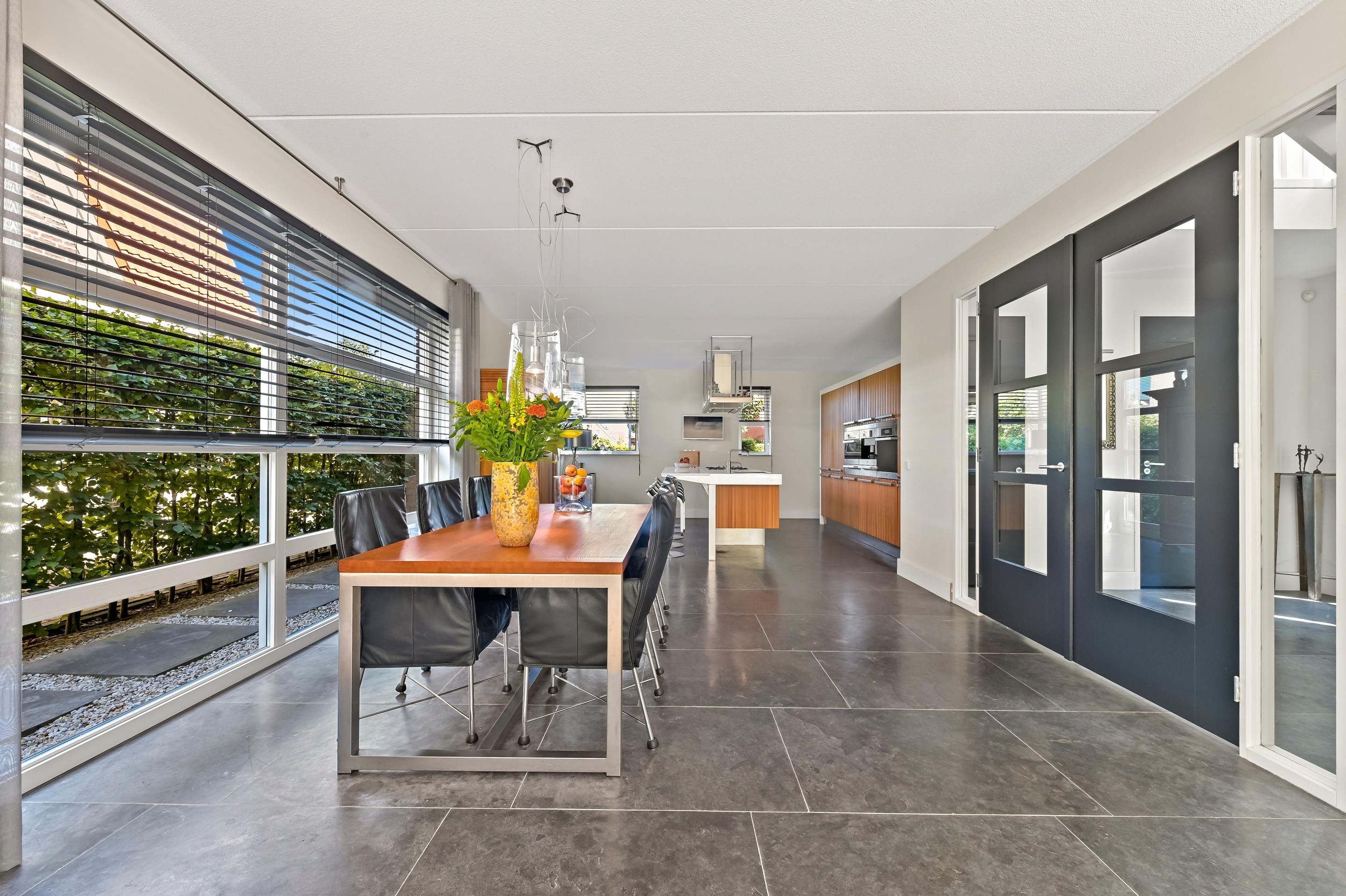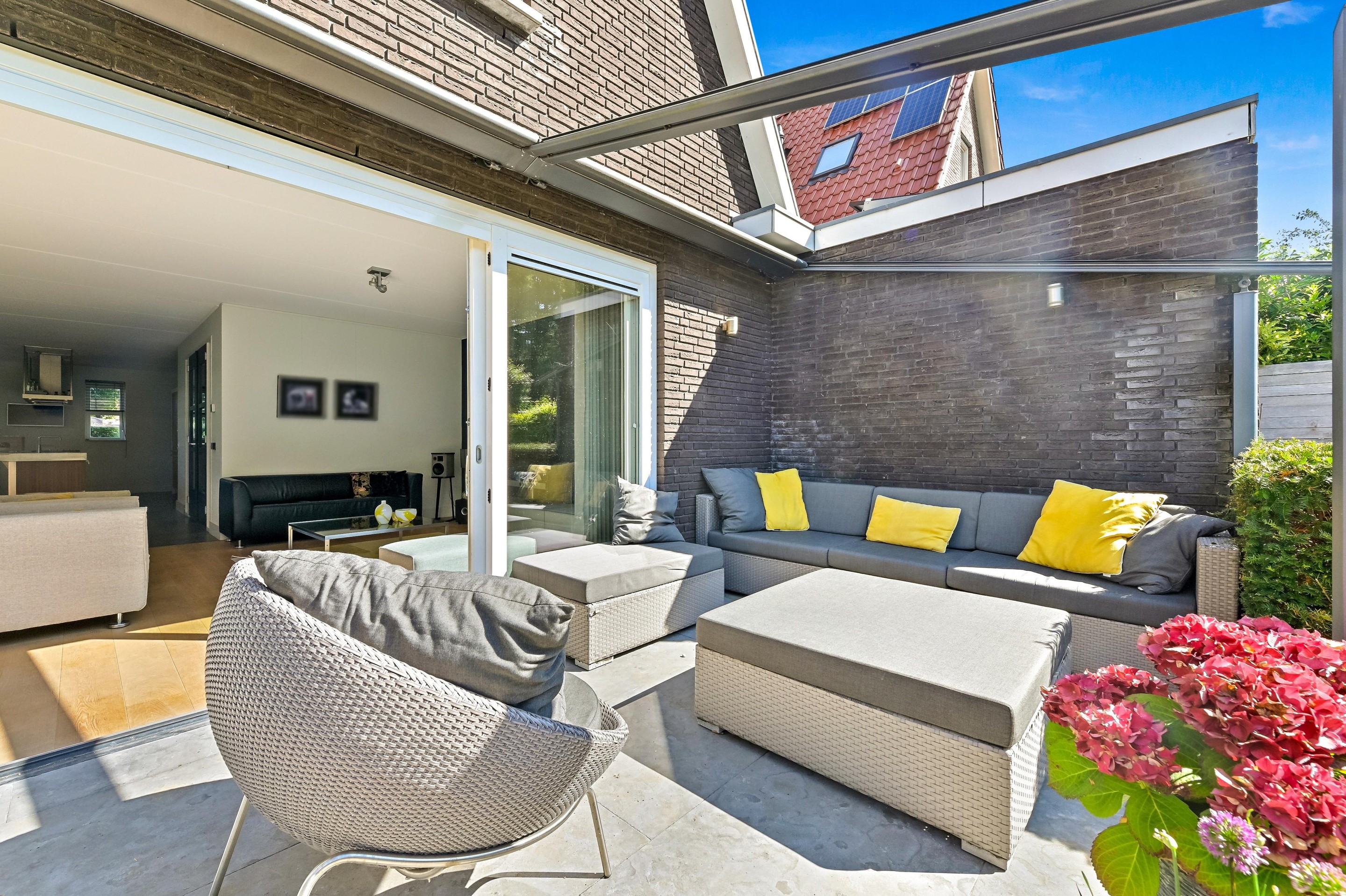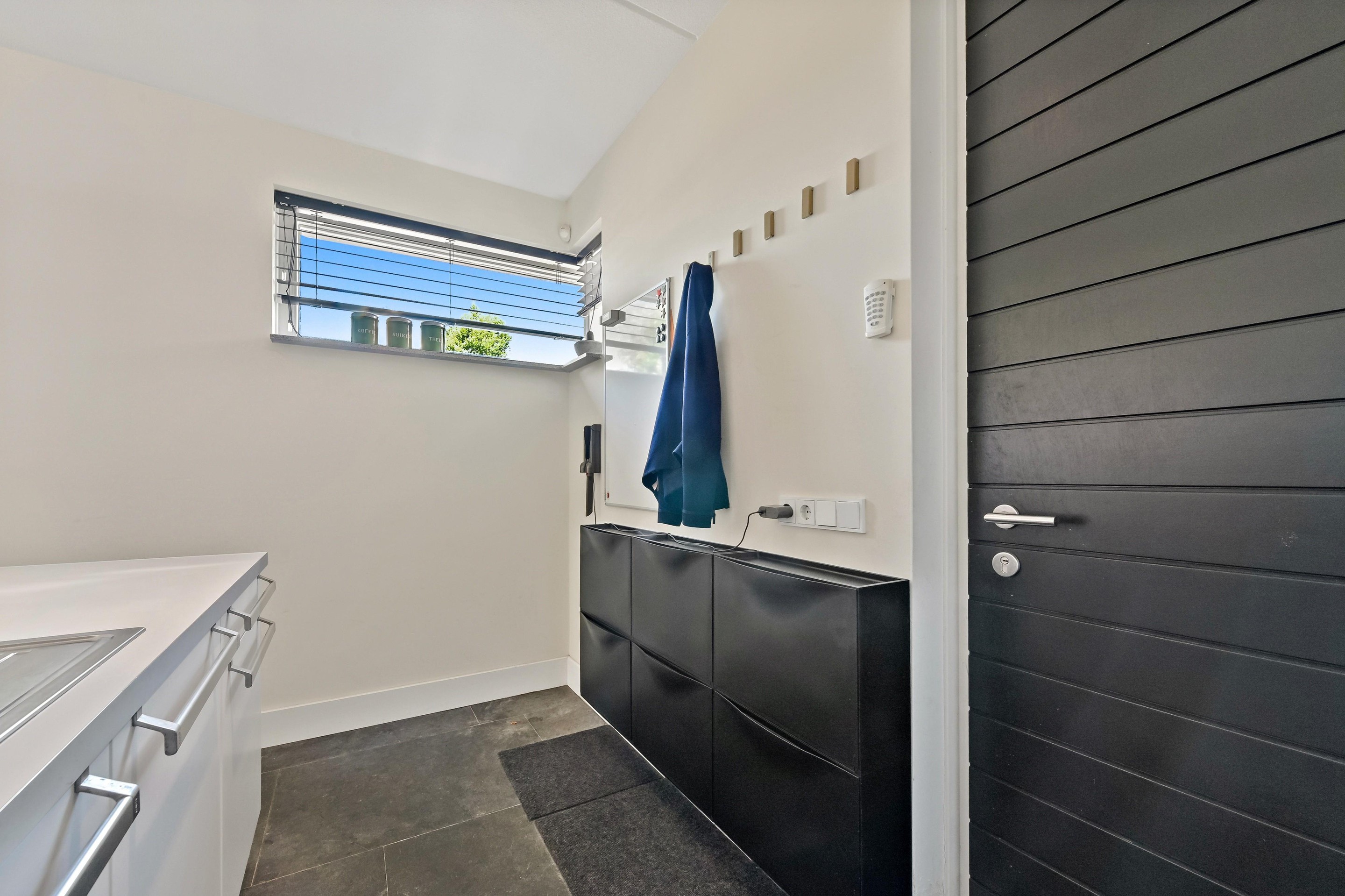 Via de verzorgd aangelegde voortuin met meerdere parkeerplaatsen en laadpaal op eigen terrein bereikt u de garage en hoofdentree van de woning aan de zijkant. Bij binnenkomst ervaart u direct een luxe sfeer door de aanwezigheid van een ruim opgezette hal met statige trap, indrukwekkende vide en grote raampartijen. In de hal vindt u de meterkast, garderobe en de moderne toiletruimte naast de voordeur welke is voorzien van een wandcloset en fonteintje. De dubbele deuren brengen u vanuit de hal naar de zeer royale living met open woonkeuken aan de voorzijde. De luxe, moderne keuken met kastenwand en kook-/spoeleiland van het merk Arclinea is uitgerust met een RVS werkblad met geïntegreerde spoelbak en vijfpits gaskookplaat en hoogwaardige inbouwapparatuur, waaronder een ingebouwde RVS afzuigkap, oven, koel-vrieskast, combi-stoom-oven, koffieautomaat, twee warmhoudlades en vaatwasser. Achter de keuken bevindt zich een praktische bijkeuken welke tevens te bereiken is via een deur in de zijgevel. In deze bijkeuken vindt u naast de diverse opbergmogelijkheden een spoelbak, extra koelkast en vriezer. De zeer royale L-vormige woonkamer is aan de achterzijde en zijkant van de woning gesitueerd. De woonkamer biedt voldoende plek voor een zeer ruime zithoek en grote eettafel, welke momenteel tussen de woonkamer en de keuken te vinden is. Dankzij de grote raampartijen in de zijgevel komt er van drie zijden licht de woning binnen. De royale schuifpui in de achtergevel biedt toegang tot de schitterende, op het zuiden georiënteerde achtertuin. De achtertuin is onder architectuur aangelegd en voorzien van onder andere een onderheid terras, elektrisch bedienbaar zonnescherm, drainagesysteem, buitenkraan en tuinverlichting. In de achtertuin zijn meerdere terrassen te vinden waardoor u gedurende de dag altijd wel een plekje in de zon (en schaduw) kunt vinden. De achtertuin grenst via een watergang aan het Maaslandse Bos, waardoor u heel veel privacy in de tuin zult ervaren. Vanuit de achtertuin is tevens de garage te bereiken. In de garage vindt u onder andere elektra, verlichting, op maat gemaakte kasten en dubbele deuren naar de oprit aan de voorzijde. Ook is er in de garage een 220 grondkabel aanwezig, welke naar de achtertuin is doorgetrokken. De garage is een ideale plek voor het opbergen van uw spullen of bijvoorbeeld het stallen van de fietsen van het gehele gezin.
