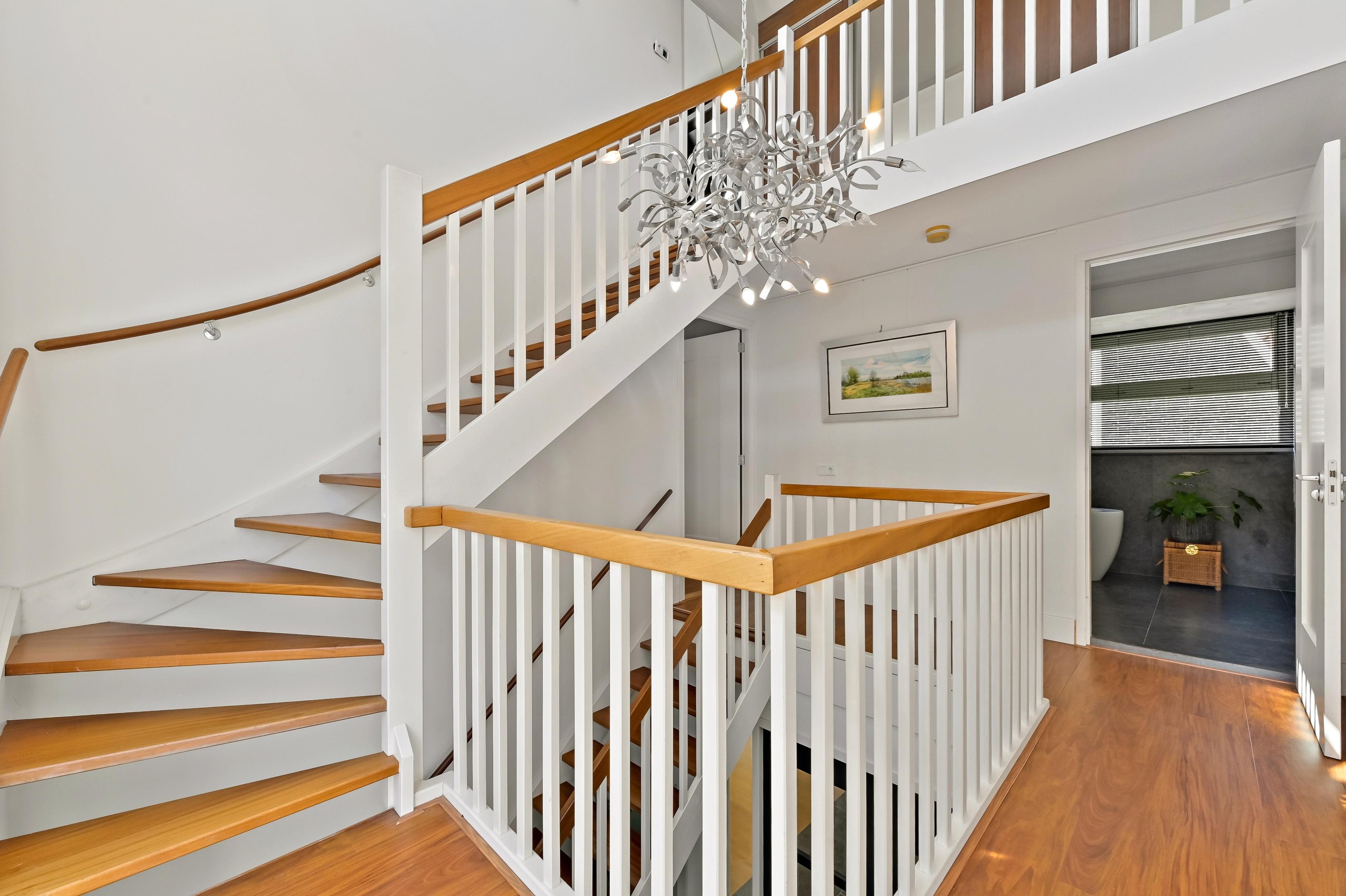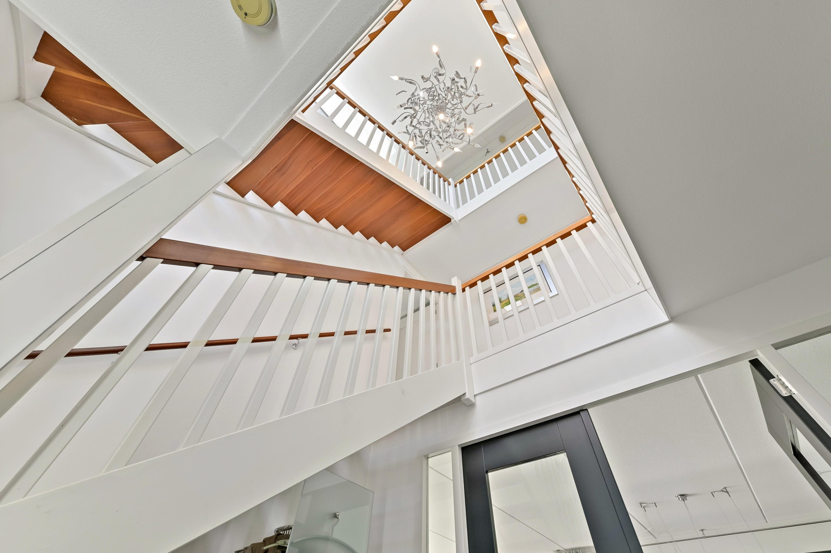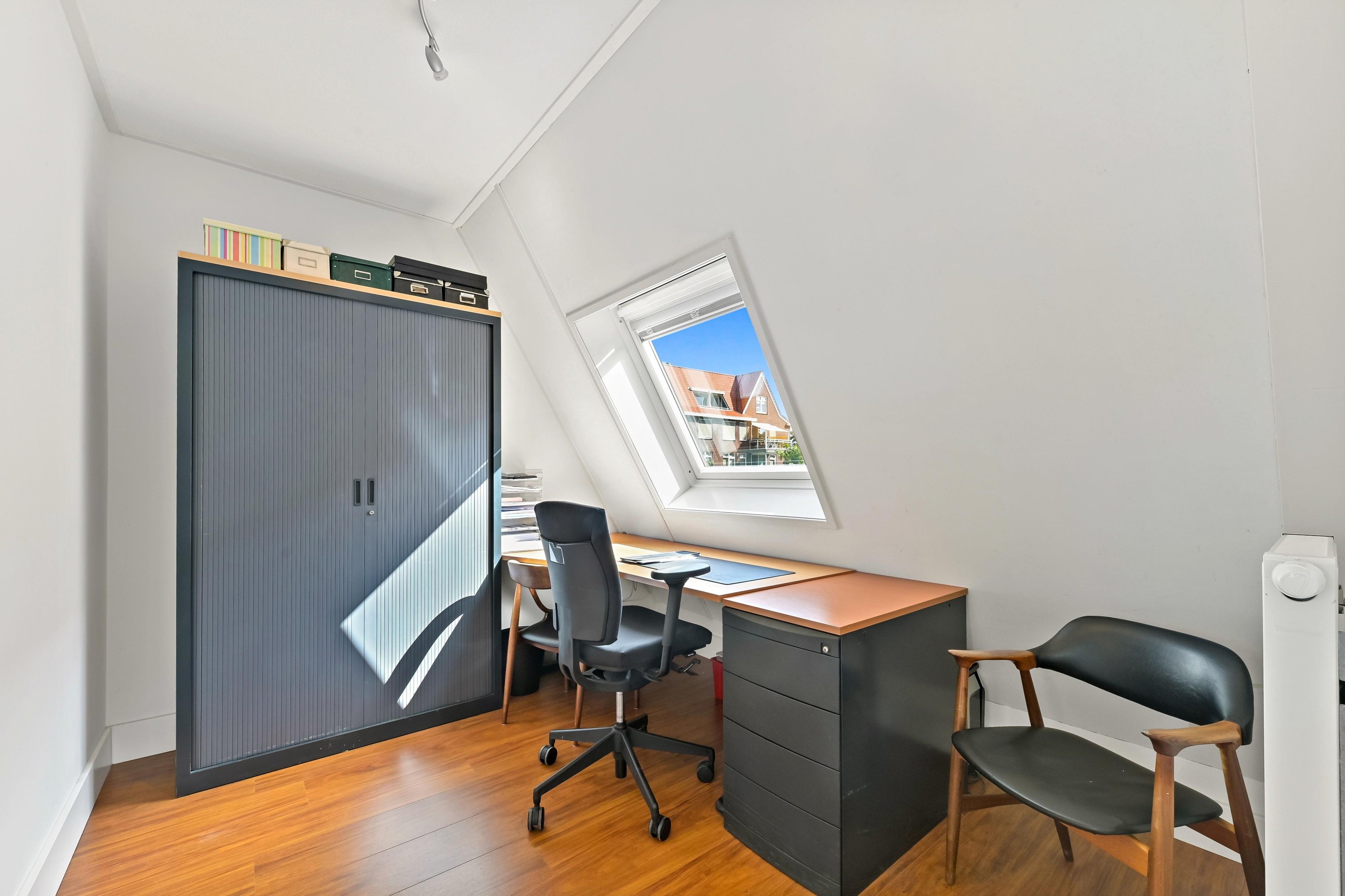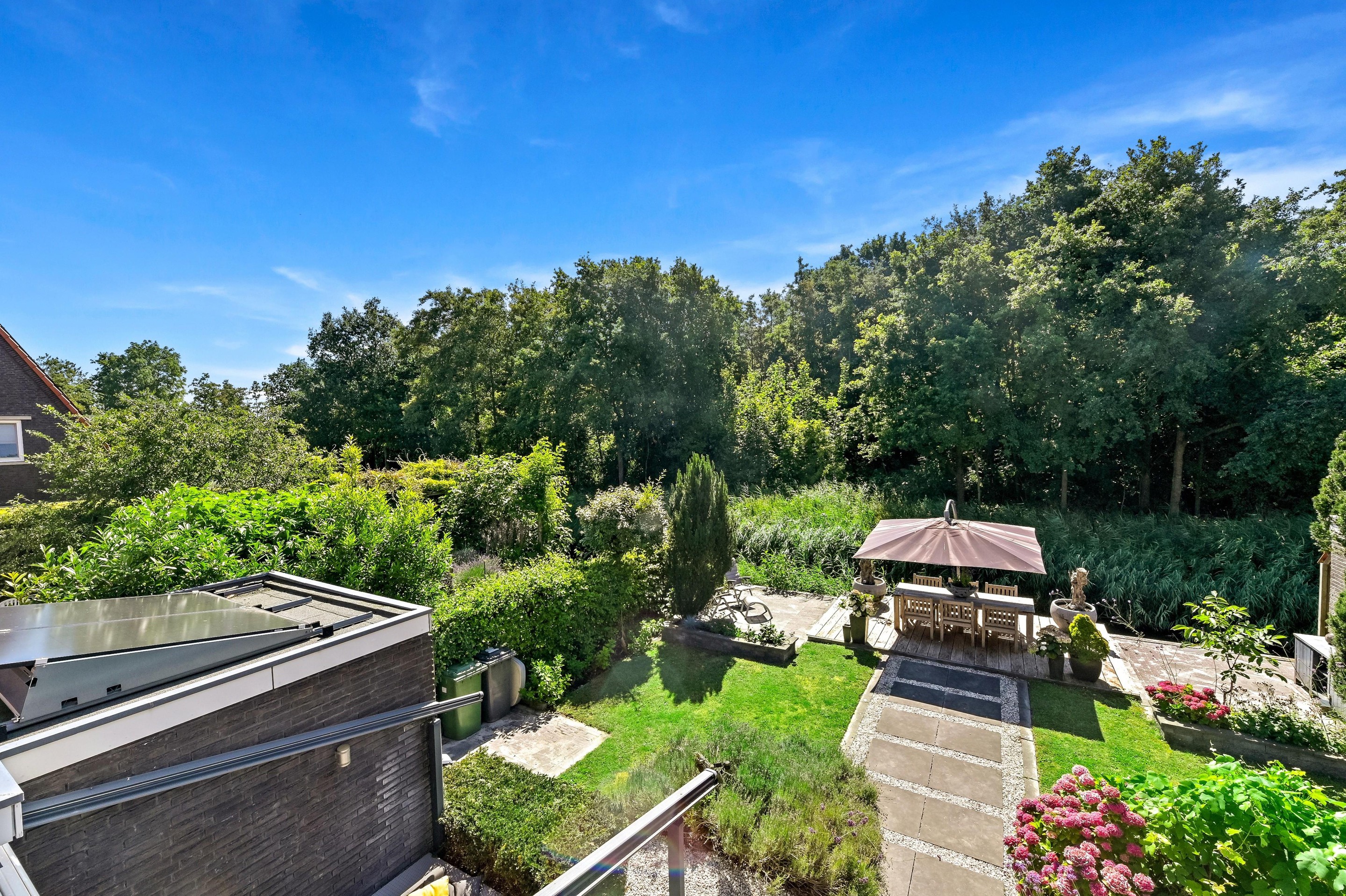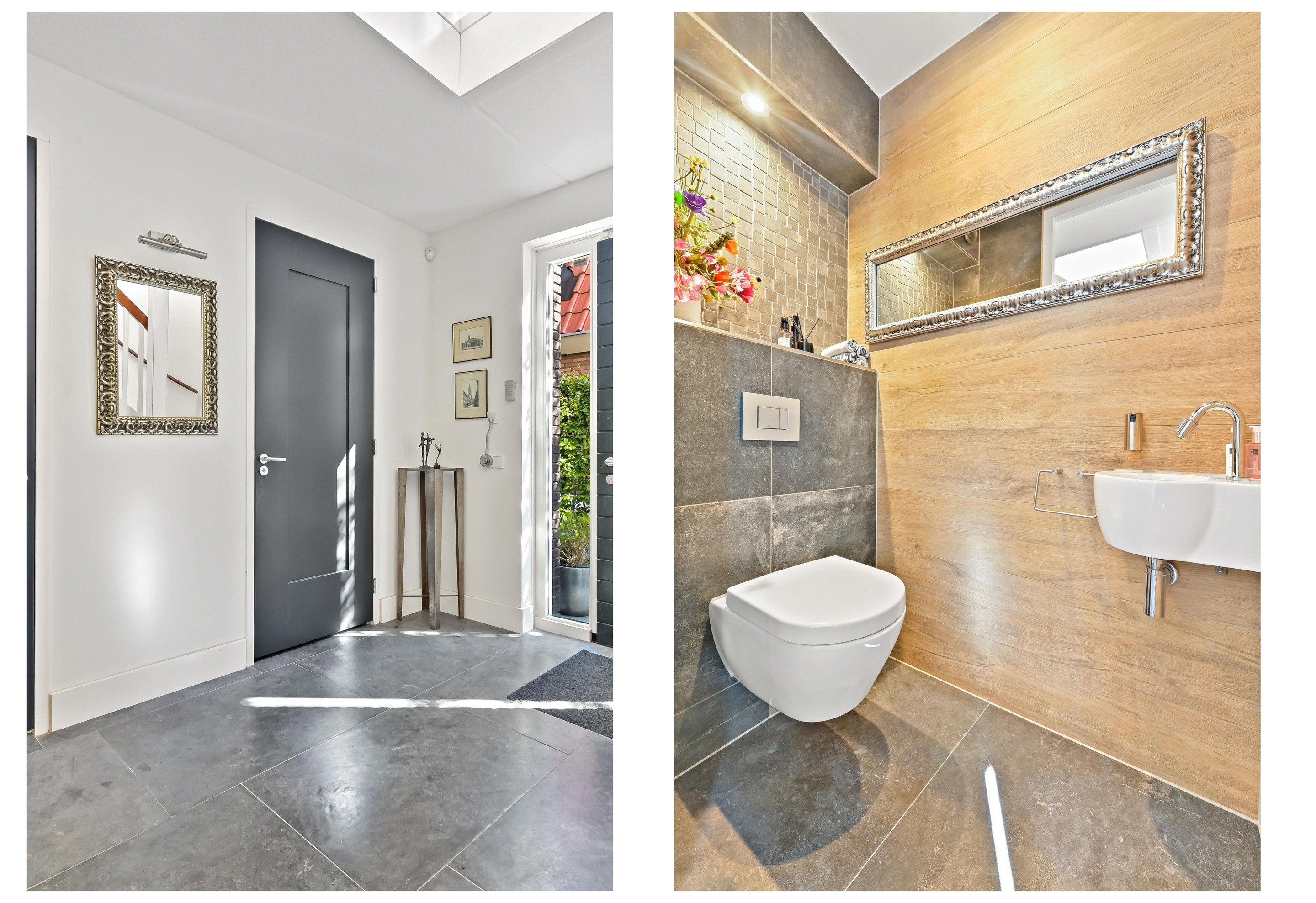 Eerste verdieping De lichte overloop met trapopgang naar de tweede verdieping biedt toegang tot alle vertrekken op deze etage. De master bedroom bevindt zich aan de achterzijde van de woning. In deze slaapkamer is een lagere raampartij aanwezig waardoor u vanuit het bed fantastisch uitzicht heeft op het groen. In de master bedroom is een walk-in closet aanwezig evenals een deur naar de aangrenzende badkamer. De luxe, moderne badkamer is voorzien van een royale inloopdouche, vrijstaand ligbad, twee wastafels met ingebouwde spiegelkasten, radiator en tweede toilet. De badkamer is tevens vanaf de overloop te bereiken. Aan de voorzijde zijn twee slaapkamers gesitueerd. De grootste slaapkamer is voorzien van een inloopkast en heeft dankzij het dubbele dakraam veel lichtinval. De tweede slaapkamer is op dit moment in gebruik als kantoorruimte.