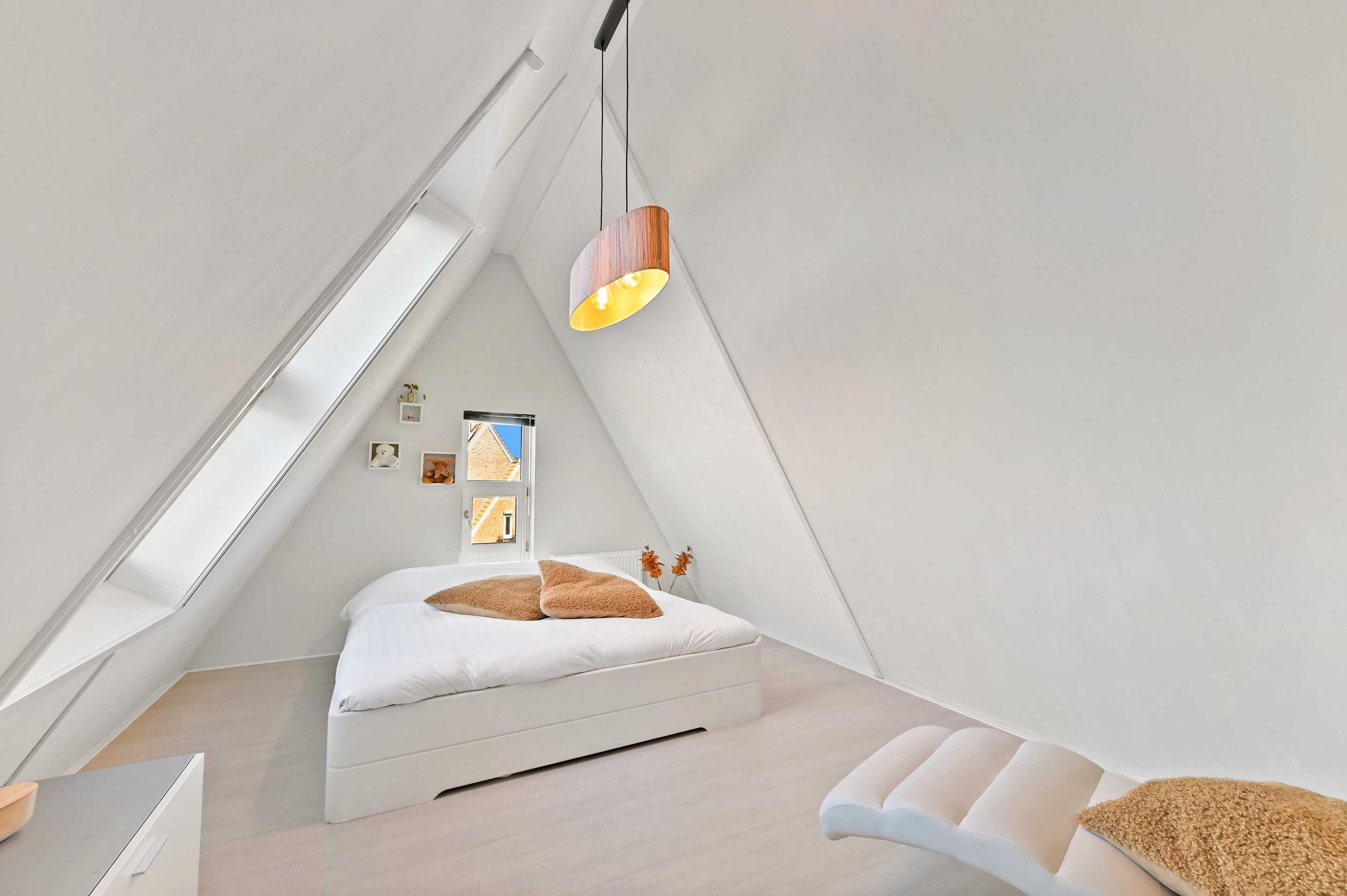 Tweede verdieping Ook de tweede verdieping van deze woning is door de aanwezigheid van de diverse raampartijen heerlijk licht. Op de overloop is een vaste kast aanwezig met opstelplaats voor de wasmachine, wasdroger, C.V. ketel en mechanische ventilatie. De sfeervolle slaapkamer aan de voorzijde is voorzien van een hoge nok. De andere slaapkamer bevindt zich aan de achterzijde en is op dit moment in gebruik als walk-in closet. Deze kamer kan met gemak als extra slaapkamer worden gebruikt.