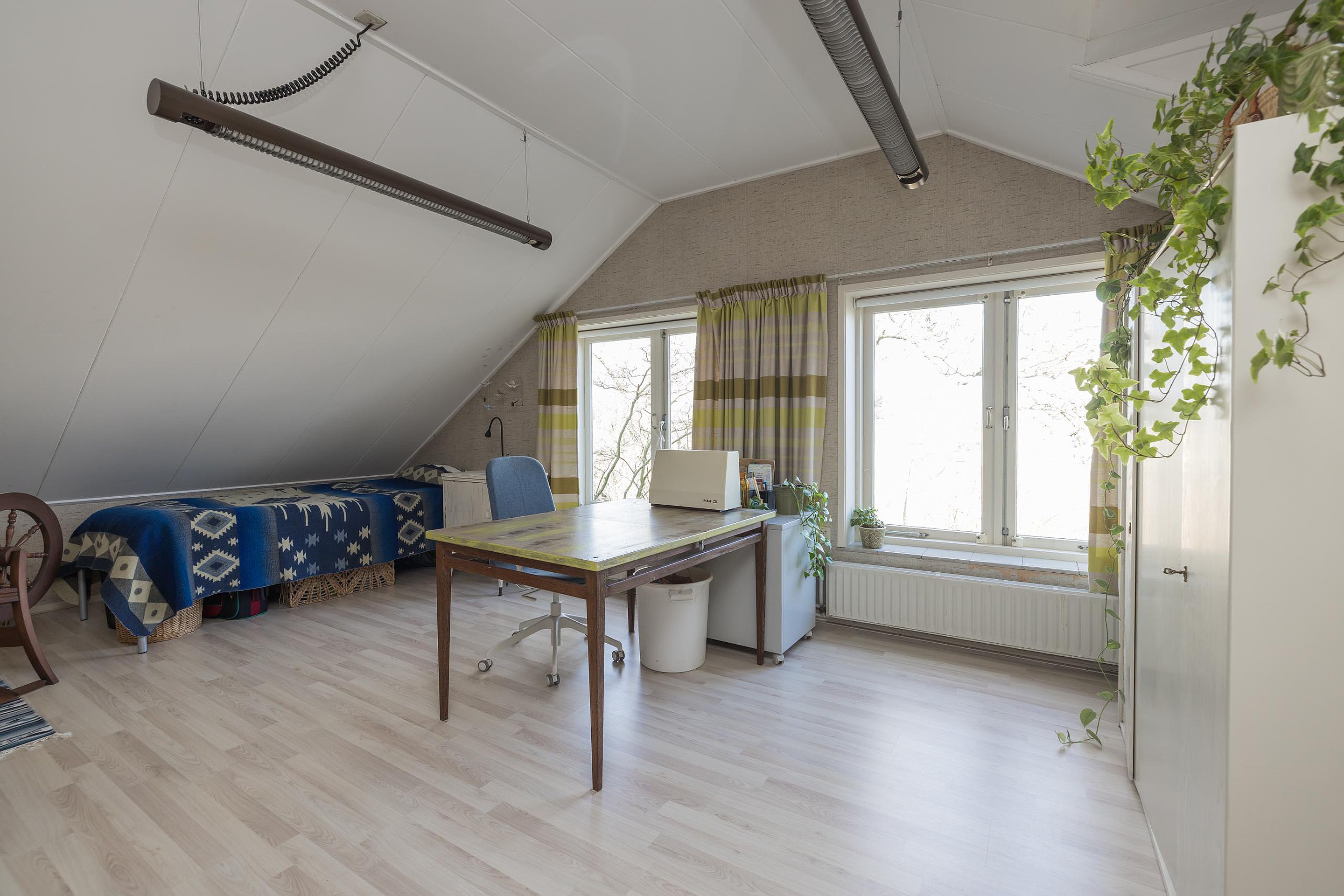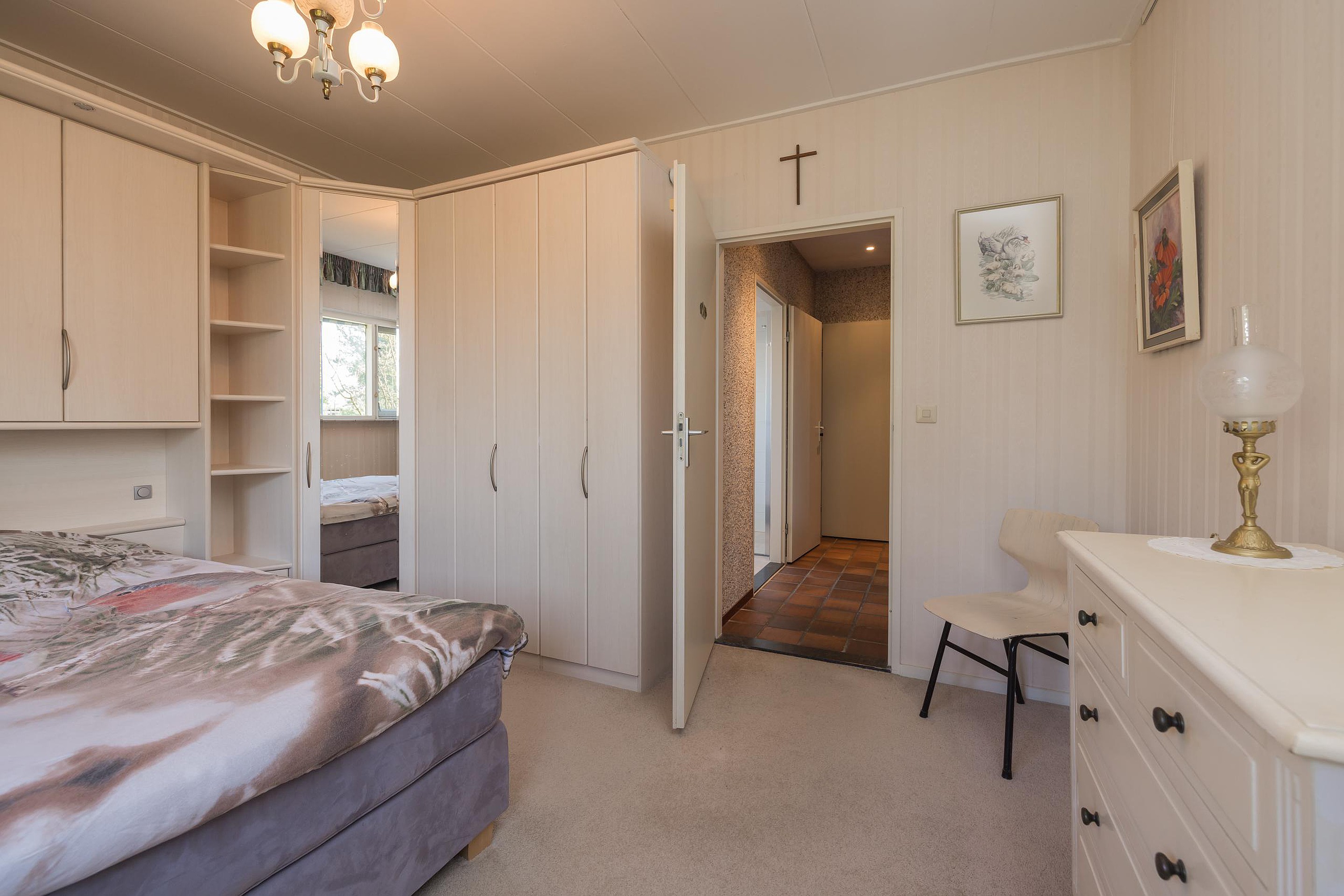 Een grote en bijzonder licht overloop die toegang biedt tot twee ruime lichte slaapkamers met ingebouwde kastruimte. Deze slaapkamers waren voorheen gesplist in vier slaapkamers. De overloop heeft een ingebouwde kastruimte en een badkamer met een douchcabine, een toilet en een wastafel. Tenslotte de derde ruime slaapkamer met veel bergruimte.