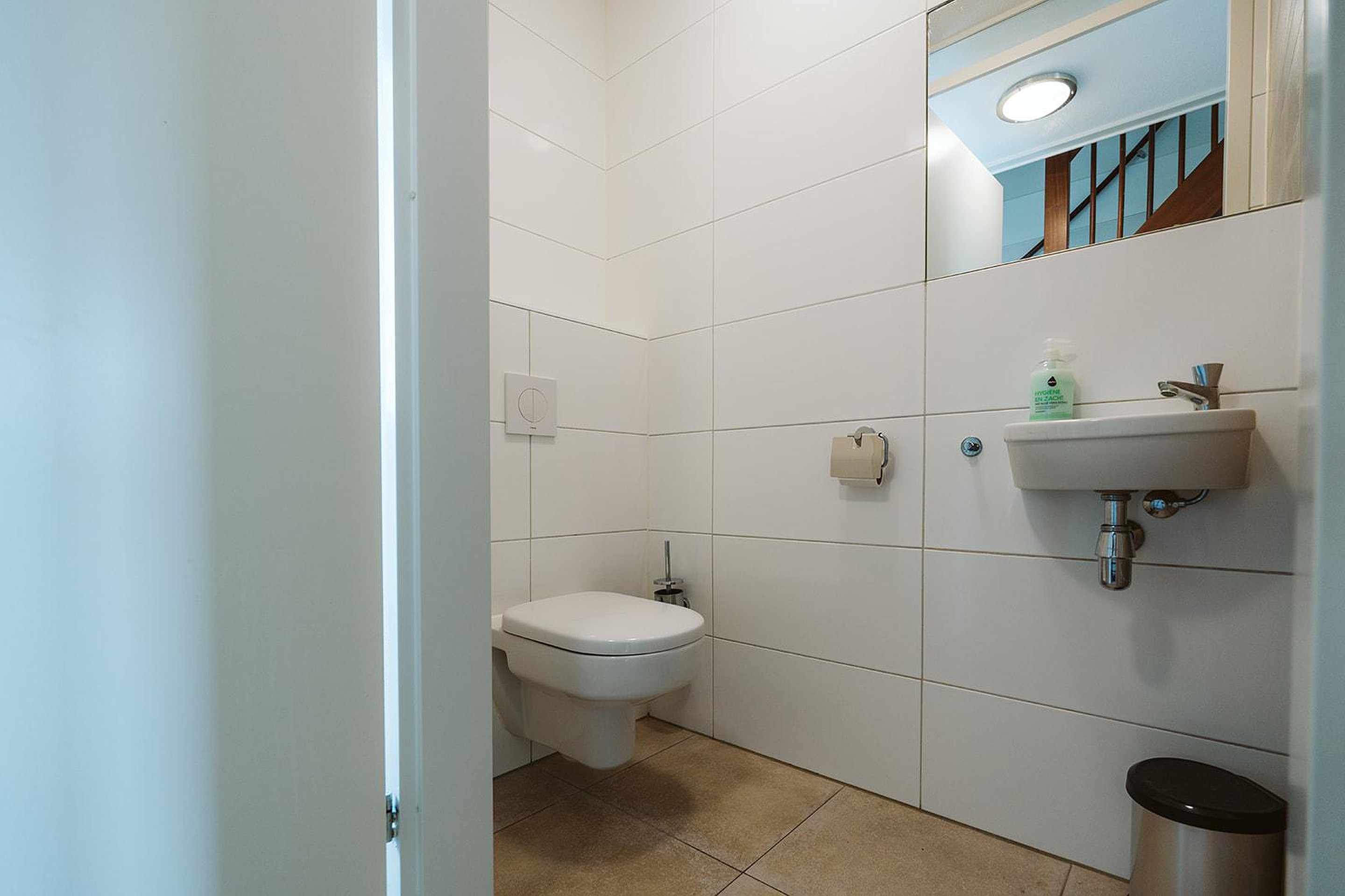 Begane grond Bij binnenkomst komt u in een lichte hal die toegang geeft tot een moderne toiletruimte en de royale woonkamer. De living is sfeervol ingericht met een comfortabele zithoek, een eethoek en een grote raampartij met veel lichtinval. Via de openslaande deuren loopt u zo het terras op. De tegen de wand geplaatste keuken is voorzien van diverse inbouwapparatuur, waaronder een vaatwasser, combimagnetron en gasfornuis.