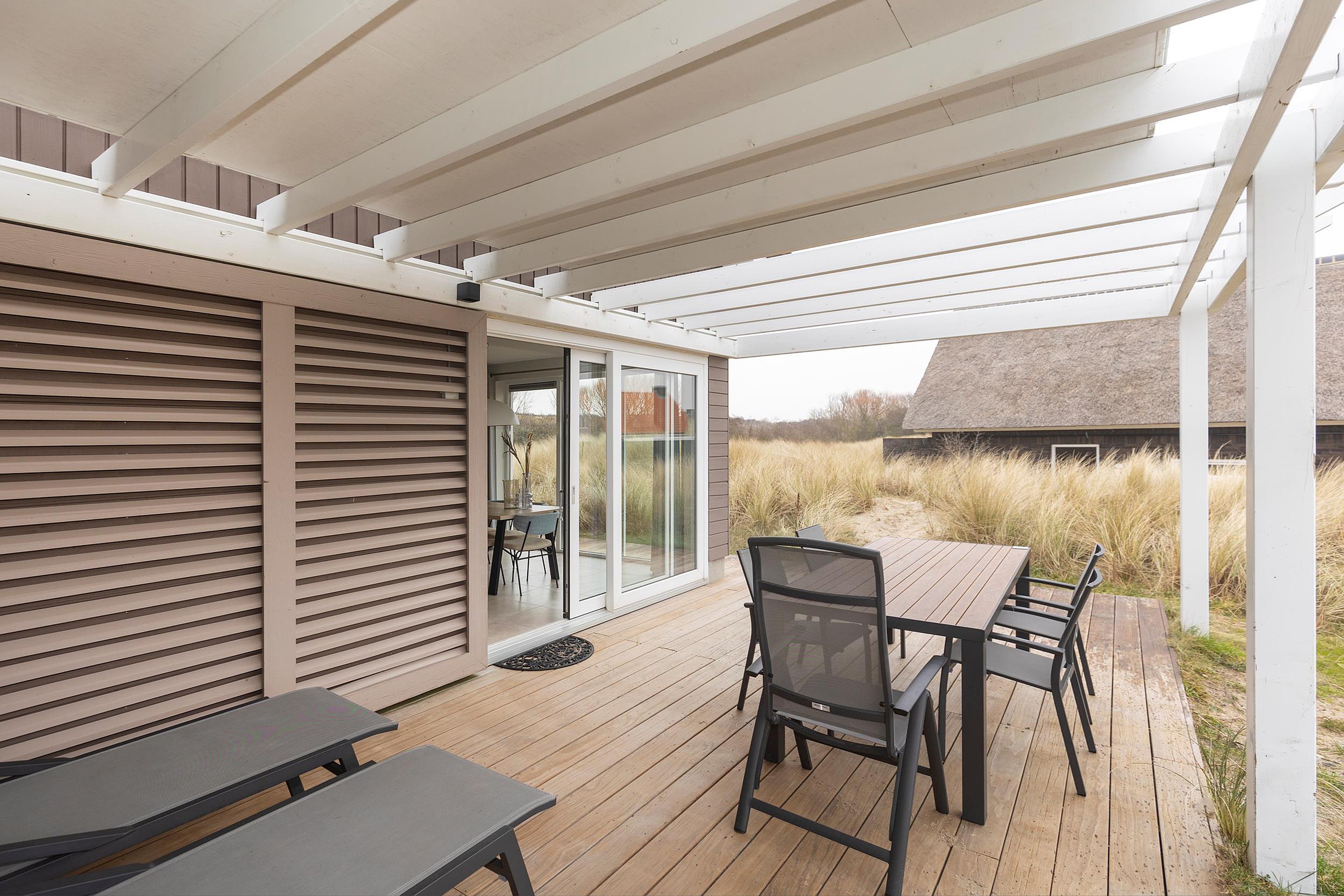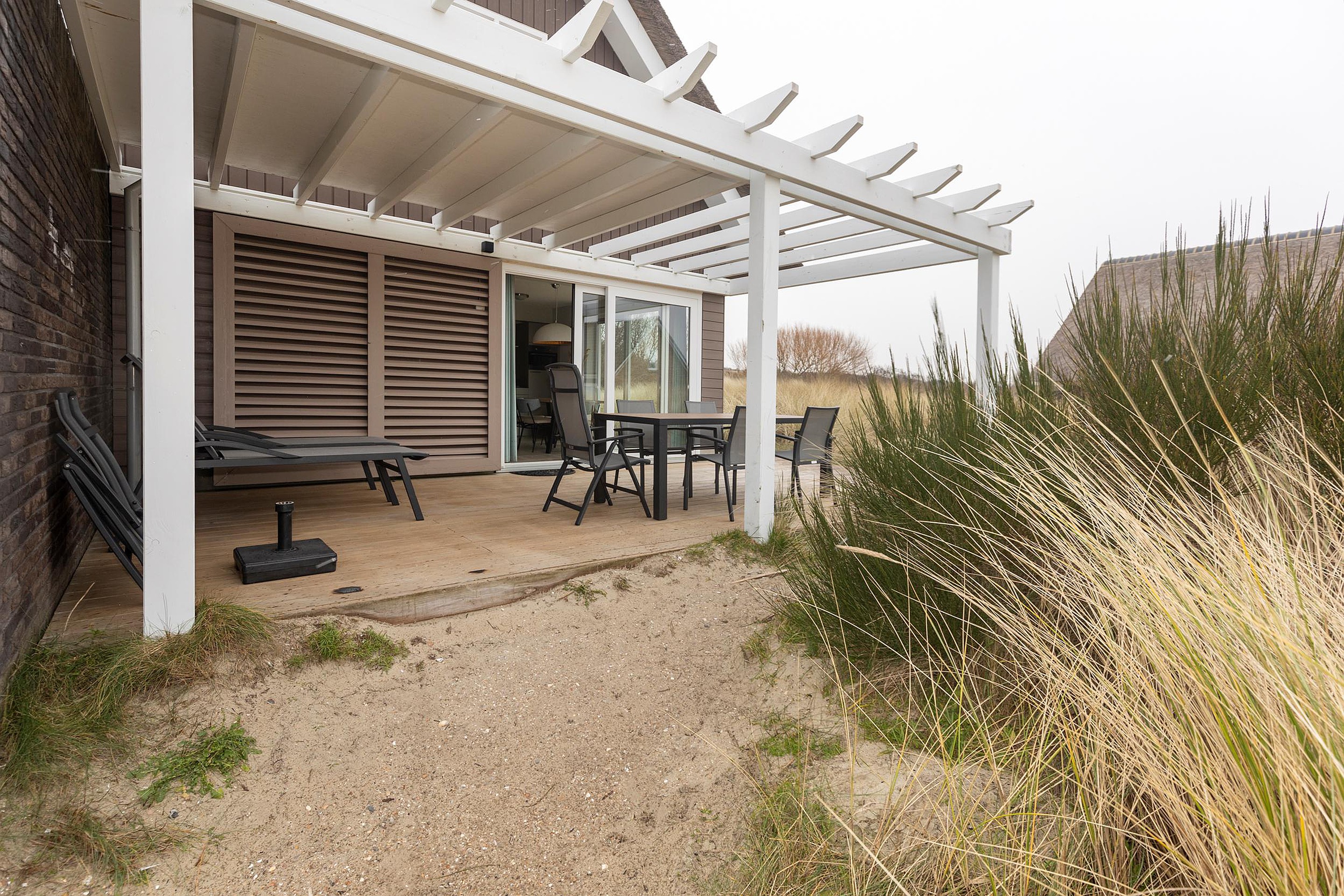 Tuin De duinen rondom de woning zijn begroeid met helmgras. Hierdoor ervaart u op het vlonderterras, waar u de gehele dag zon heeft, veel privacy. De inpandige berging, buitenom te bereiken, is voorzien van elektra en water. Hier bevinden zich de cv-ketel en de witgoedaansluitingen. Het strand bereikt u binnen enkele minuten lopen!