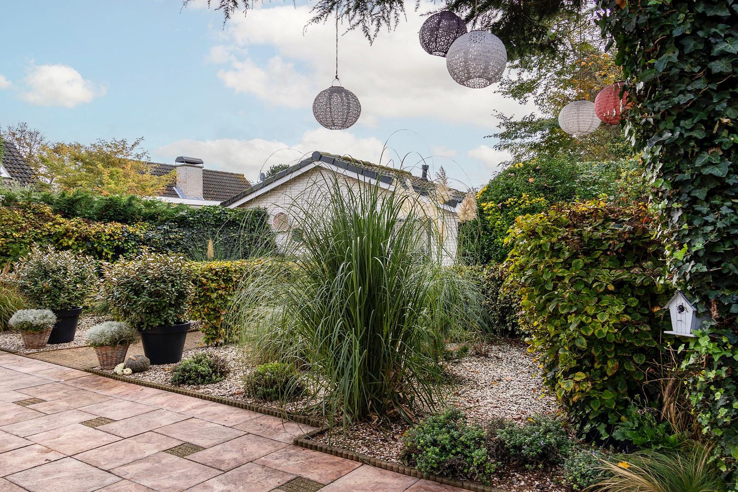 Tuin De tuin rondom de woning is aangelegd met diverse beplanting, aan de voorzijde van de woning is parkeergelegenheid voor meerdere auto’s, aan de achterzijde is het zonneterras. Uiteindelijk loopt de tuin door tot de ruime stenen berging (volledig geïsoleerd en voorzien van elektra).