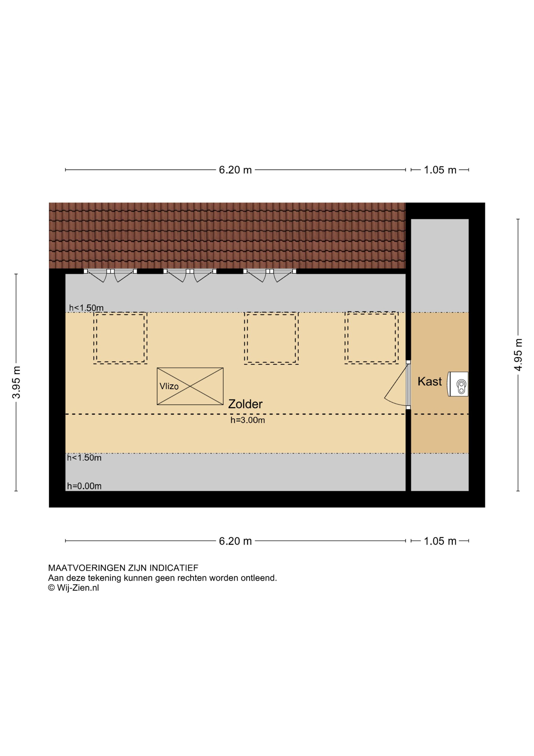 - Zolder ca. 23 m2 met hoge nok (mogelijkheid extra kamer);