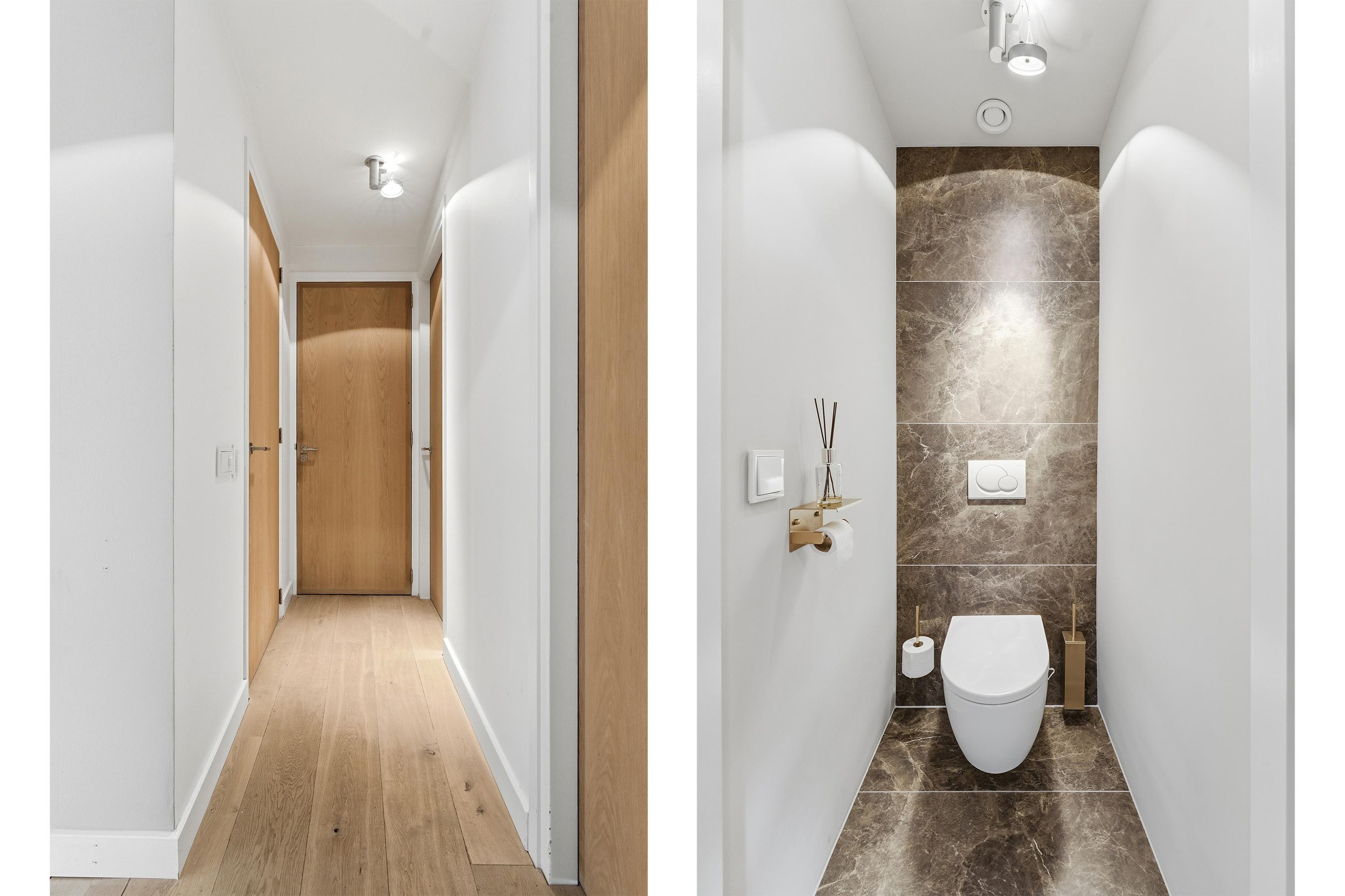 Op de 1e verdieping vind je een ruime hal met een separaat toilet, ook met een luxe afwerking. De badkamer is eveneens luxe afgewerkt in de zelfde stijl, met een inloopdouche, dubbele wastafel en een prachtig vrijstaand bad. De master bedroom is heerlijk ruim en voorzien van een prachtig afgewerkte inloopkast. Er is een ruime tweede slaapkamer op deze etage. Via deze slaapkamer is ook de zolder bereikbaar middels een vlizotrap. Met een nokhoogte van maar liefst 3 meter, kan je hier door het plaatsen van een vaste trap eenvoudig een extra slaapkamer creëren! Alles voelt ruim, licht en doordacht.