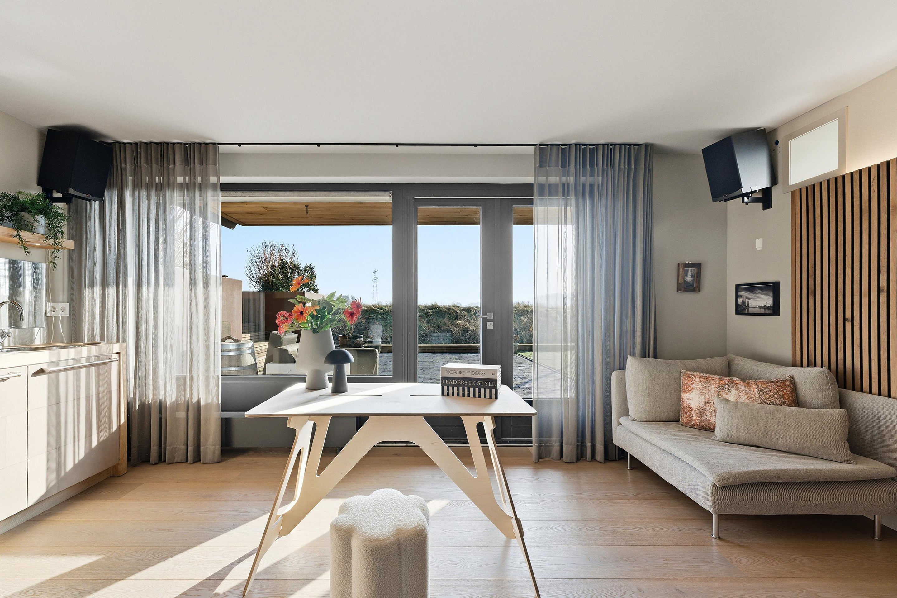 Er zijn meerdere terrassen gecreëerd, waardoor je op ieder moment van de dag een fijne plek in de zon of juist in de schaduw kunt vinden. Vanuit zowel de woonkamer, de werkkamer als het terras kijk je prachtig uit over de tuin en het omliggende groen. Of je nu wilt ontspannen met een goed glas wijn, gezellig wilt borrelen met vrienden of simpelweg wilt genieten van de stilte en natuur: hier kan het allemaal. Een buitenruimte waar je elke dag opnieuw dat vakantiegevoel ervaart.