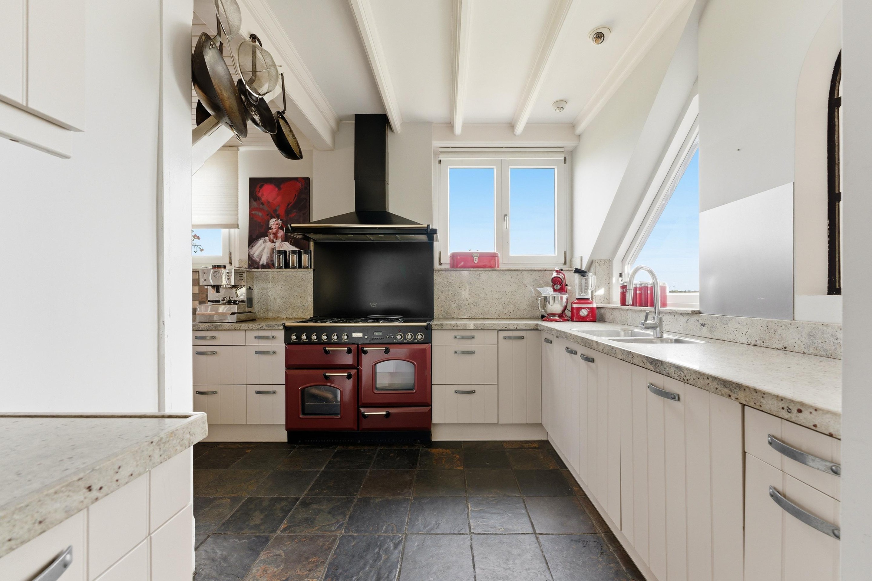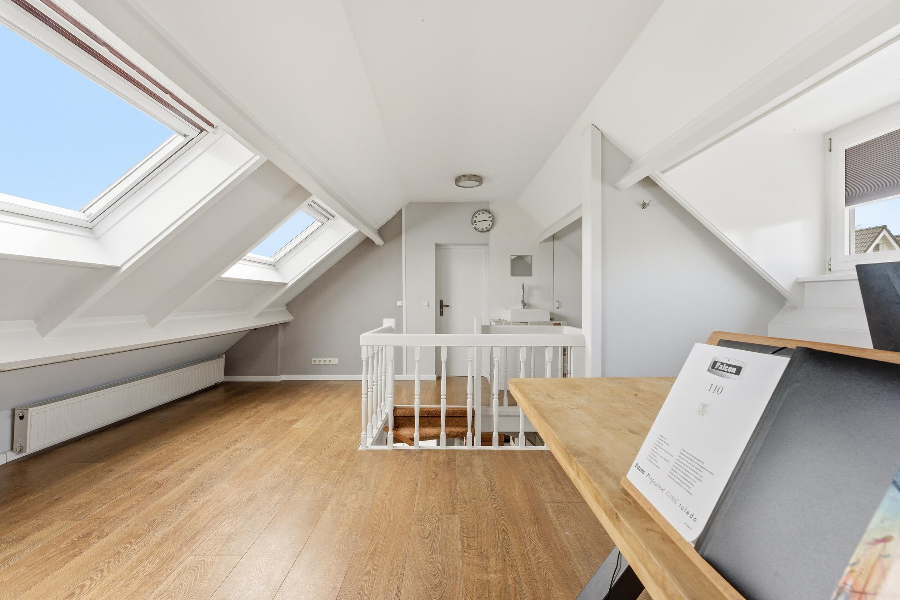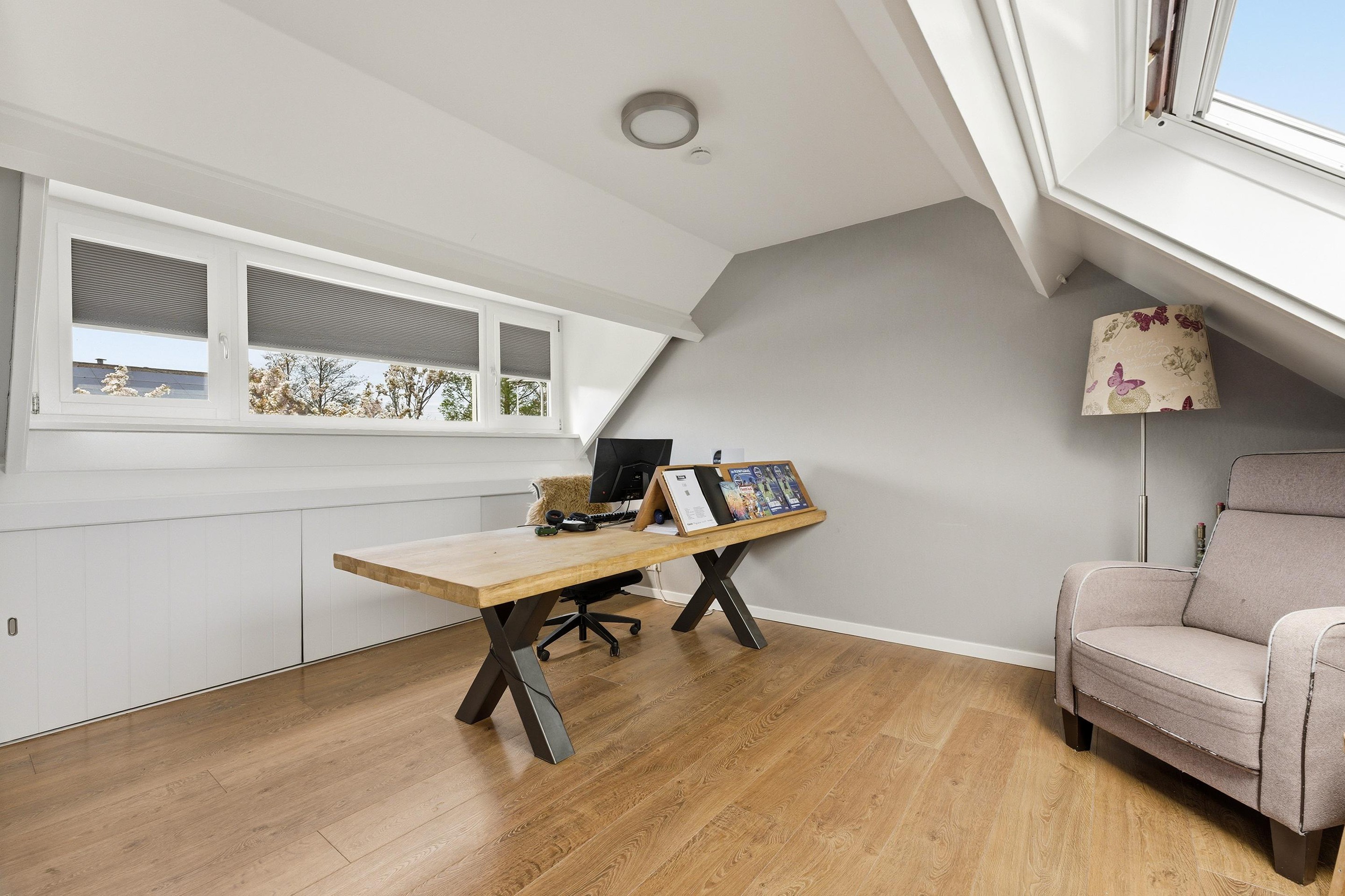 De open keuken sluit mooi aan op de woonkamer en is praktisch ingericht, met daarnaast een aparte eetkamer waar je met gemak uitgebreid kunt tafelen met familie en vrienden. Verder vind je op deze woonlaag een extra kamer die perfect te gebruiken is als speelkamer, werkkamer, luxe grote eetkamer of hobbyruimte.