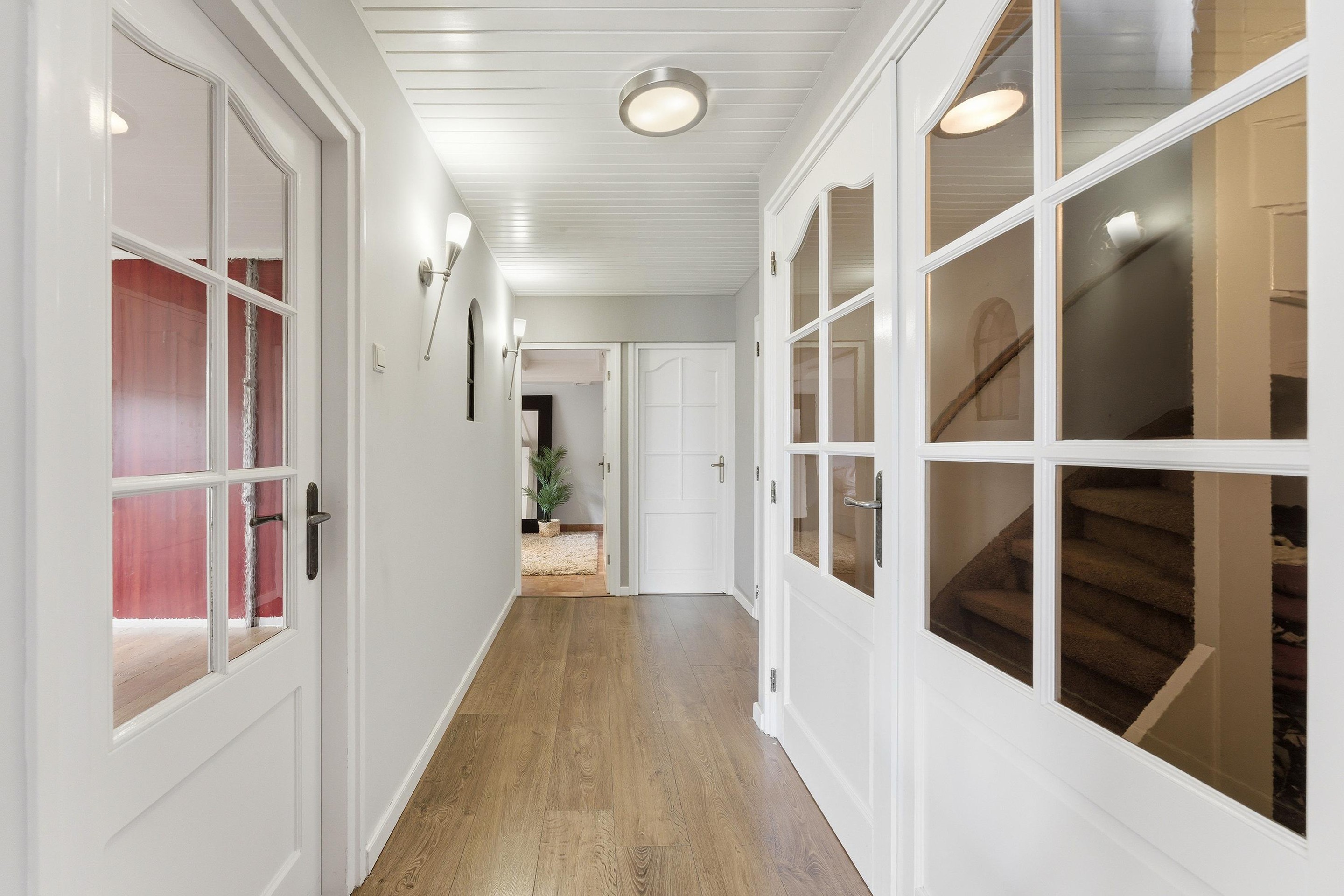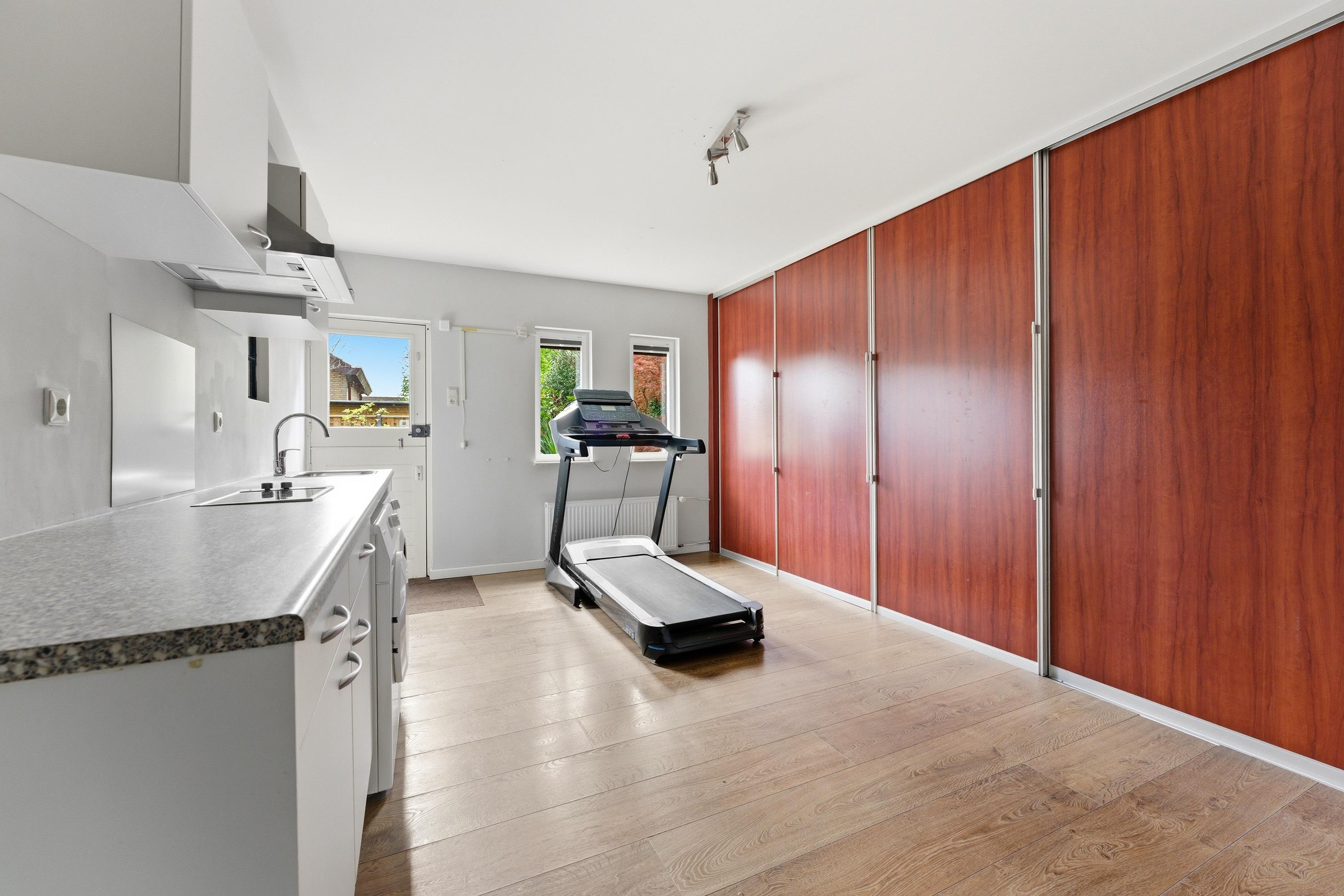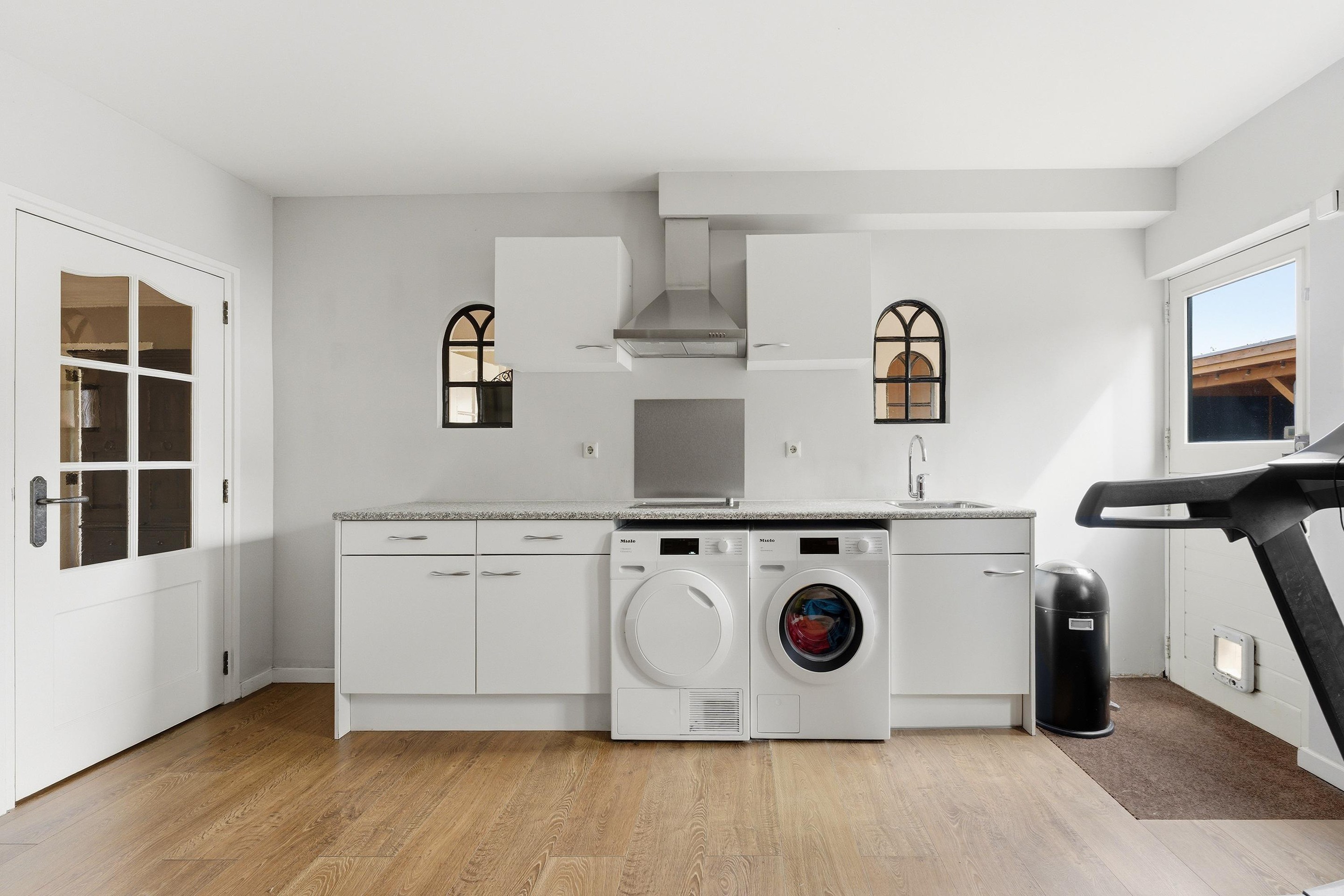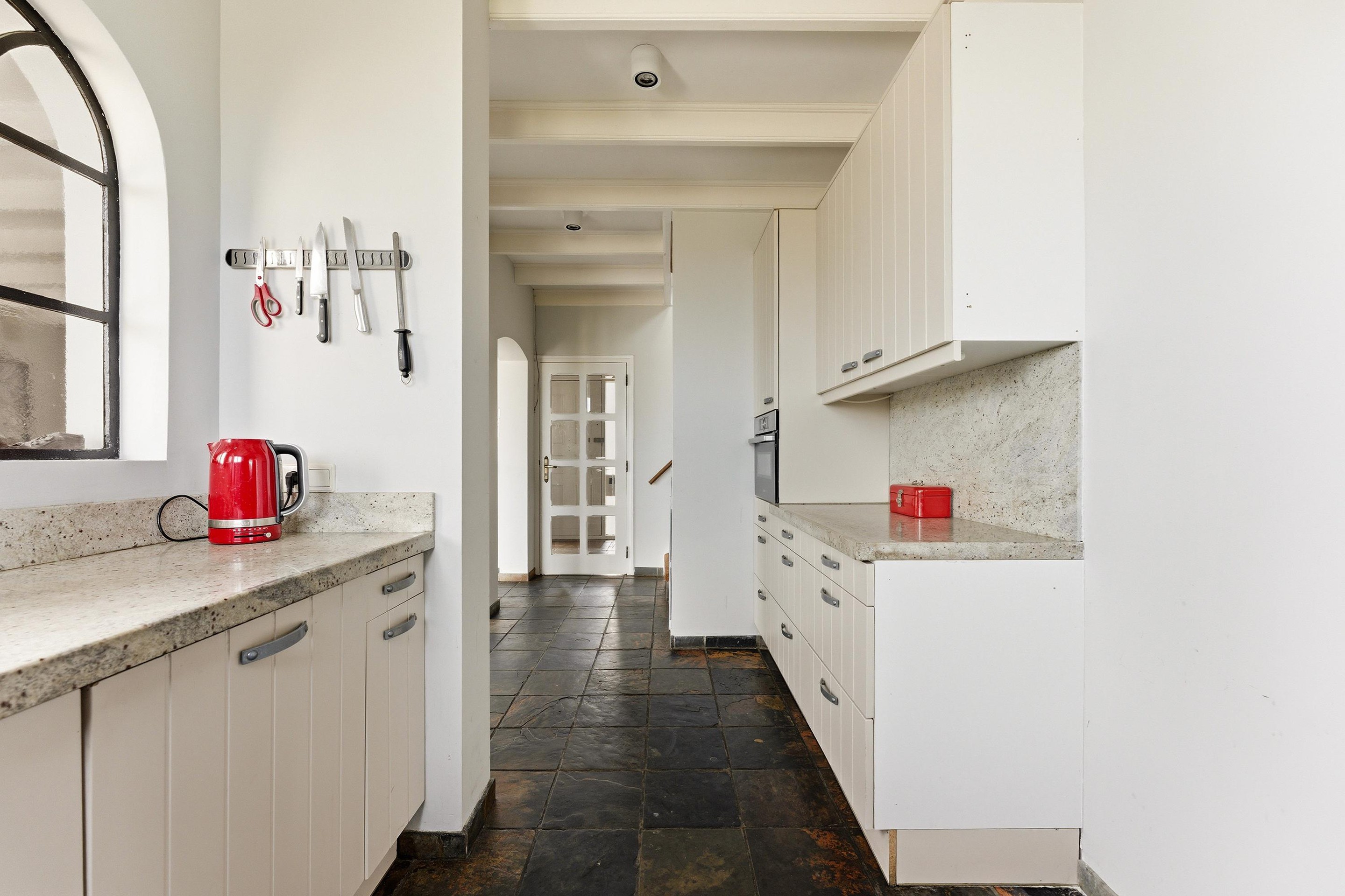 De open keuken sluit mooi aan op de woonkamer en is praktisch ingericht, met daarnaast een aparte eetkamer waar je met gemak uitgebreid kunt tafelen met familie en vrienden. Verder vind je op deze woonlaag een extra kamer die perfect te gebruiken is als speelkamer, werkkamer, luxe grote eetkamer of hobbyruimte.