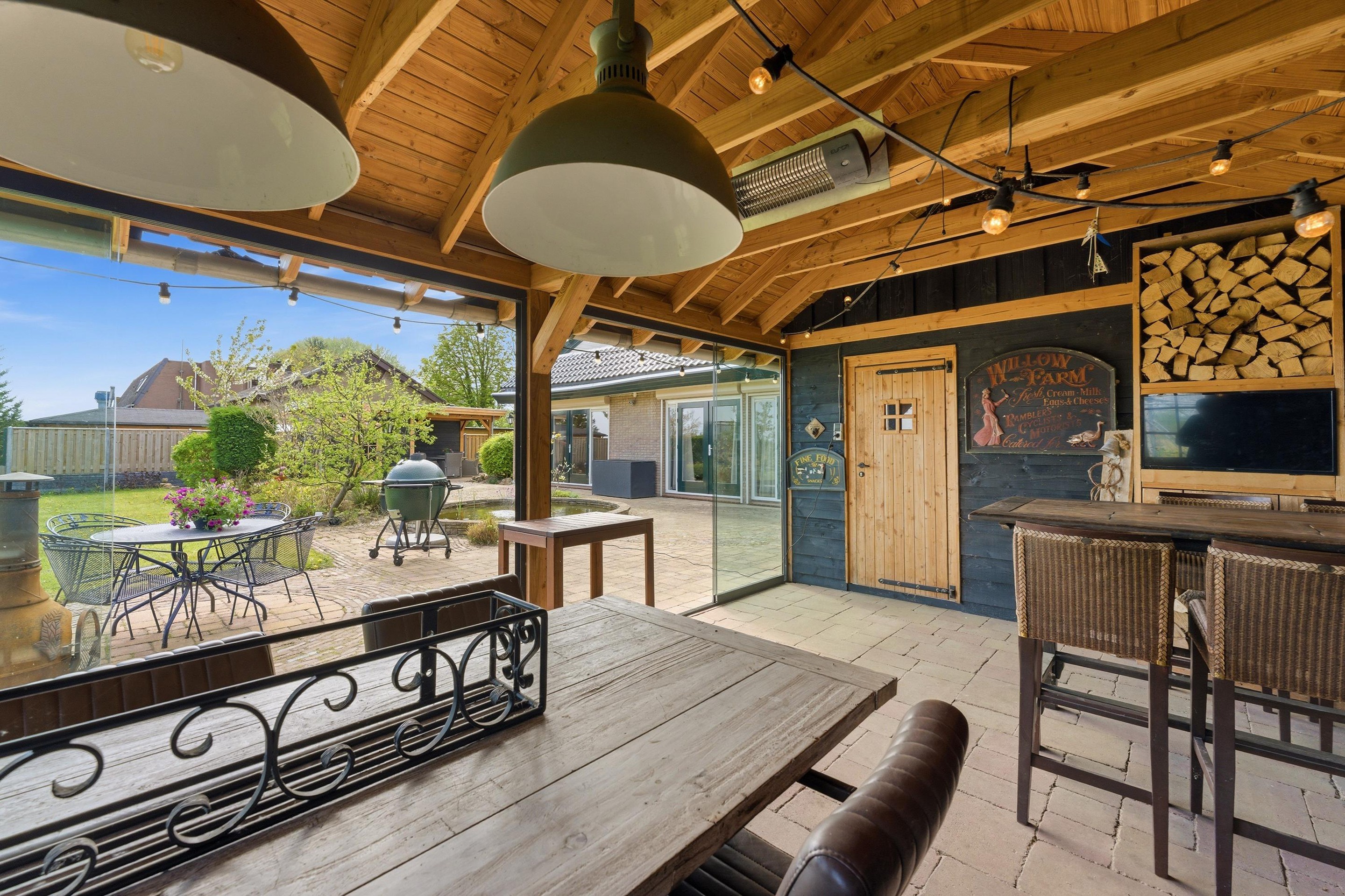 En dan de overkappingen… een absolute meerwaarde! De grote, volledig afsluitbare tuinkamer is een plek waar je het hele jaar door kunt genieten. Met uitzicht op de tuin én de polder voelt dit als een verlengstuk van je woning. Daarnaast is er nog een tweede overkapping aanwezig, ideaal als extra loungeplek of beschutte zithoek.
