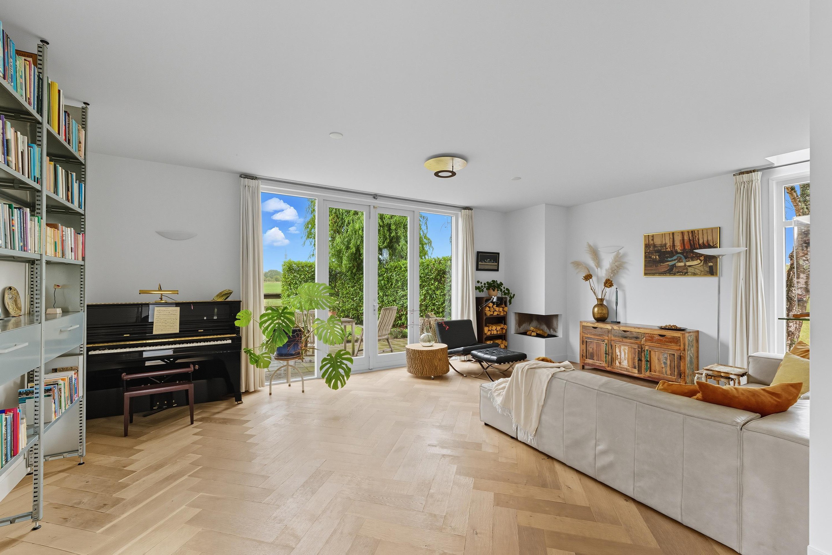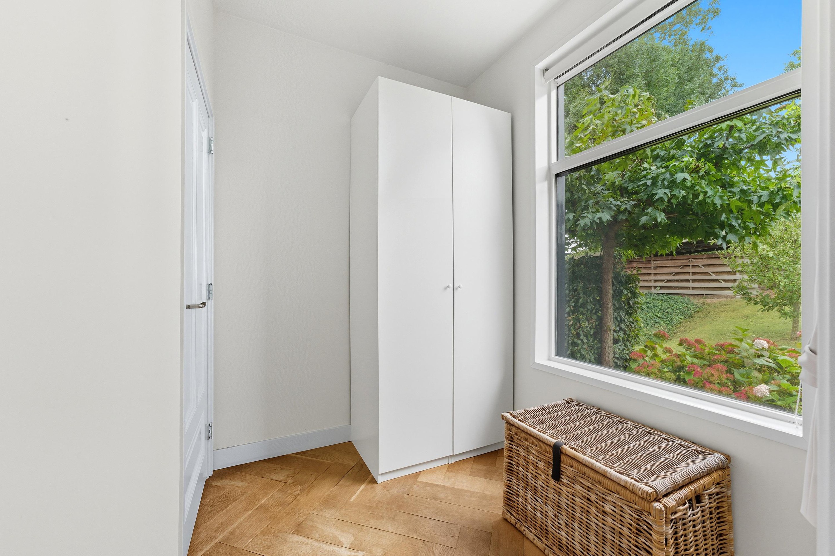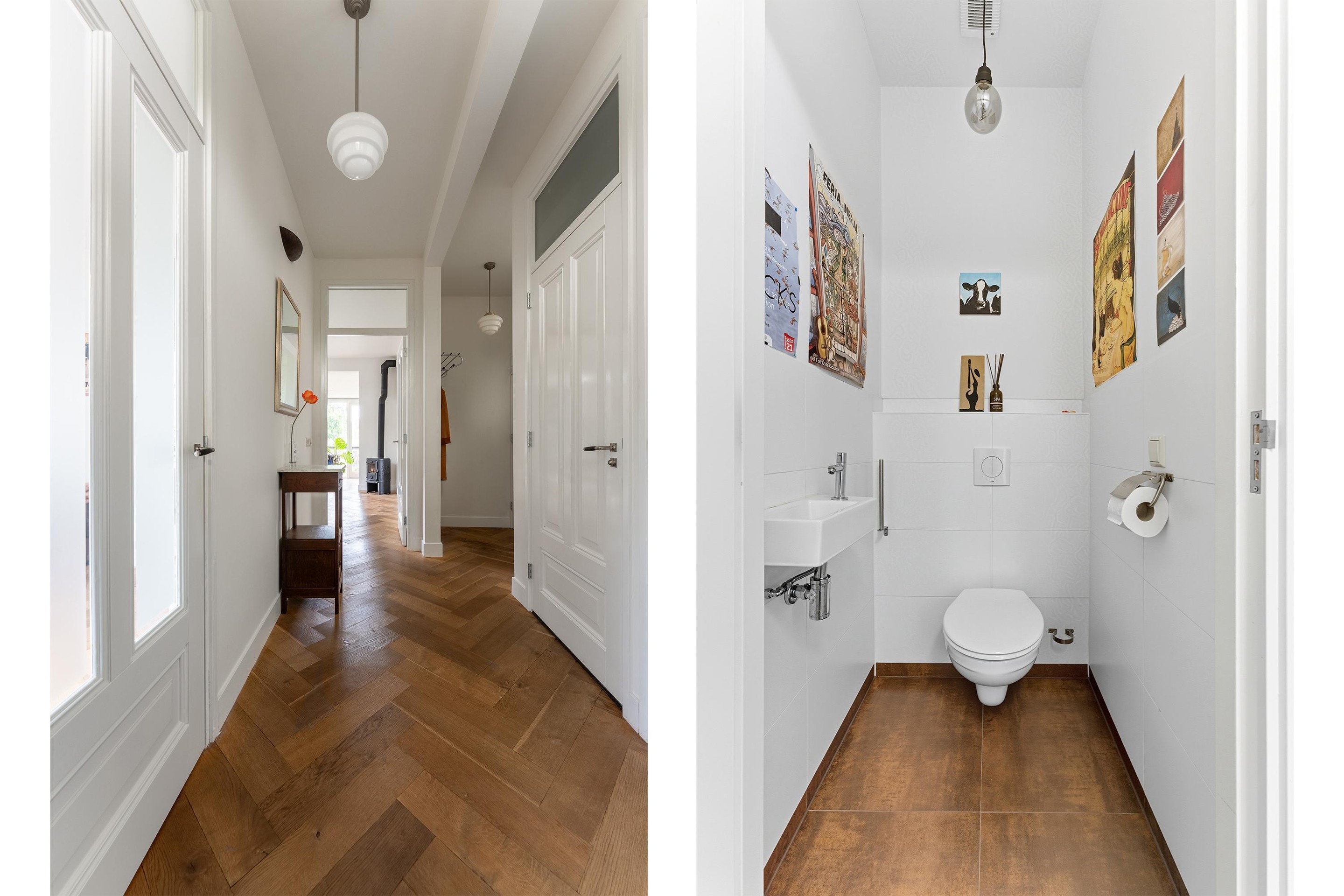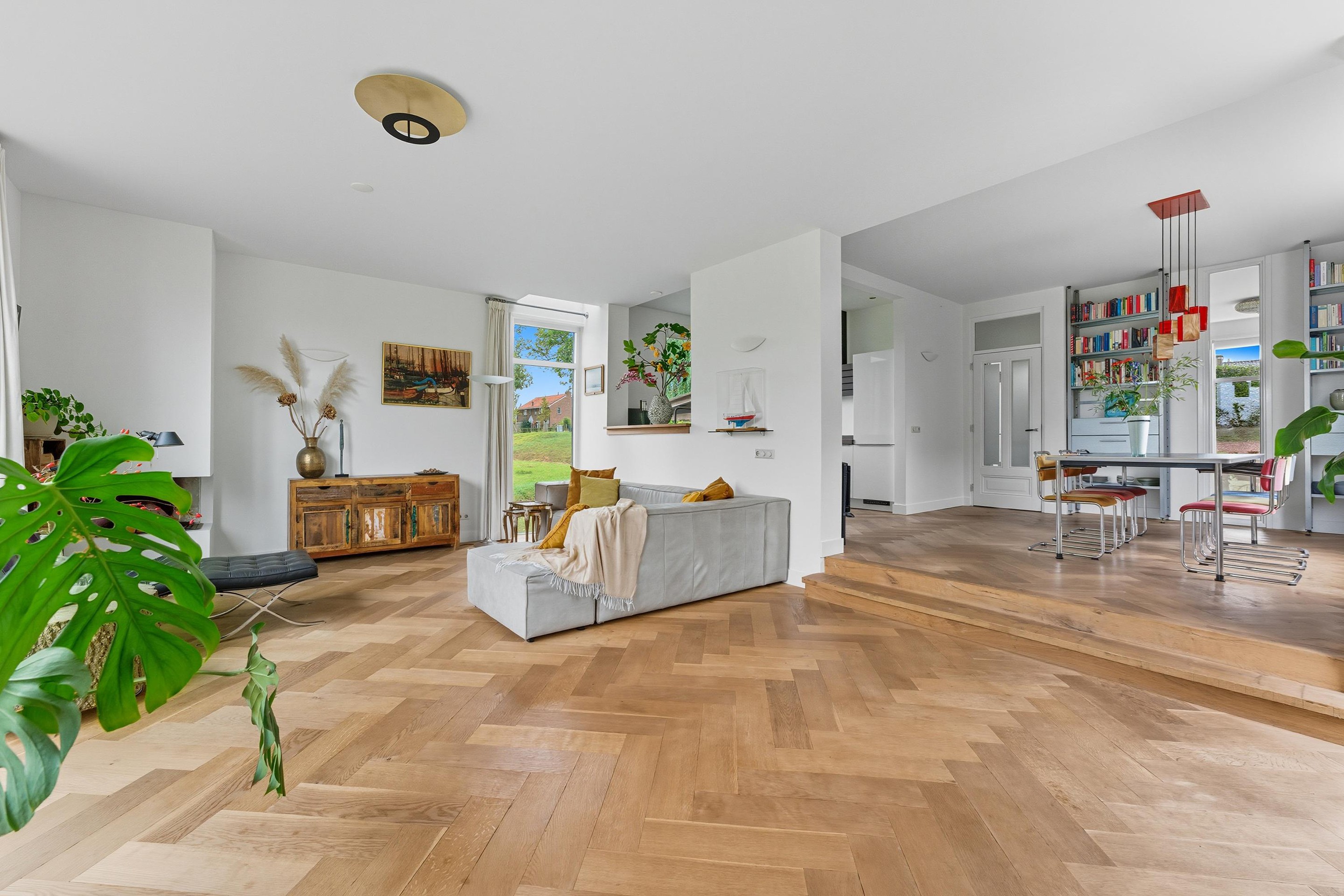 De gehele begane grond is voorzien van een strakke wandafwerking en een mooie houten visgraatvloer met vloerverwarming.