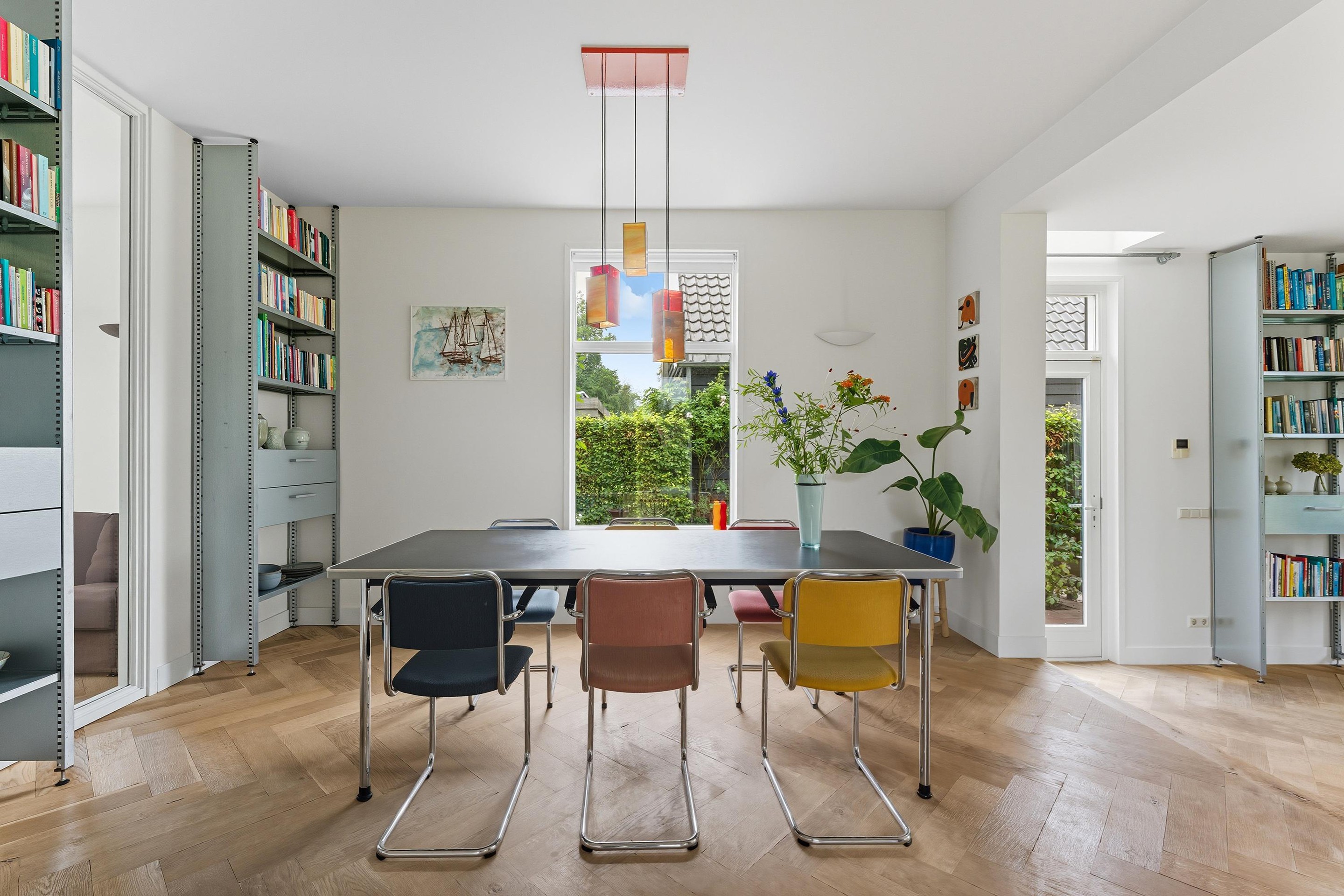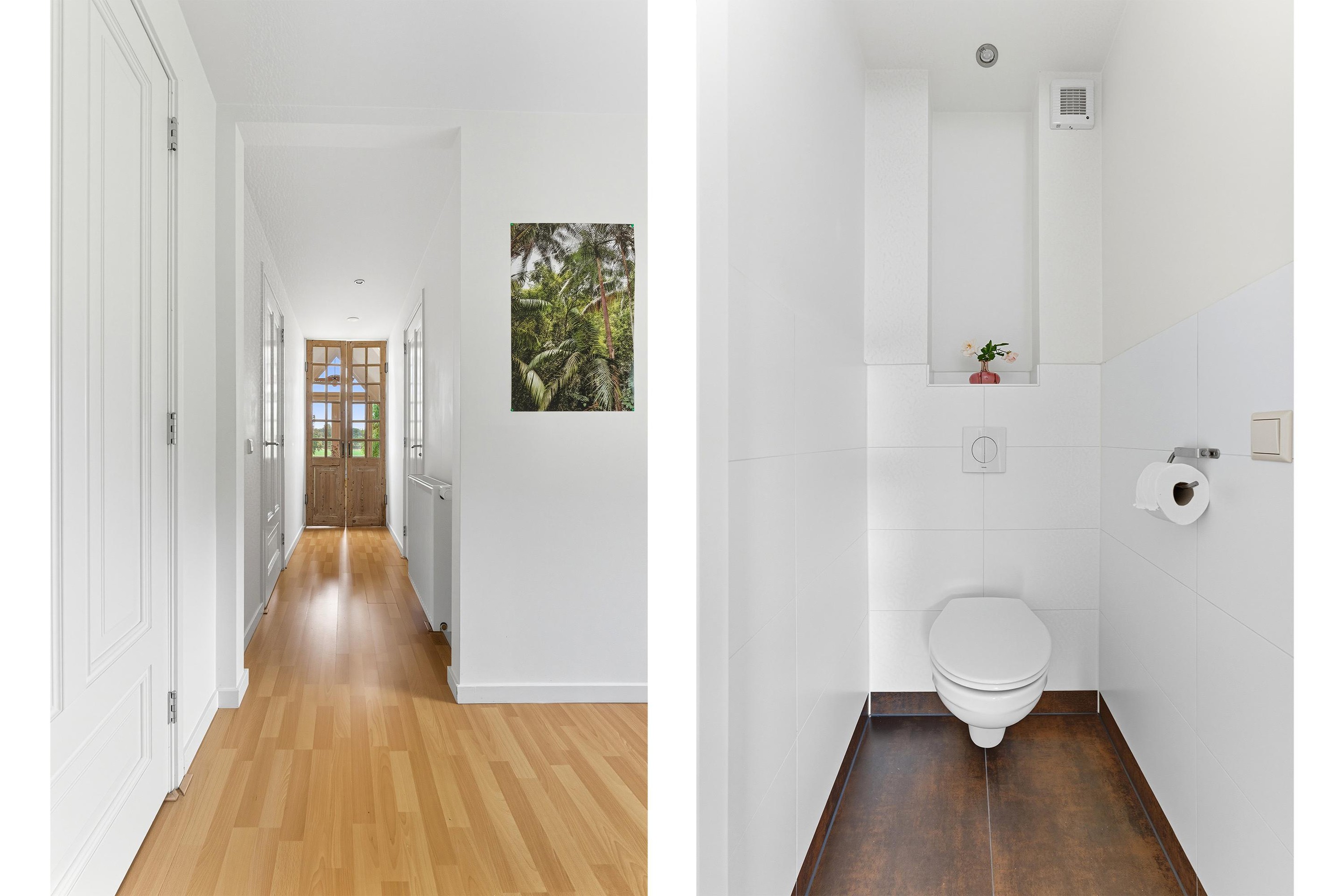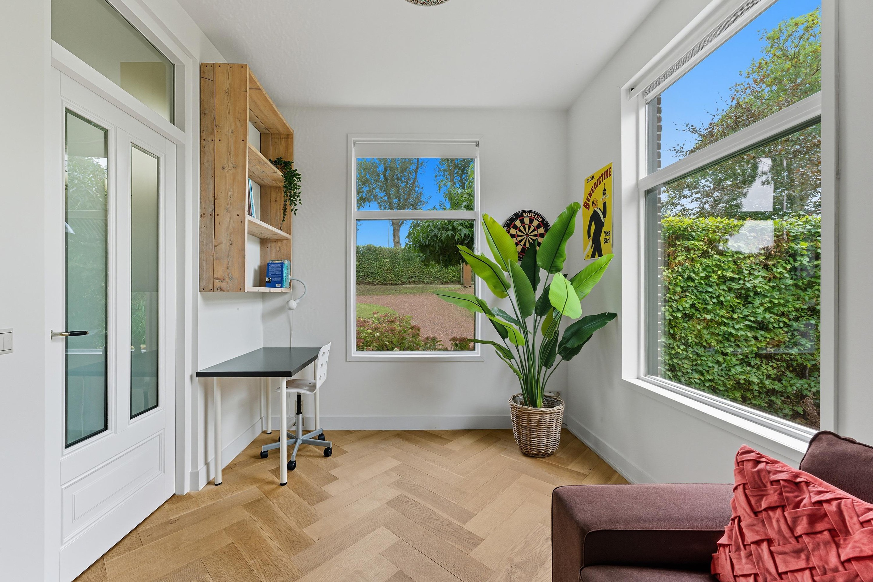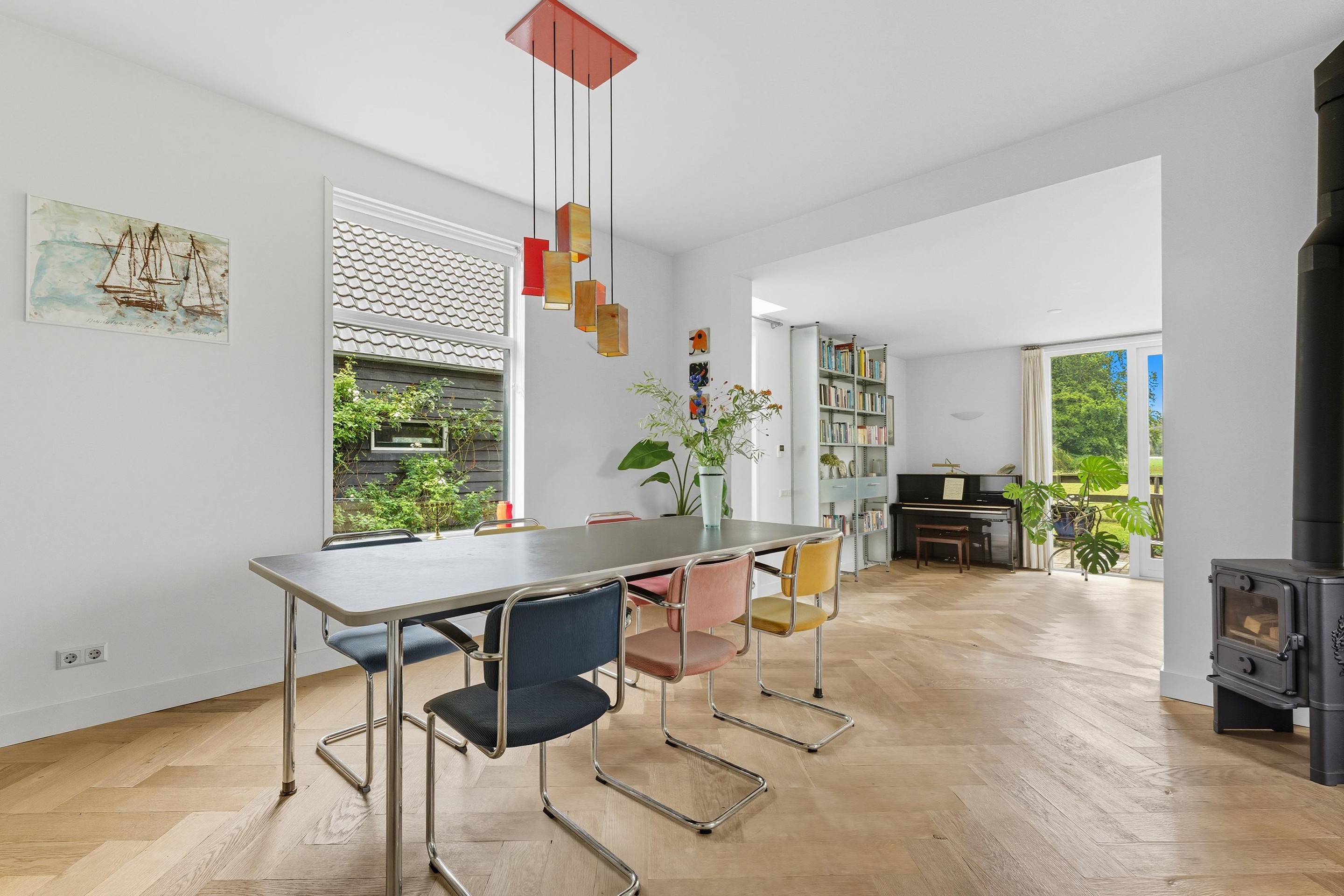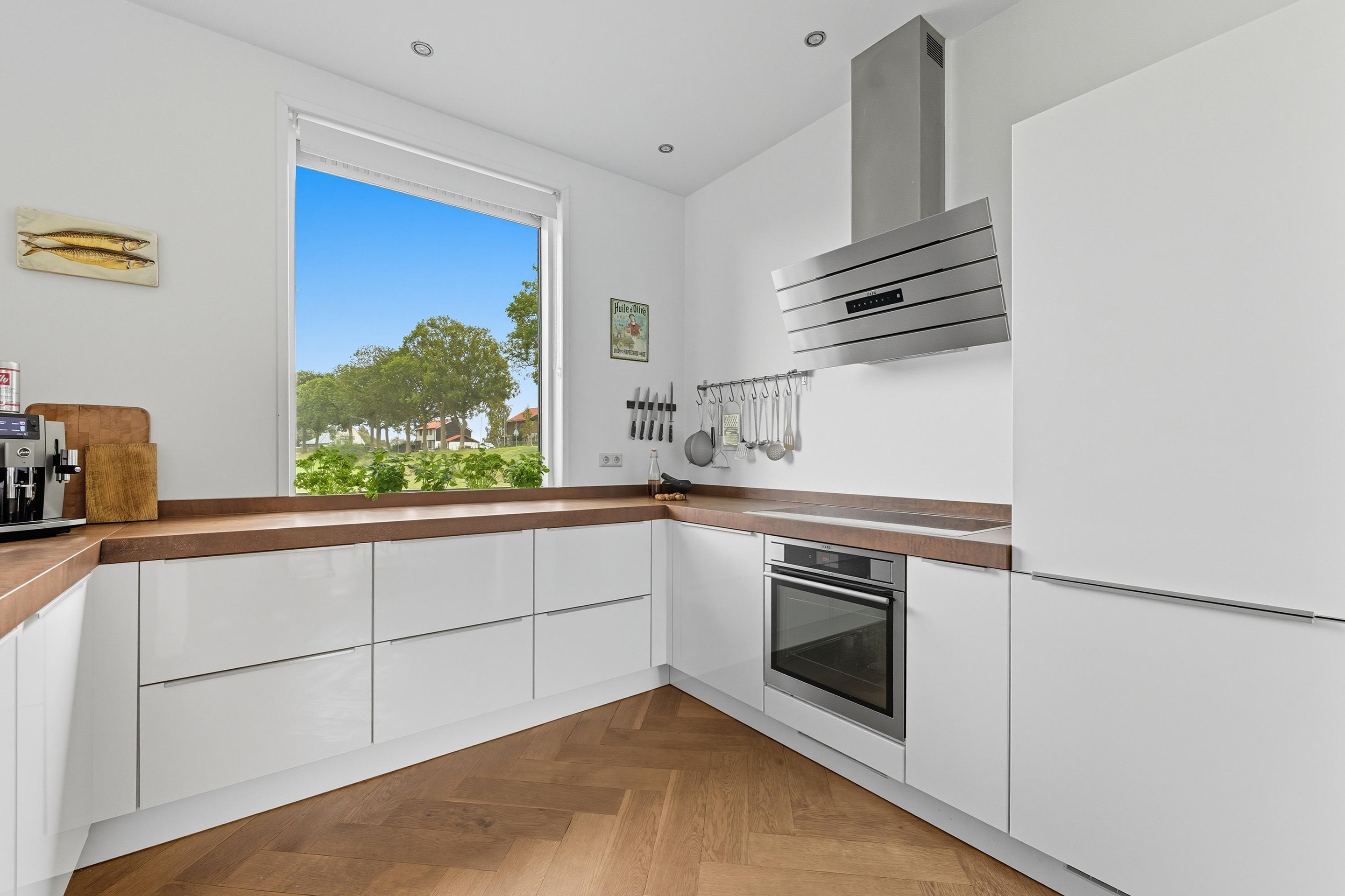 De gehele begane grond is voorzien van een strakke wandafwerking en een mooie houten visgraatvloer met vloerverwarming.