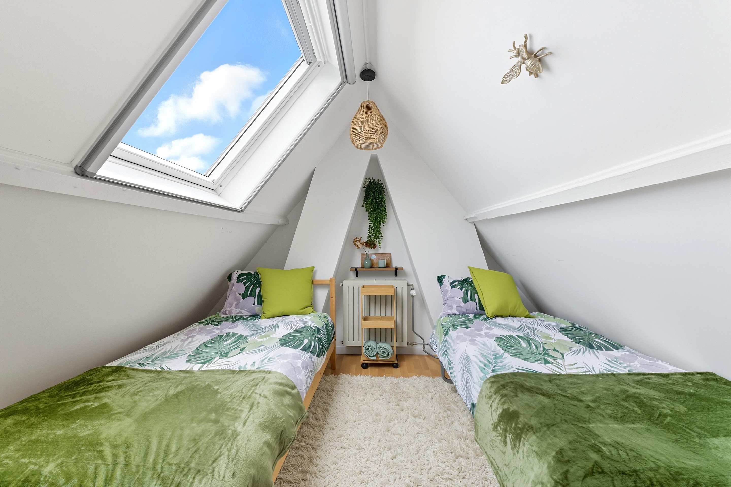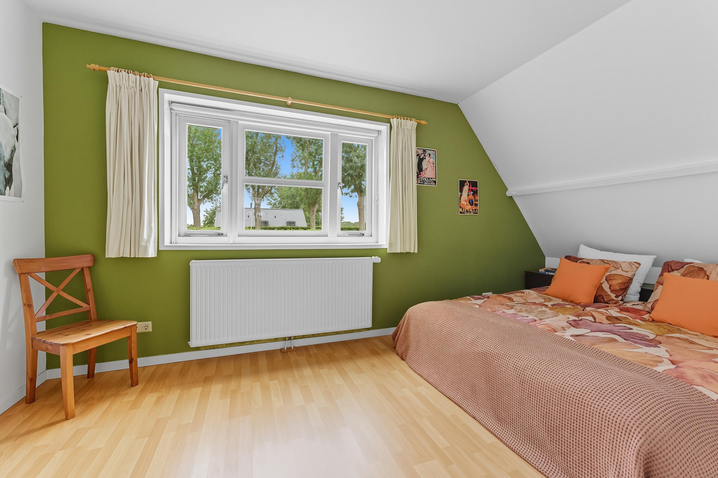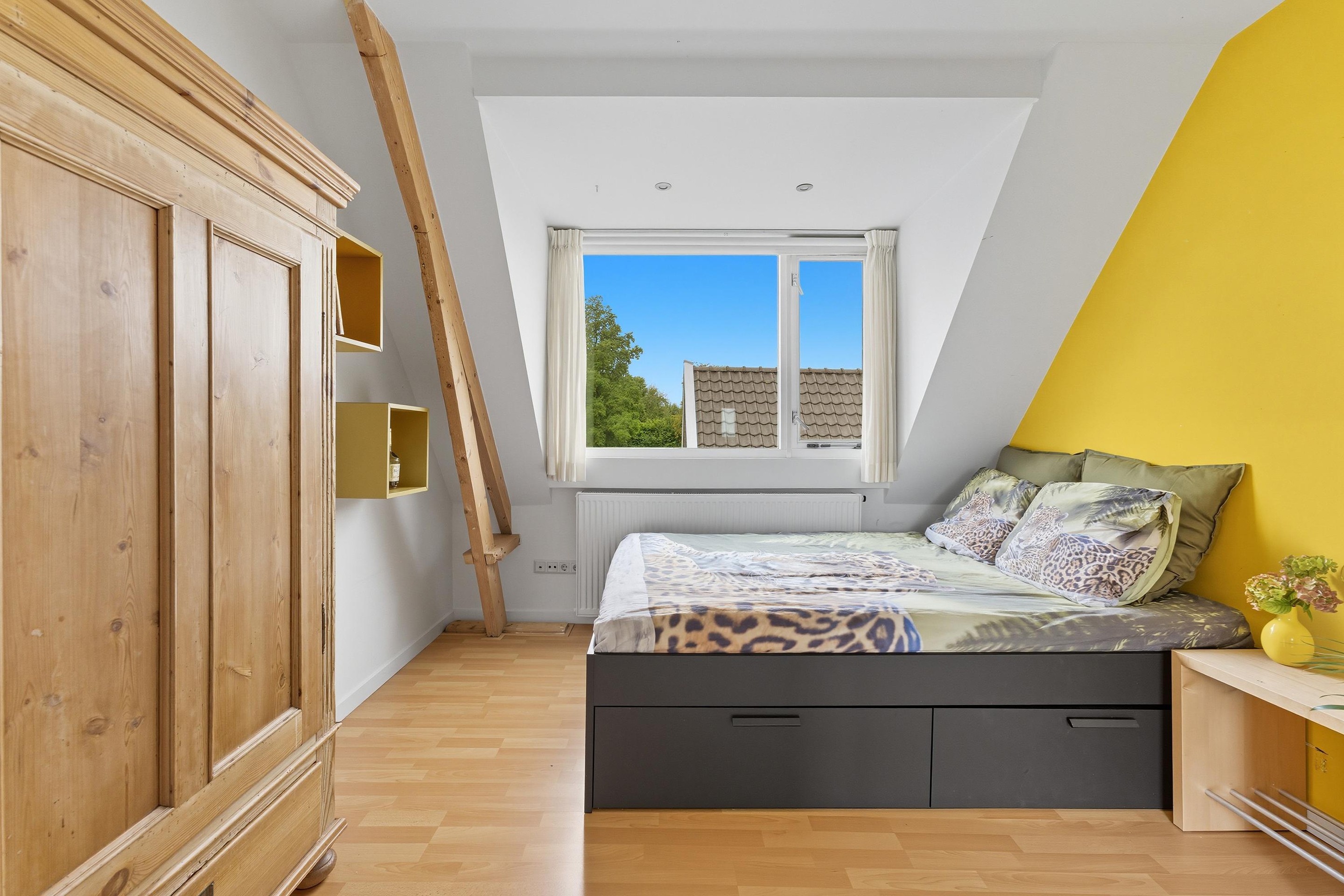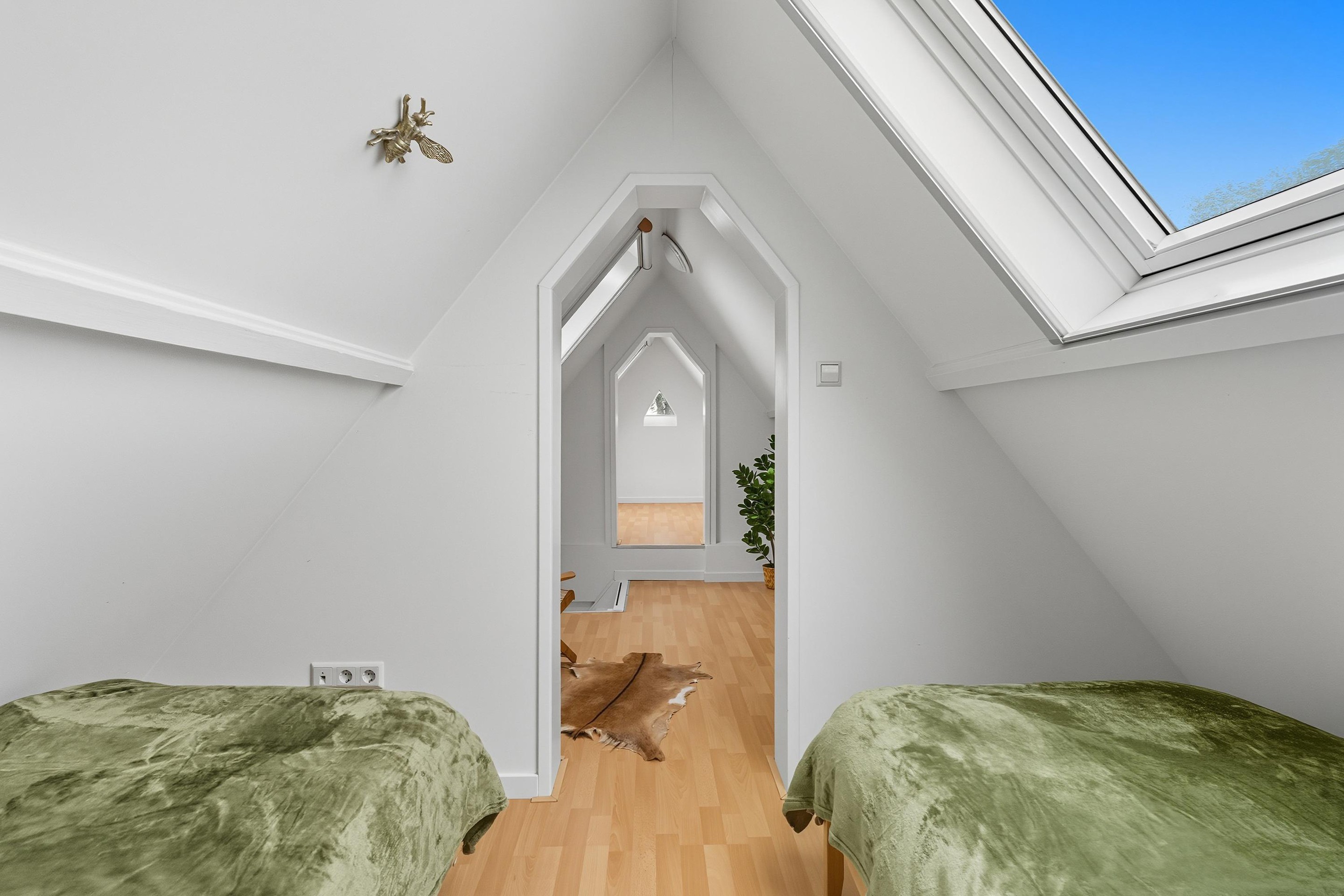 Je komt op deze verdieping op de overloop. Hier zijn nóg eens twee kamers te vinden, ideaal als logeer- of werkkamers.