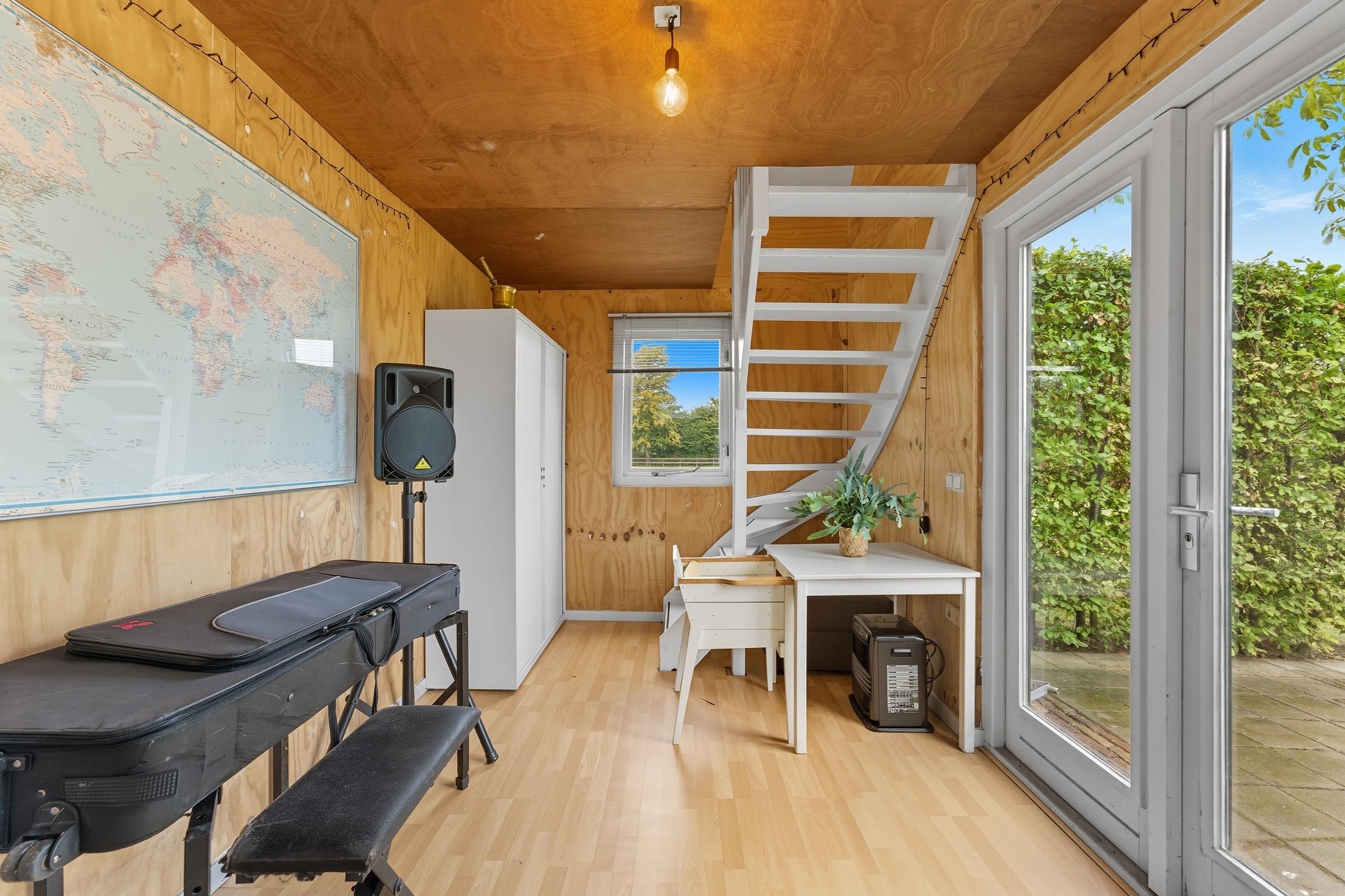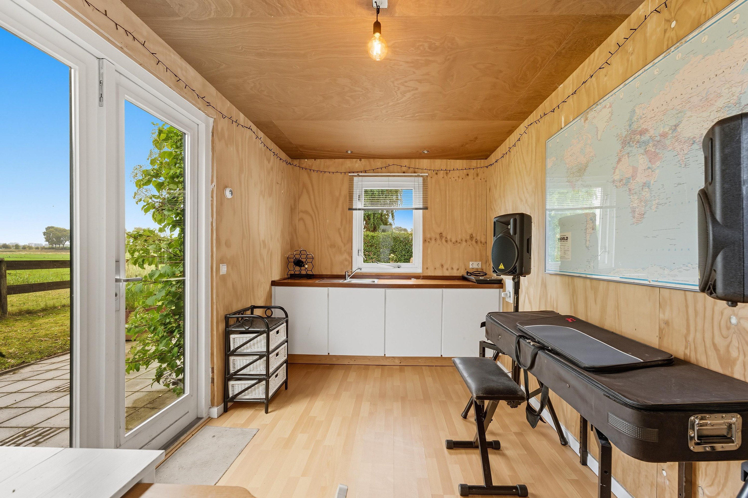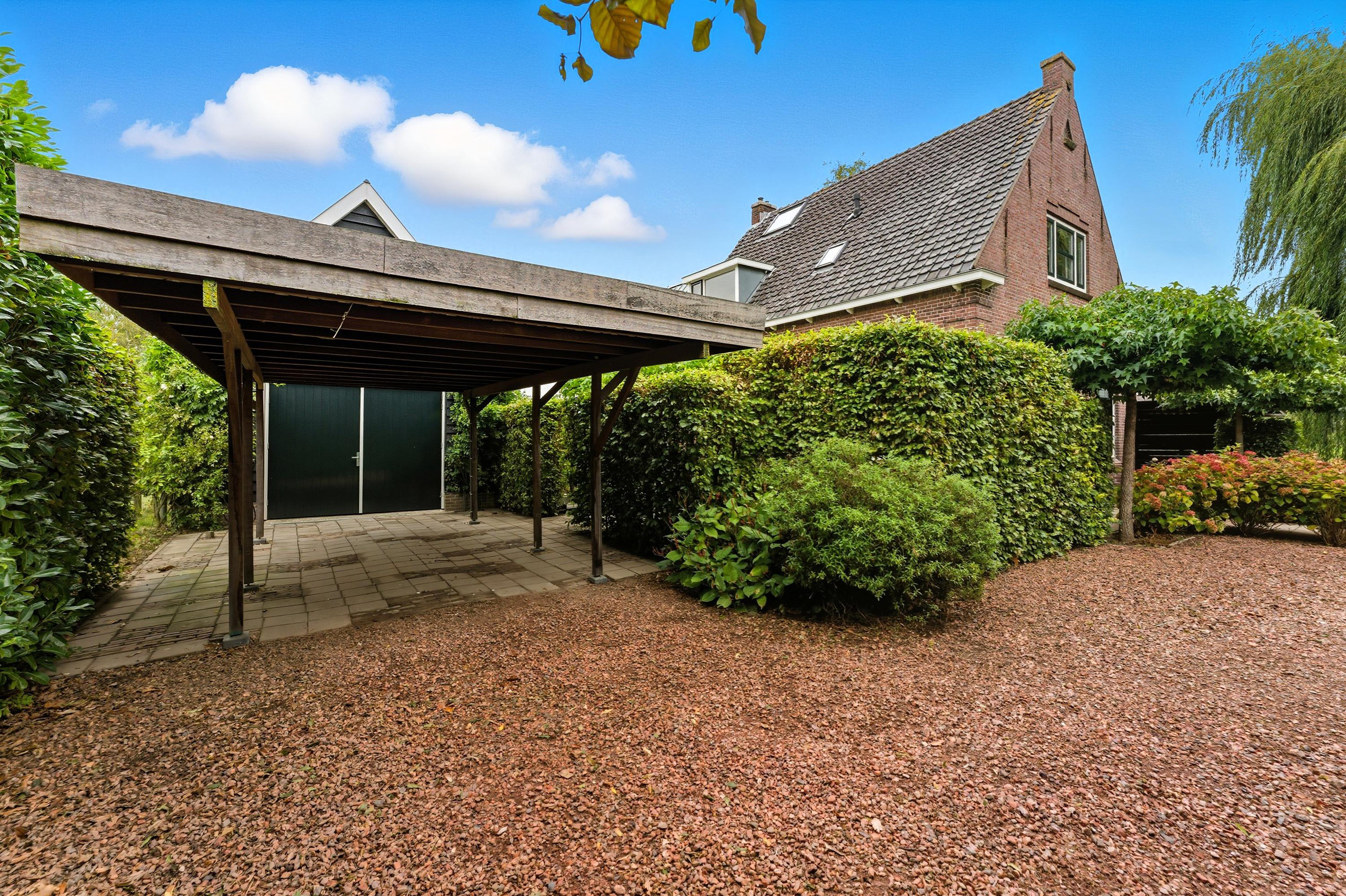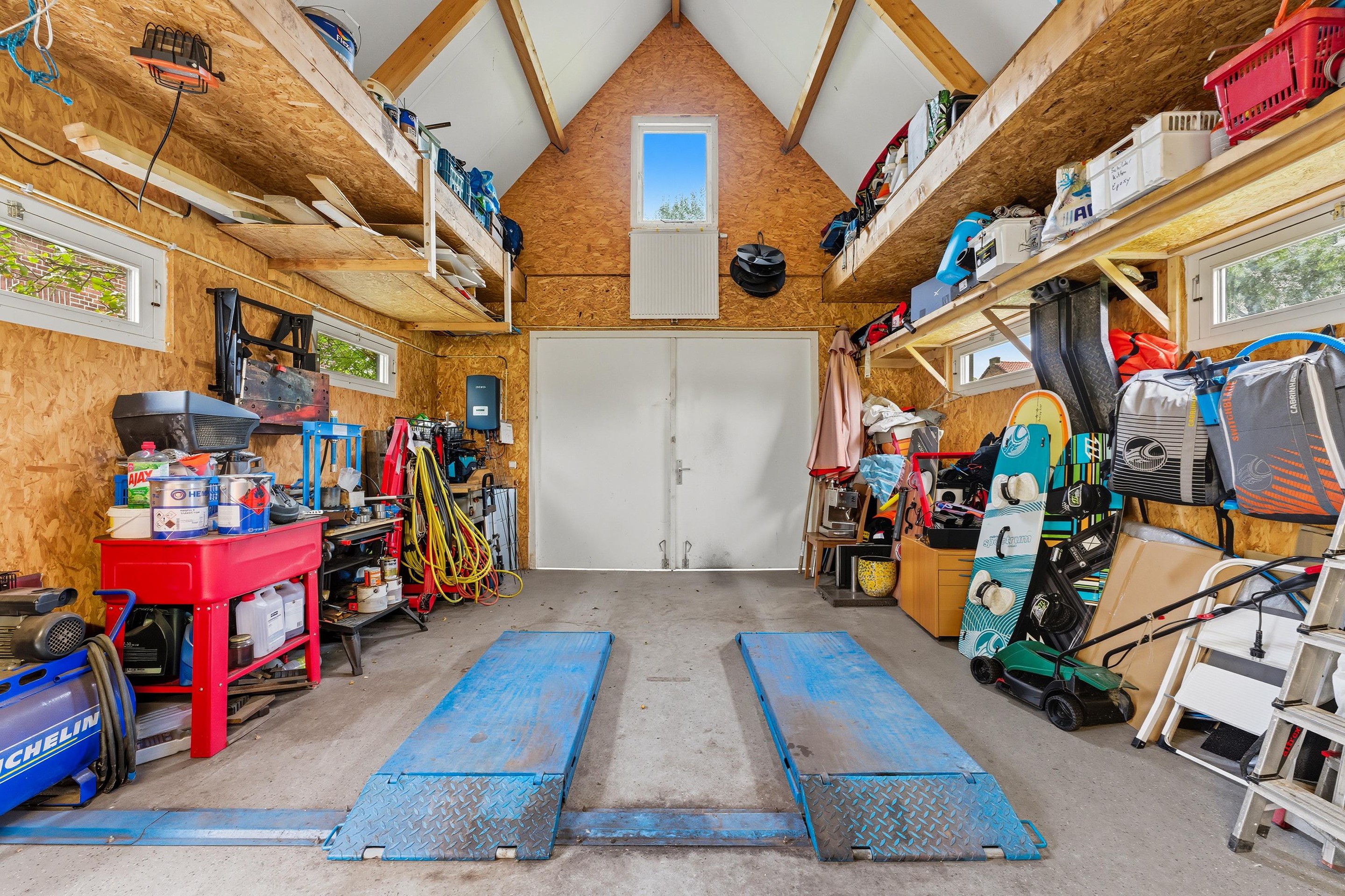 In de tuin vind je een groot vrijstaand bijgebouw dat volledig is geïsoleerd is. Dit bijgebouw is opgedeeld in een grote garage en een apart buitenverblijf met keuken, badkamer, woonkamer en slaapkamer. Deze ruimte biedt ongekende mogelijkheden: een gastenverblijf, atelier, kantoor aan huis of een mantelzorgwoning: het kan hier allemaal.