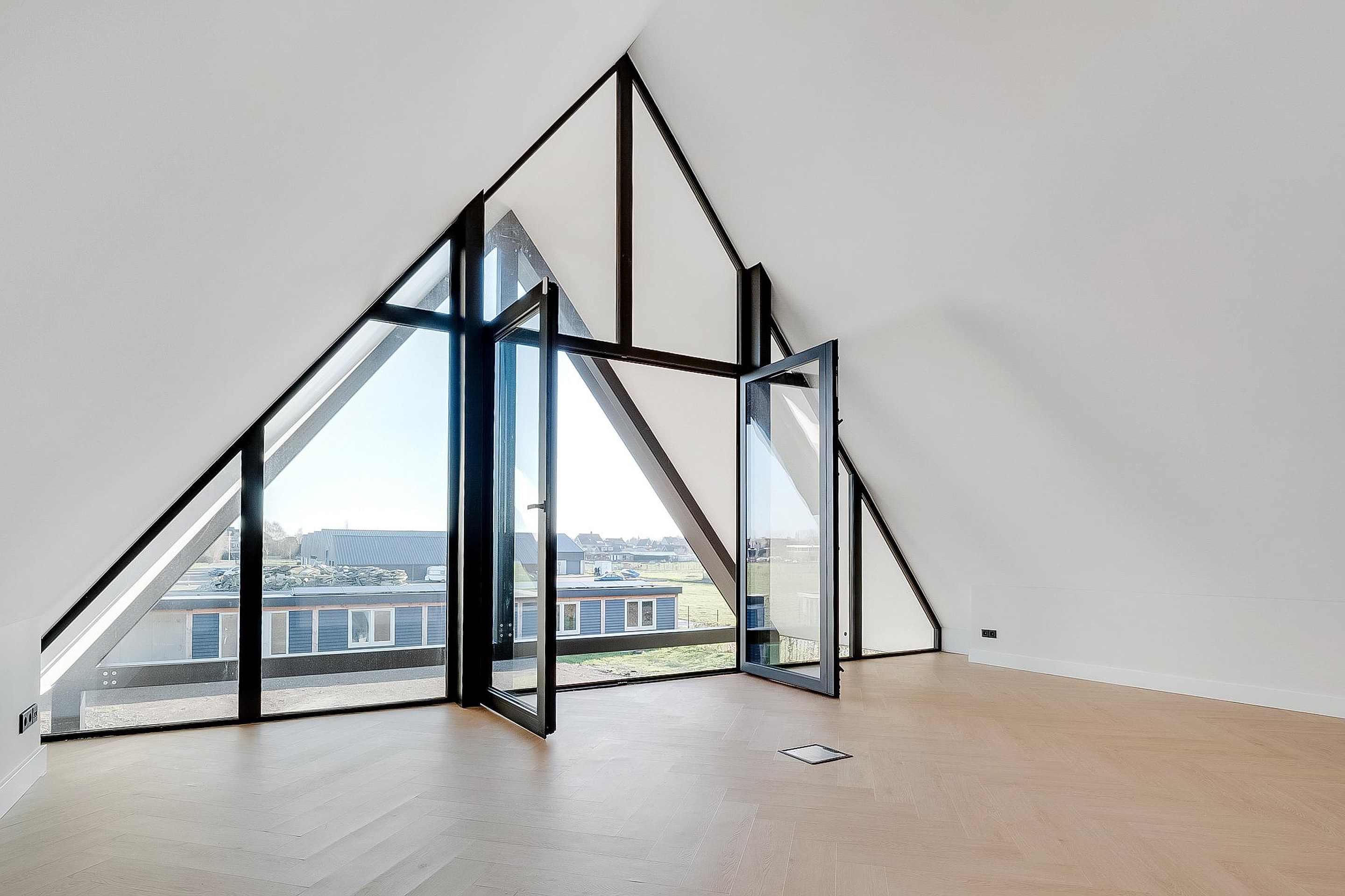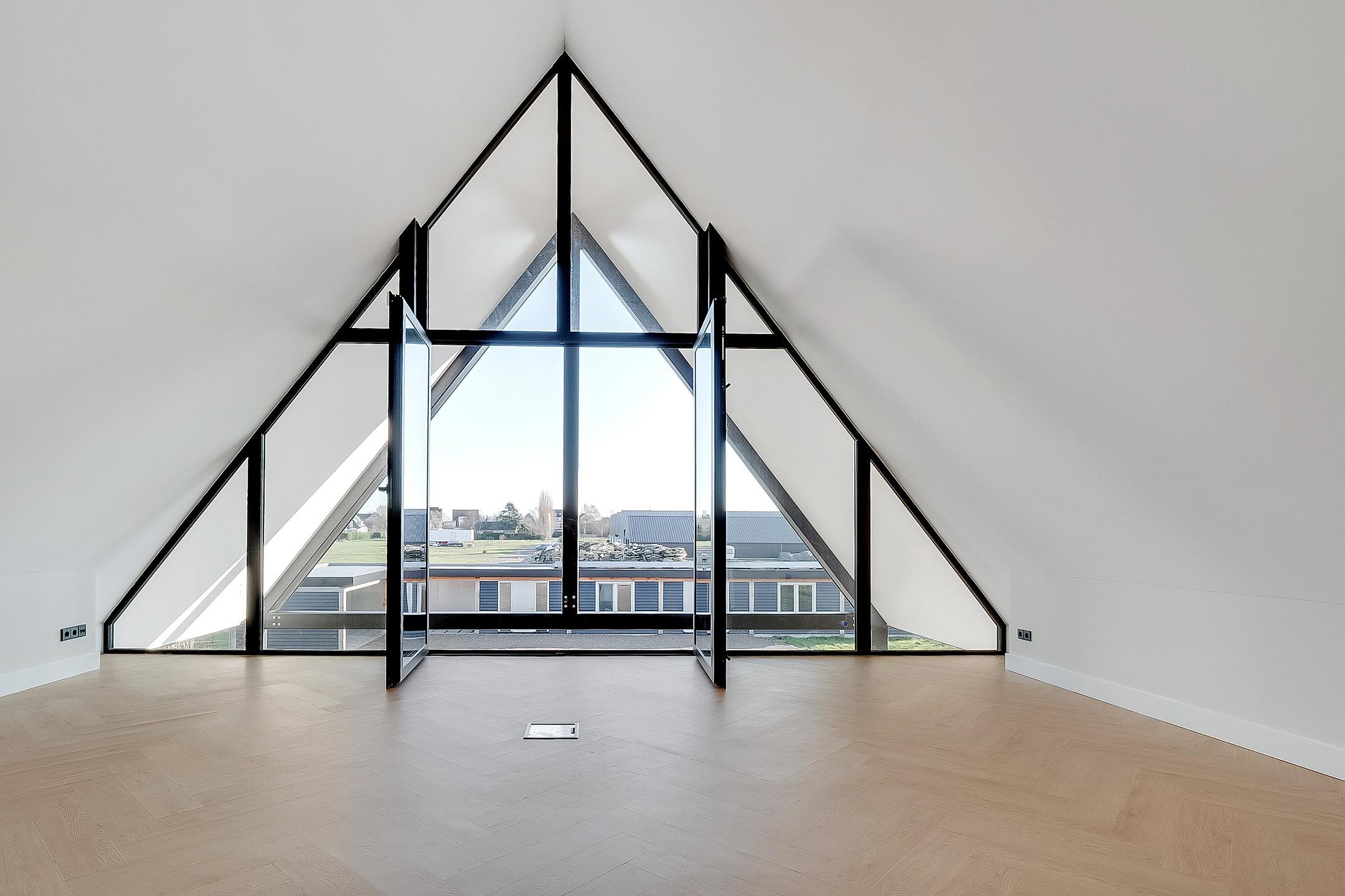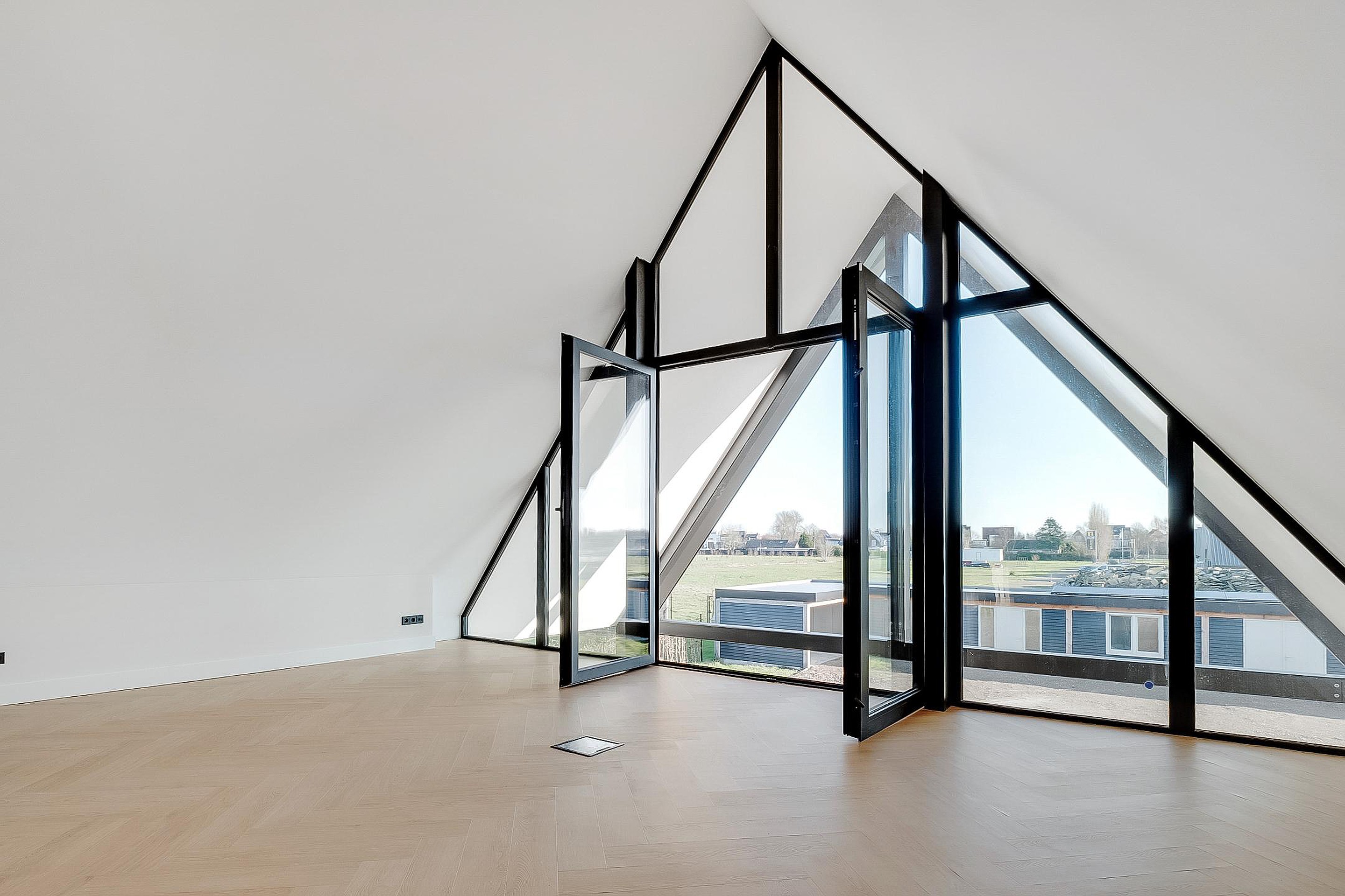 Aan de achterzijde een tweede grote slaapkamer waaruit een prachtig uitzicht over de omgeving. Verder een deur met trap naar de bergzolder.