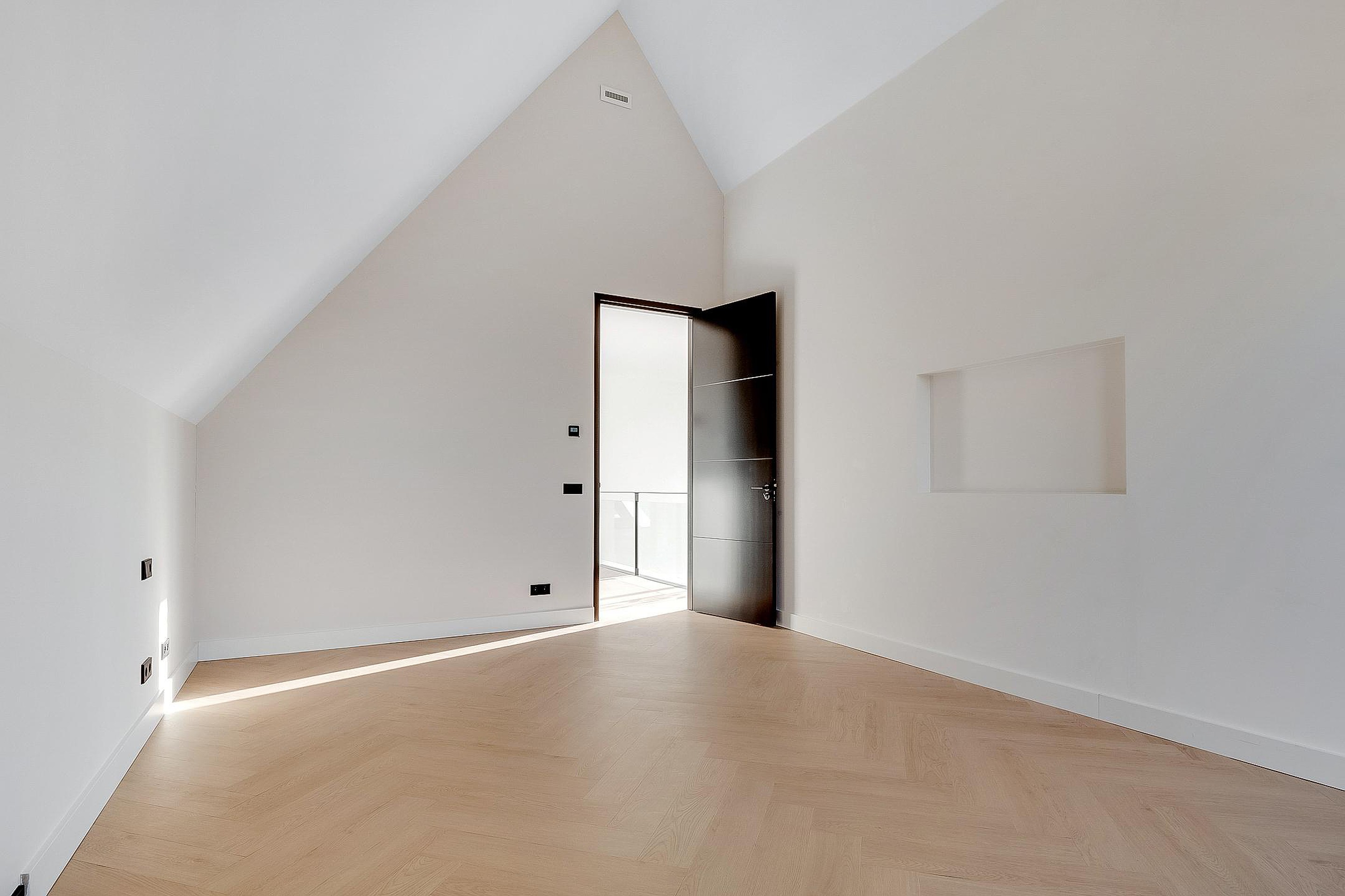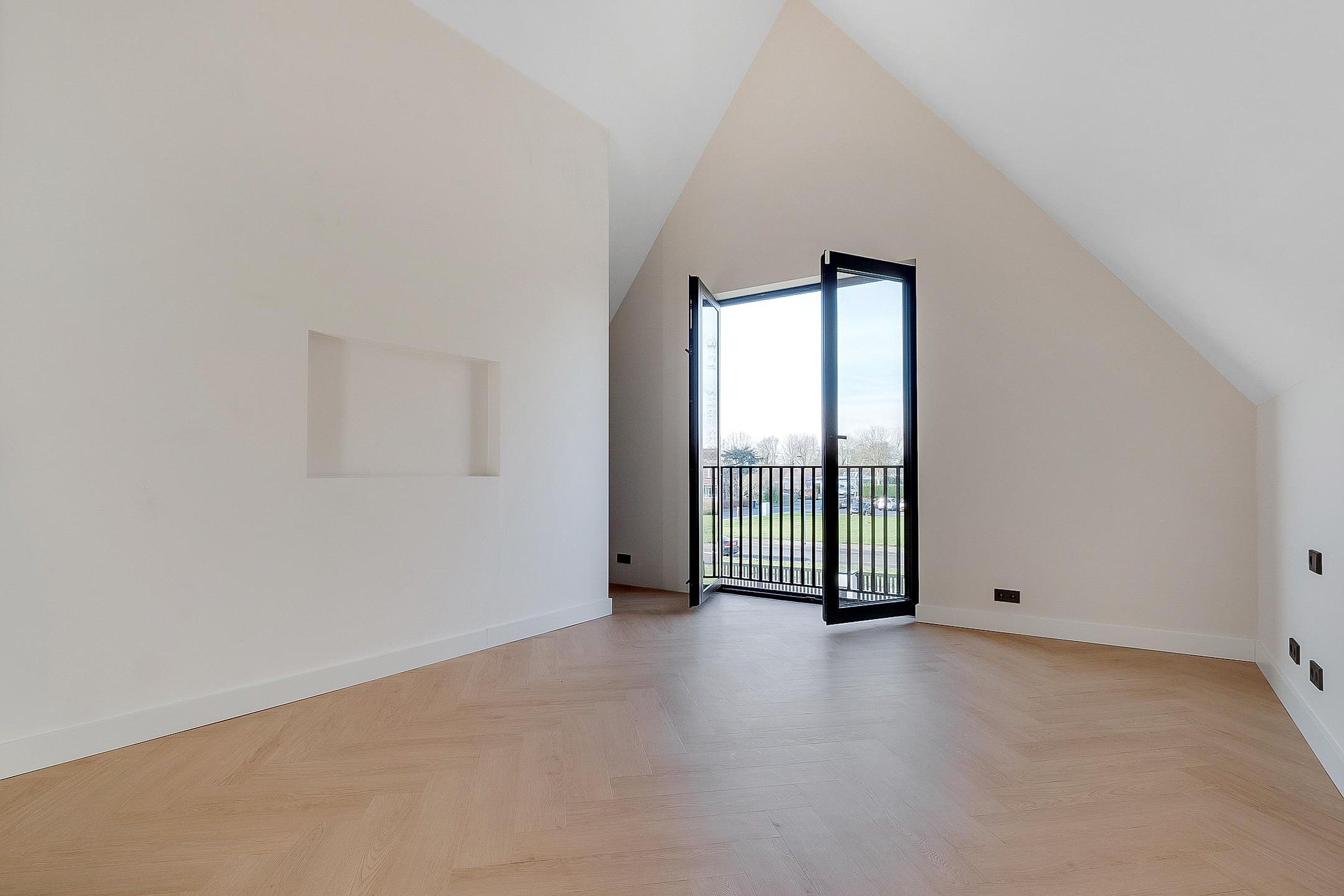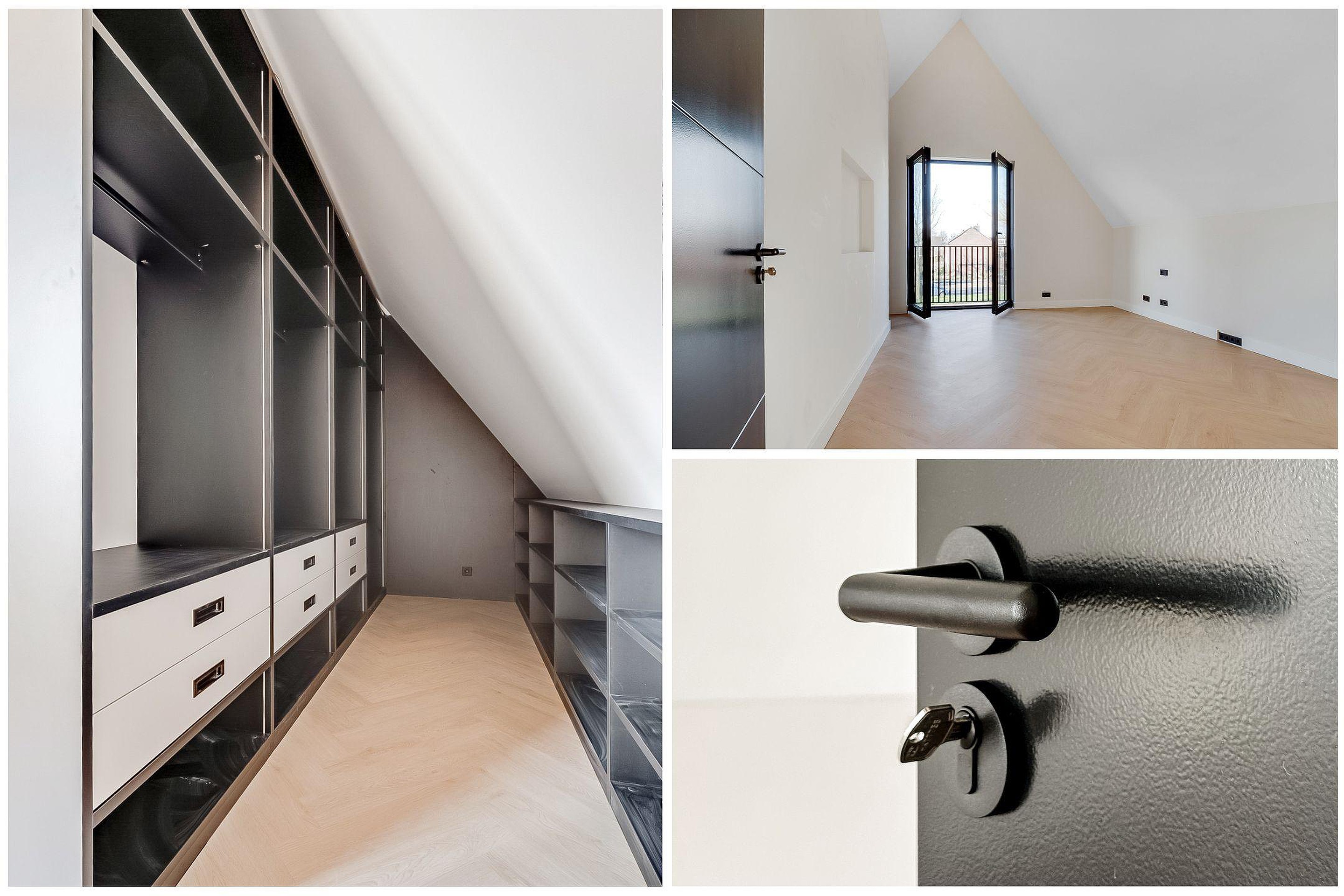Aan de voorzijde een grote slaapkamer met separate inloopkast en op maat gemaakte kastinrichting.