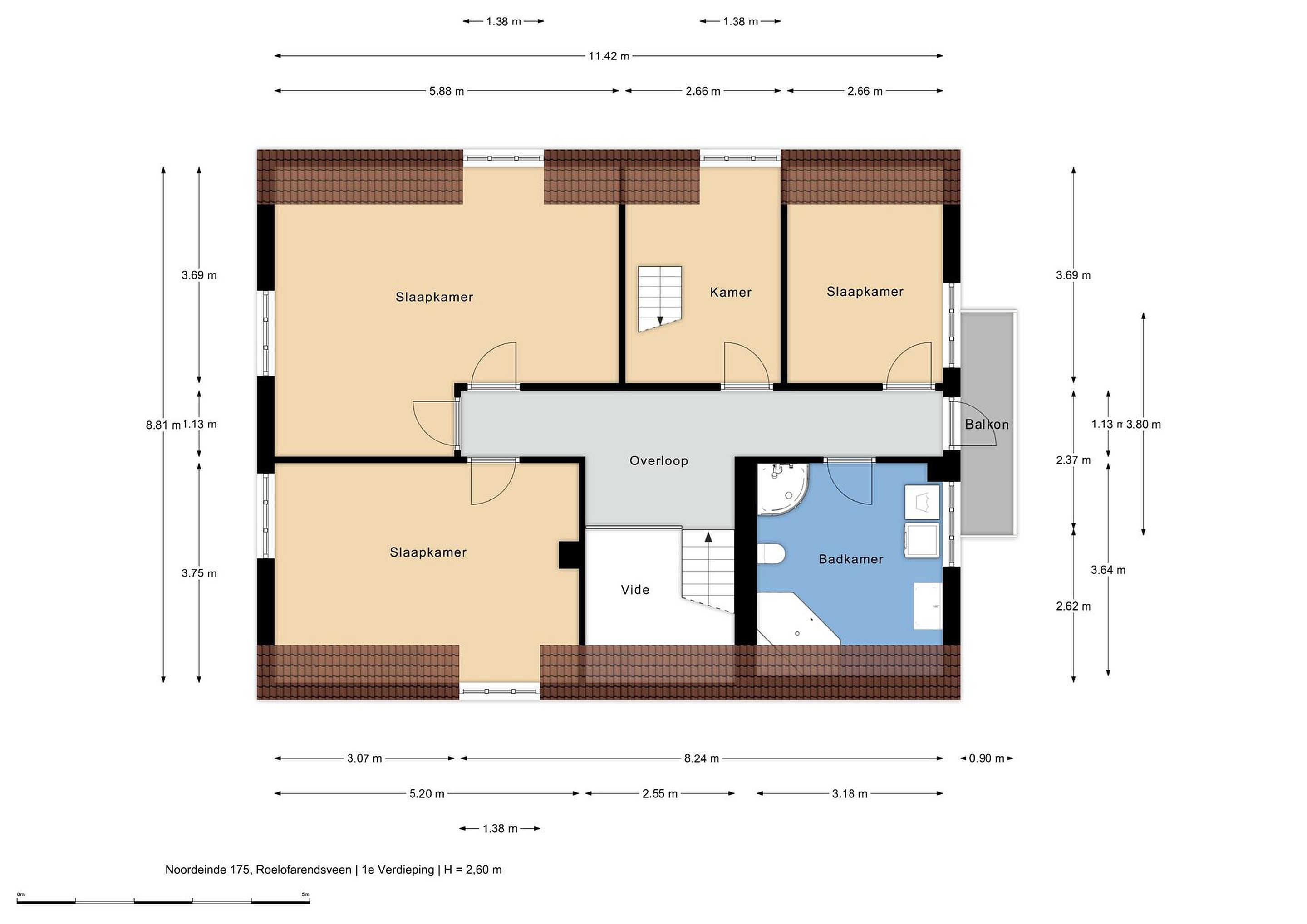 Eerste verdieping De ruime overloop met vide biedt toegang tot twee zeer royale slaapkamers aan de voorzijde van de woning, het balkon en de vierde slaapkamer aan de achterzijde.