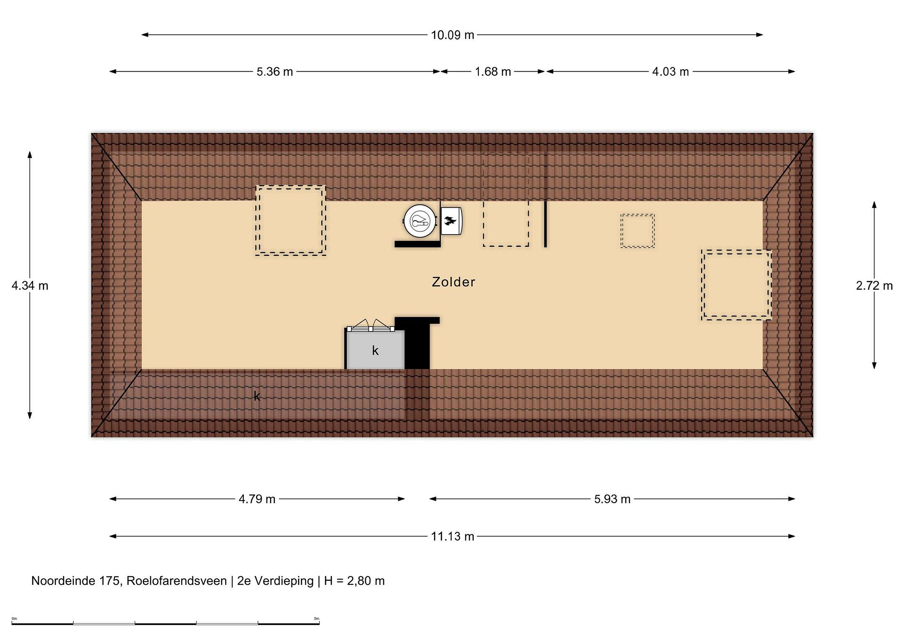 Tweede verdieping Via een vaste trap te bereiken grote zolderruimte met een goede stahoogte (2,80 m) en de mogelijkheid om twee ruime slaapkamers te creëren, voorzien van een Velux-dakraam.
