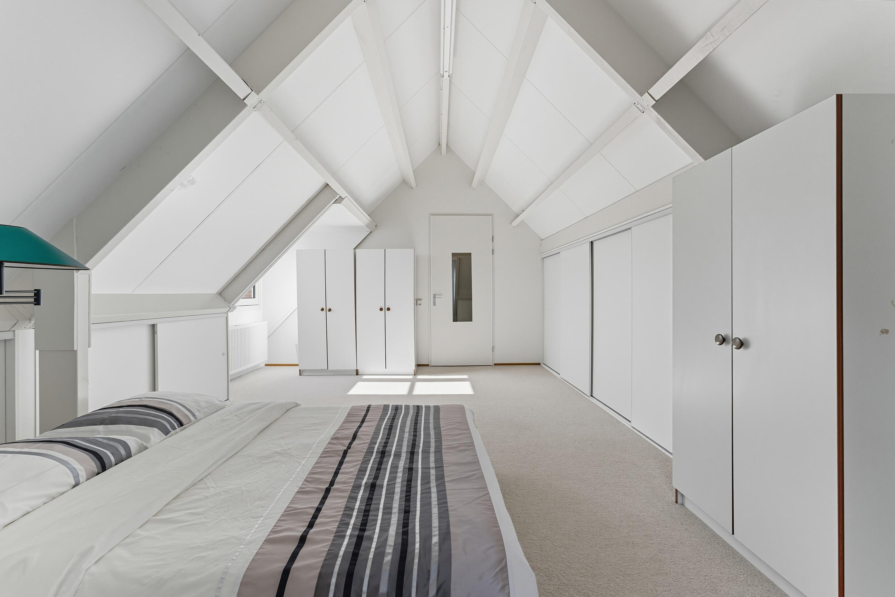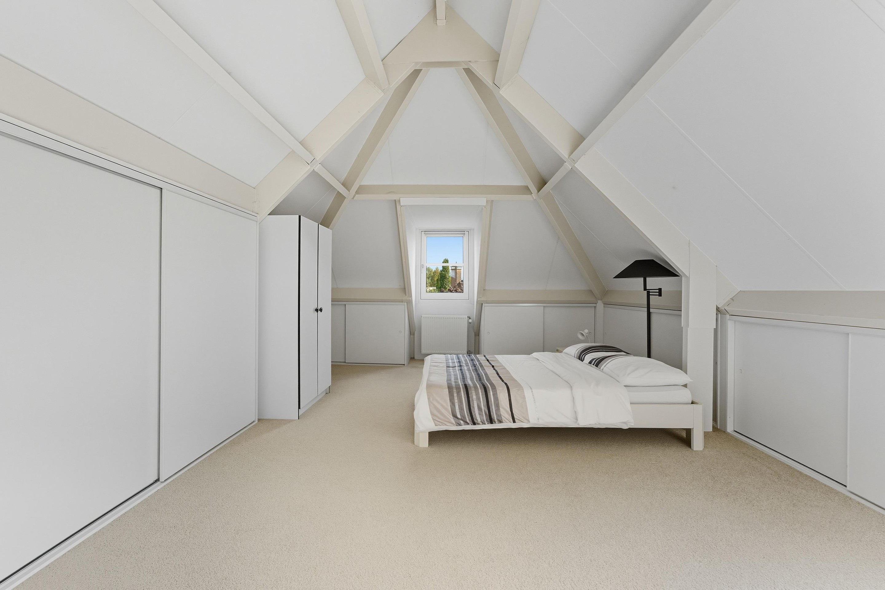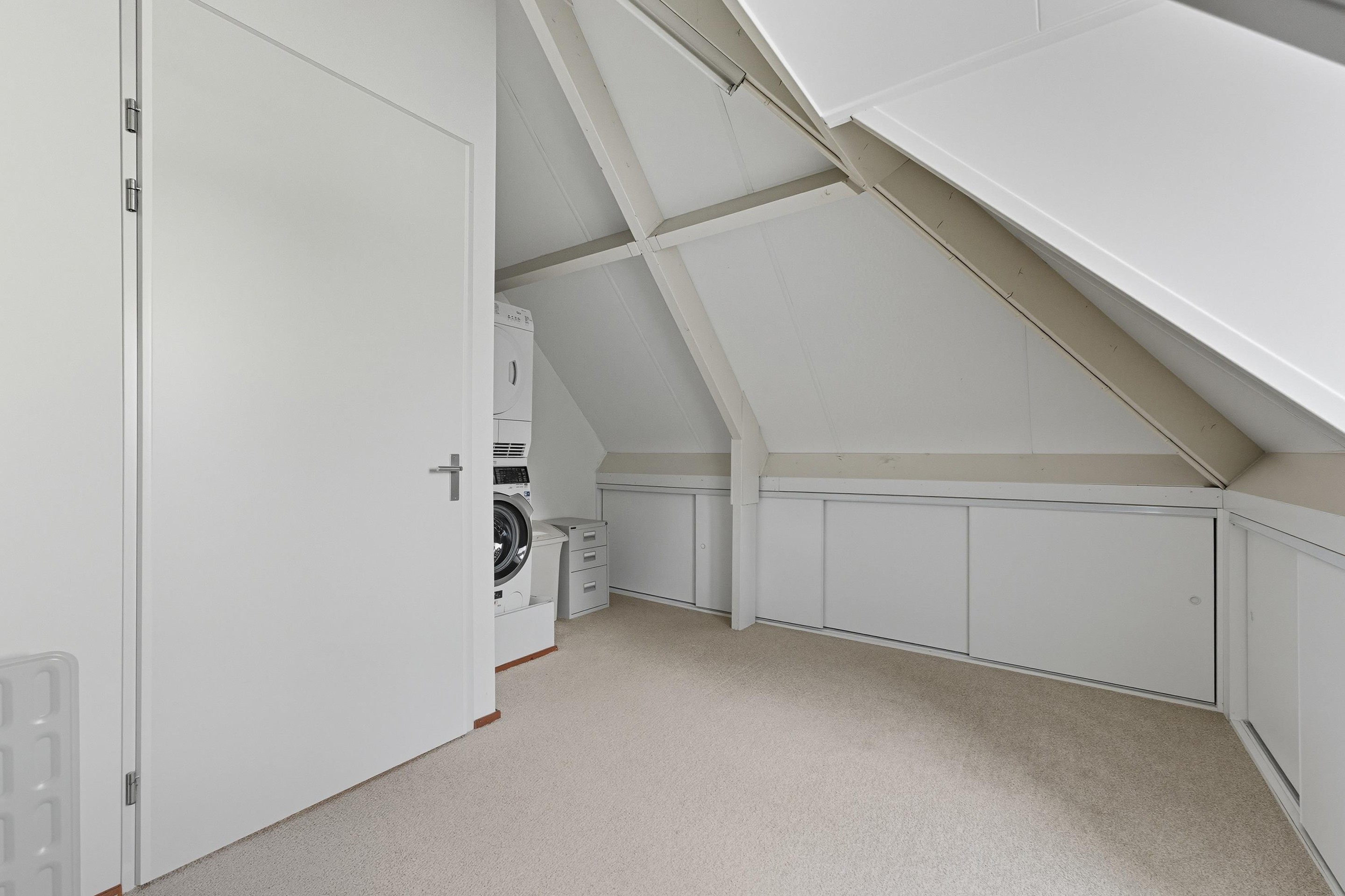 Hier bevinden zich nog twee ruime slaapkamers met dakramen en veel bergruimte. Deze kamers zijn ideaal als logeerkamer, werkruimte of hobbykamer. In één van deze kamers is er ruimte voor de opstelplaats voor de wasmachine en droger.