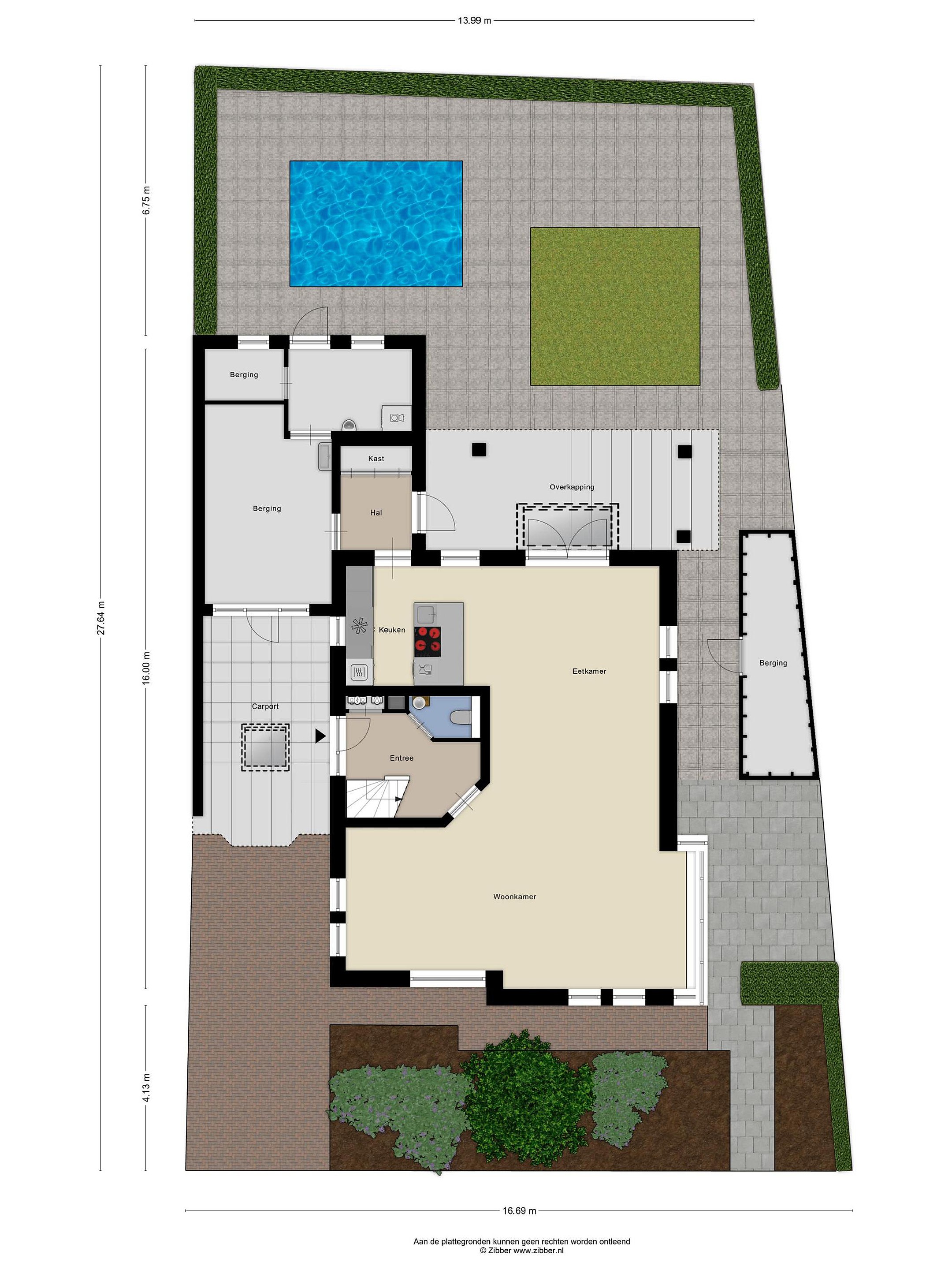 - Fraai aangelegde tuin met overkapping, vrije achterom en zwembad (4m x 3m).