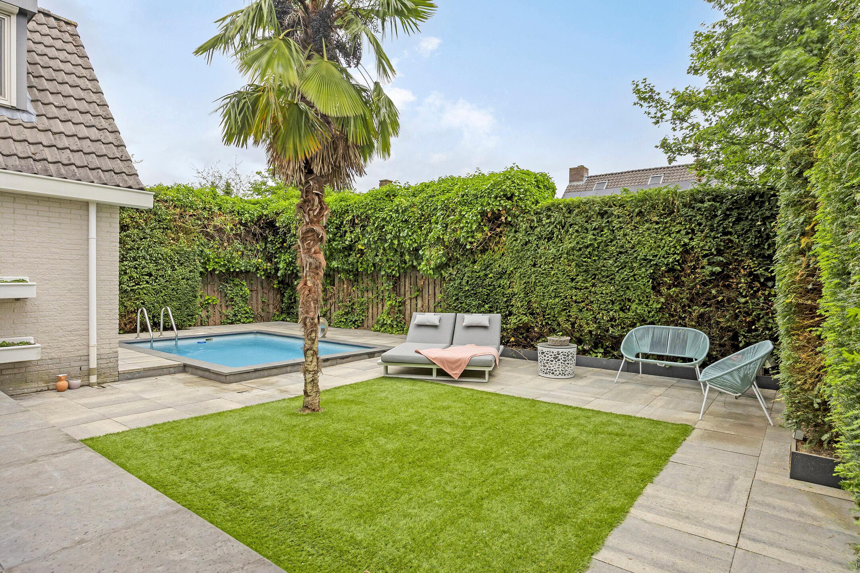 De achtertuin is een fijne, besloten plek om tot rust te komen. De tuin ligt op het oosten en beschikt over een overdekt terras, vrije achterom en als blikvanger: een professioneel aangelegde zwembad. Dé plek om te ontspannen en te genieten op warme dagen.