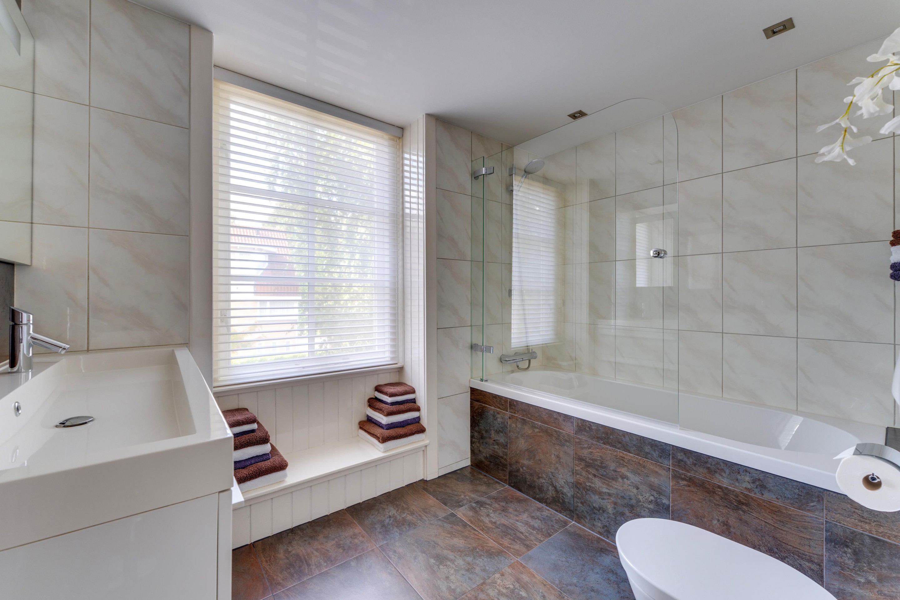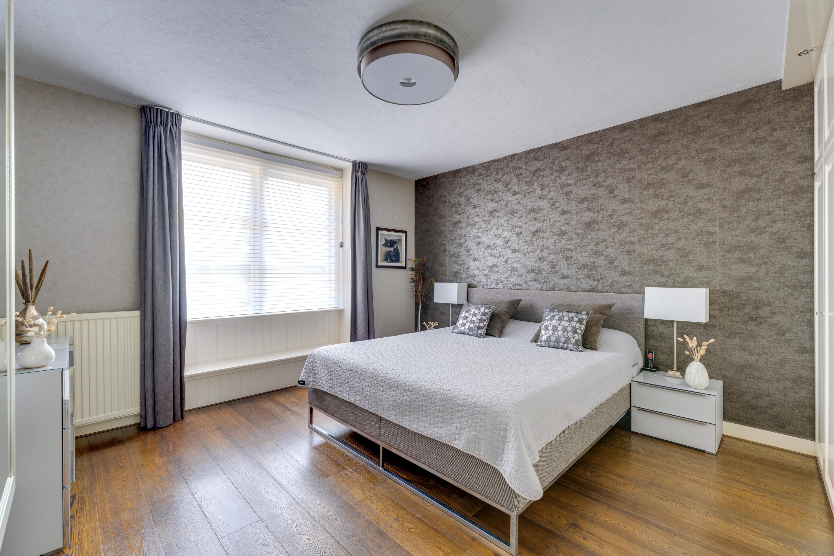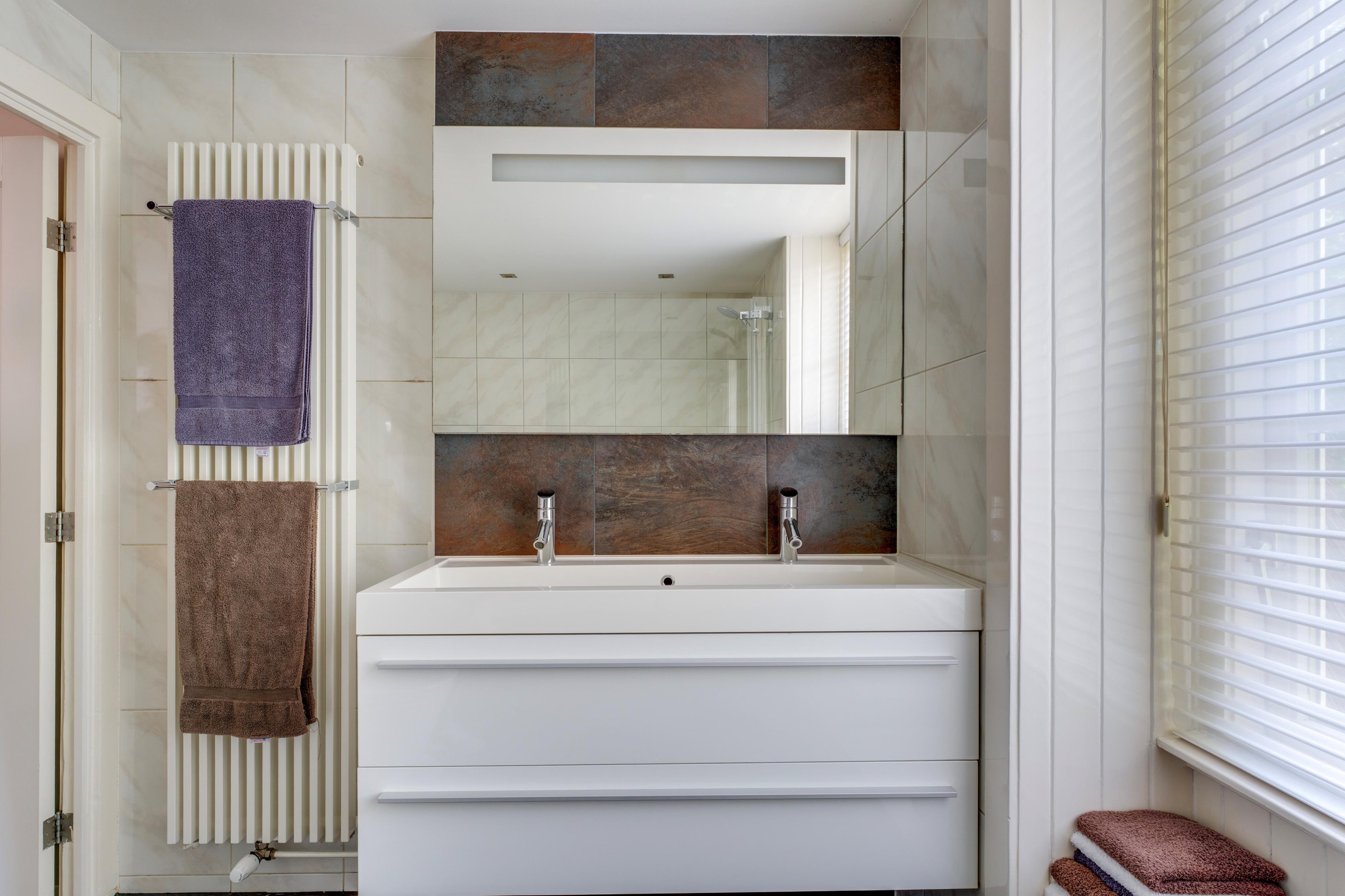 Eerste verdieping De eerste verdieping biedt naast drie comfortabele slaapkamers ook slimme, praktische voorzieningen. Op de overloop is een handige wasruimte gecreëerd, met plek voor zowel wasmachine als droger. Dankzij de afvoer uit de voormalige doucheruimte is het gebruik niet alleen praktisch, maar ook veilig: overtollig water kan direct weg. De master bedroom is licht en ruim opgezet, met meer dan genoeg plek voor een groot bed en een vaste royale kledingkast. De tweede slaapkamer beschikt over een vaste kast en is uitermate geschikt als kinderkamer of werkruimte. Ook de derde kamer is verrassend ruim en voelt door de prettige lichtinval bijzonder aangenaam aan – perfect als logeerkamer of extra slaapvertrek. De badkamer is comfortabel ingericht, met een ligbad, een dubbele wastafel met modern meubel, een toilet en designradiator. De vloerverwarming en verwarmde spiegel zorgen bovendien voor een extra vleugje luxe, juist op de momenten dat het ertoe doet.