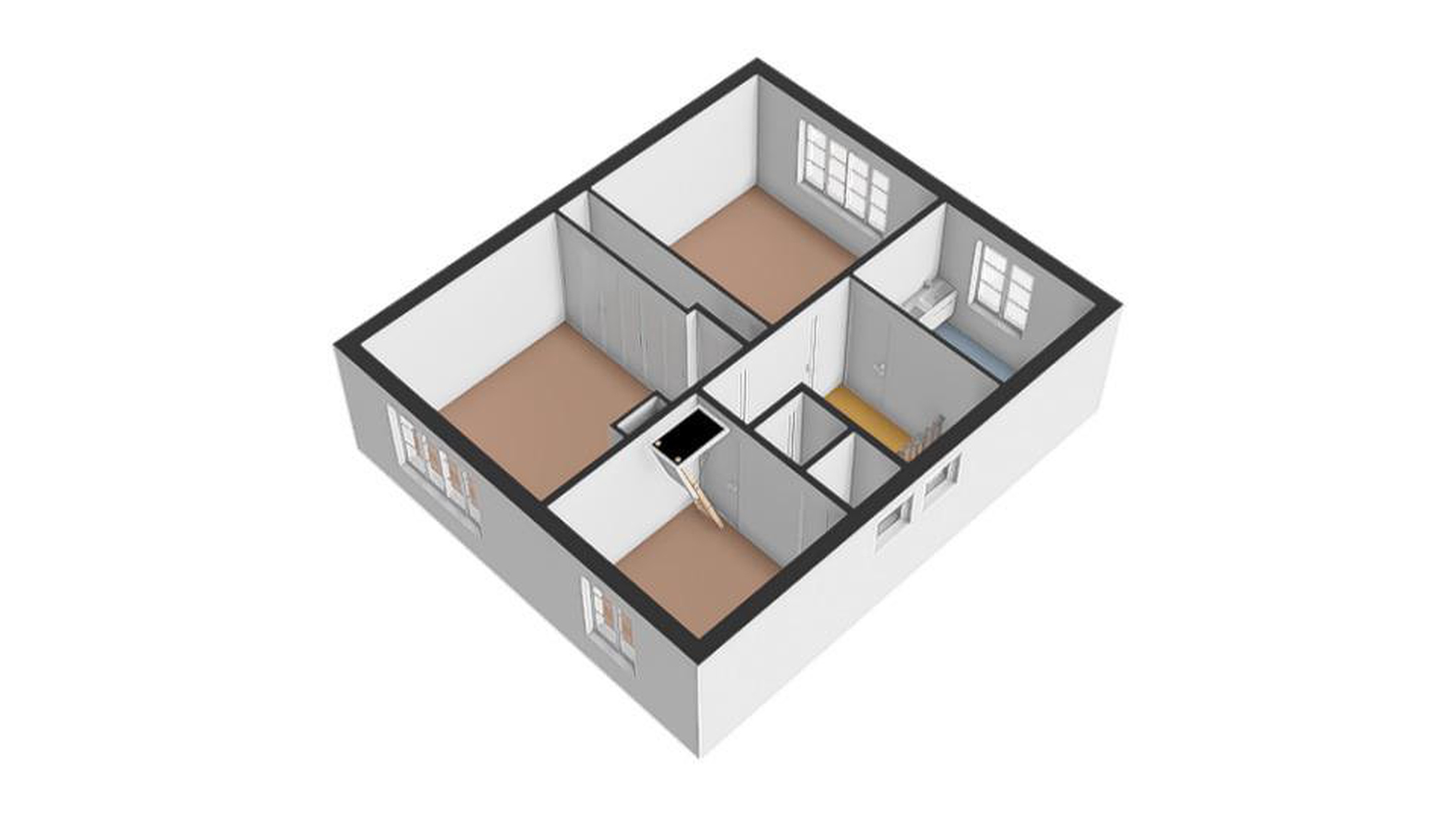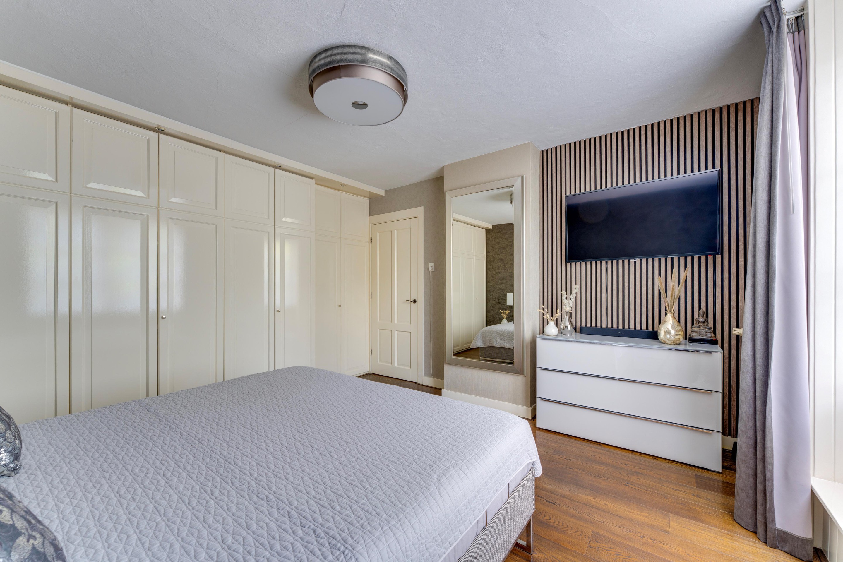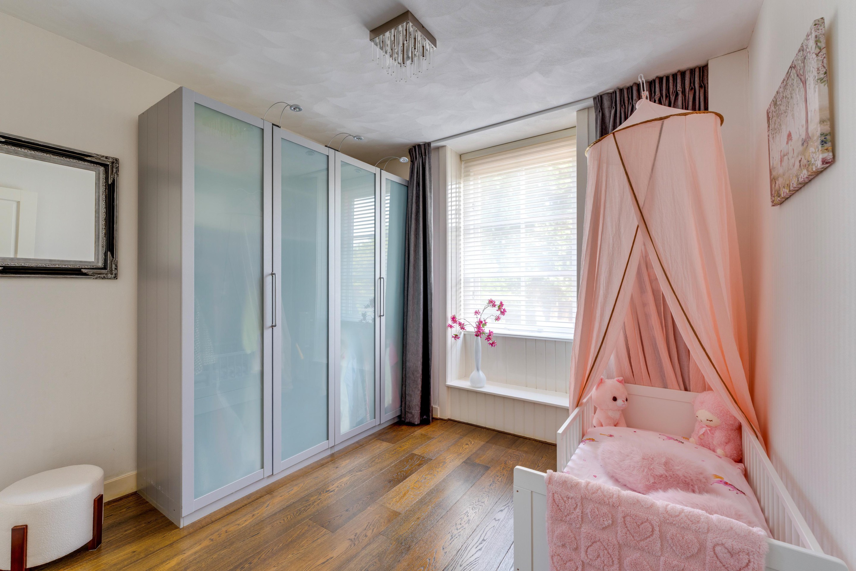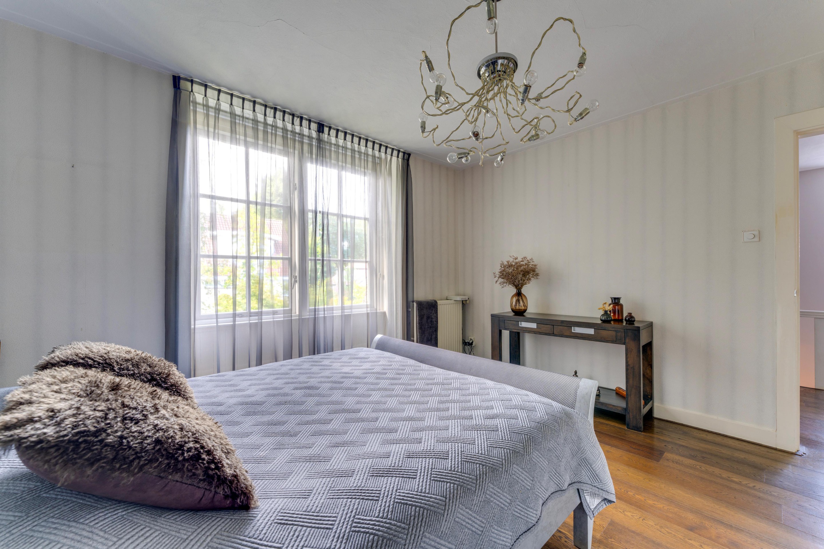 Eerste verdieping De eerste verdieping biedt naast drie comfortabele slaapkamers ook slimme, praktische voorzieningen. Op de overloop is een handige wasruimte gecreëerd, met plek voor zowel wasmachine als droger. Dankzij de afvoer uit de voormalige doucheruimte is het gebruik niet alleen praktisch, maar ook veilig: overtollig water kan direct weg. De master bedroom is licht en ruim opgezet, met meer dan genoeg plek voor een groot bed en een vaste royale kledingkast. De tweede slaapkamer beschikt over een vaste kast en is uitermate geschikt als kinderkamer of werkruimte. Ook de derde kamer is verrassend ruim en voelt door de prettige lichtinval bijzonder aangenaam aan – perfect als logeerkamer of extra slaapvertrek. De badkamer is comfortabel ingericht, met een ligbad, een dubbele wastafel met modern meubel, een toilet en designradiator. De vloerverwarming en verwarmde spiegel zorgen bovendien voor een extra vleugje luxe, juist op de momenten dat het ertoe doet.