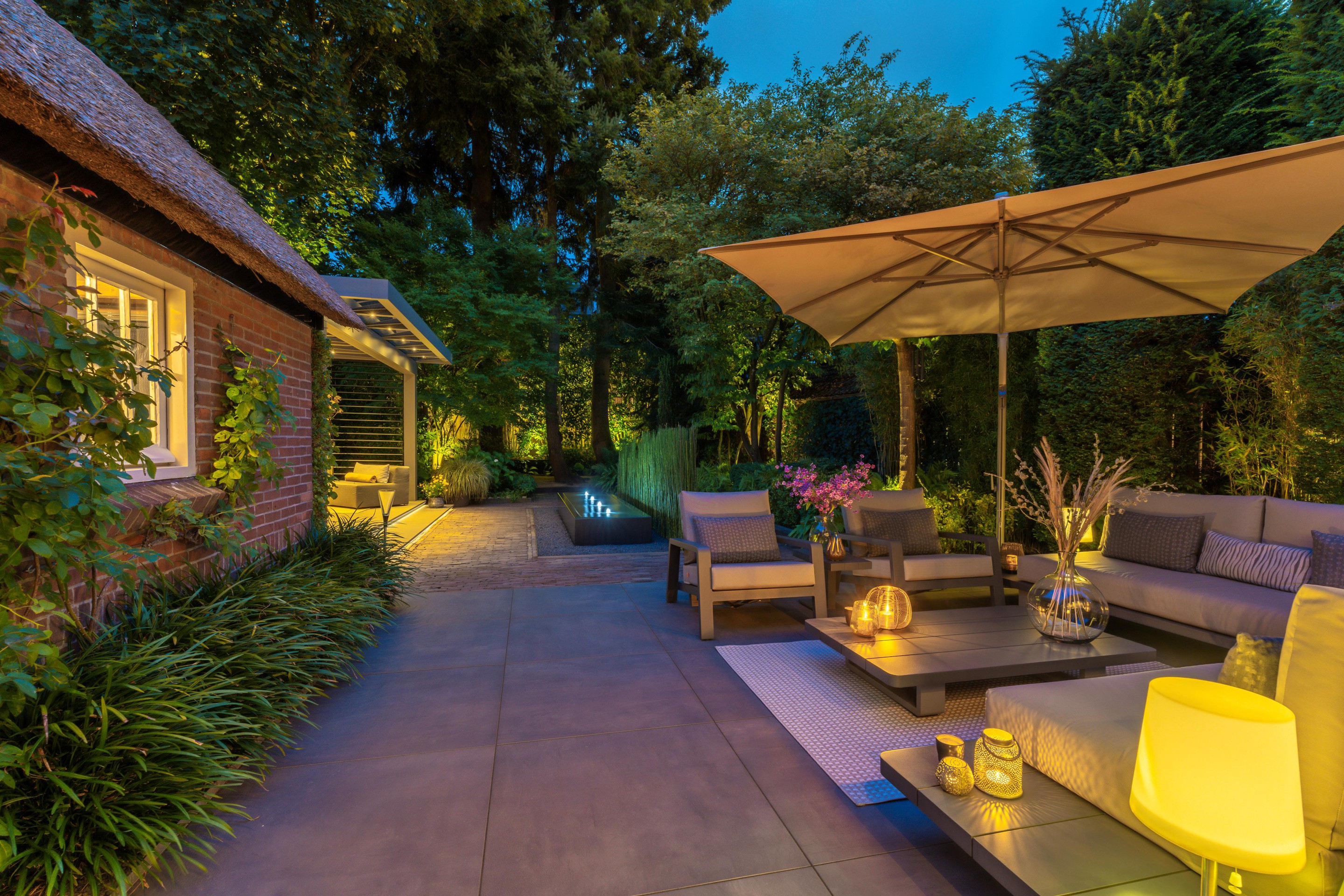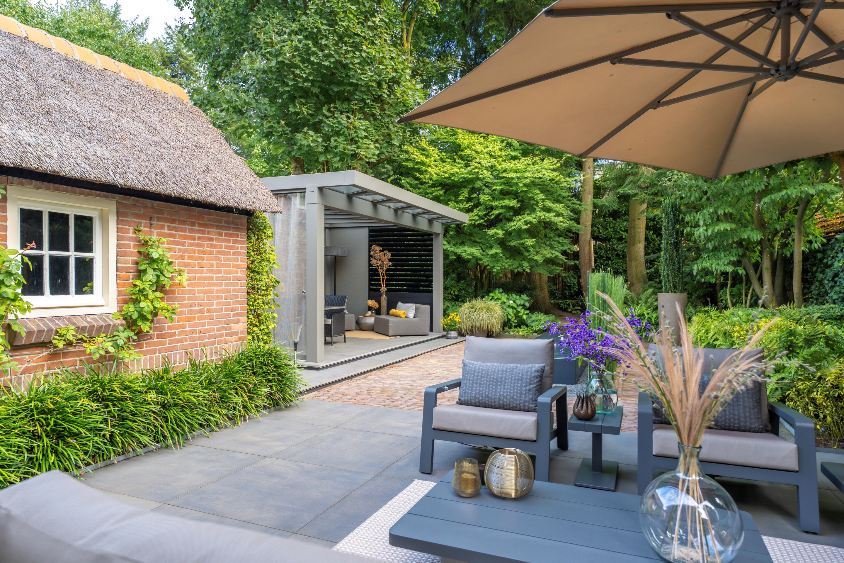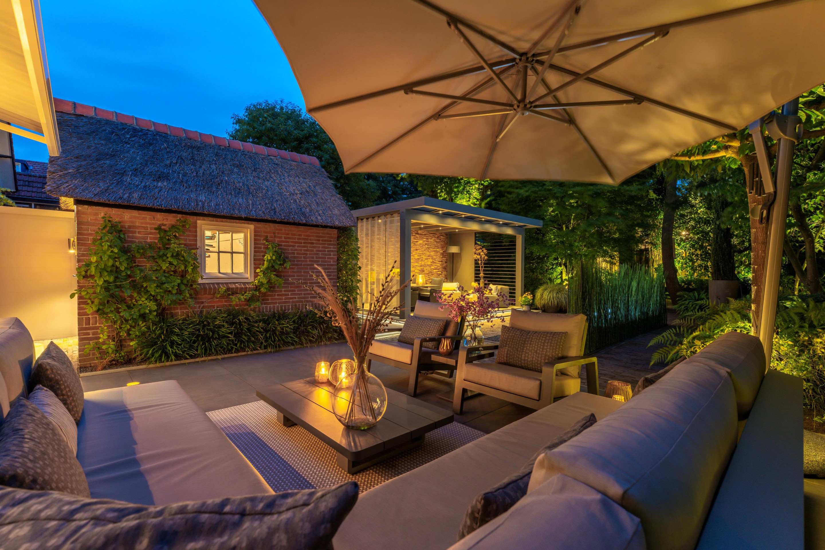 De afwerking is tot in detail doordacht. Zo zorgt de sfeervolle ledverlichting – verwerkt in de overkapping, de buitenkeuken en onder de treden – voor precies de juiste ambiance, volledig dimbaar en eenvoudig te bedienen met afstandsbedieningen. De regenwaterafvoer is slim aangesloten op twee grote infiltratiekratten, waardoor wateroverlast bij hevige regenval wordt voorkomen. Daarnaast is er een praktische berging met vliering – ideaal voor fietsen, tuingereedschap en extra opslag. De overkappingen, poort, schutting en kliko-ombouw zijn geleverd door Kooloos uit Bunschoten. De buitenkeuken is geleverd door De Kolencentrale. Vakmanschap en kwaliteit die deze tuin een uitzonderlijk karakter geven.