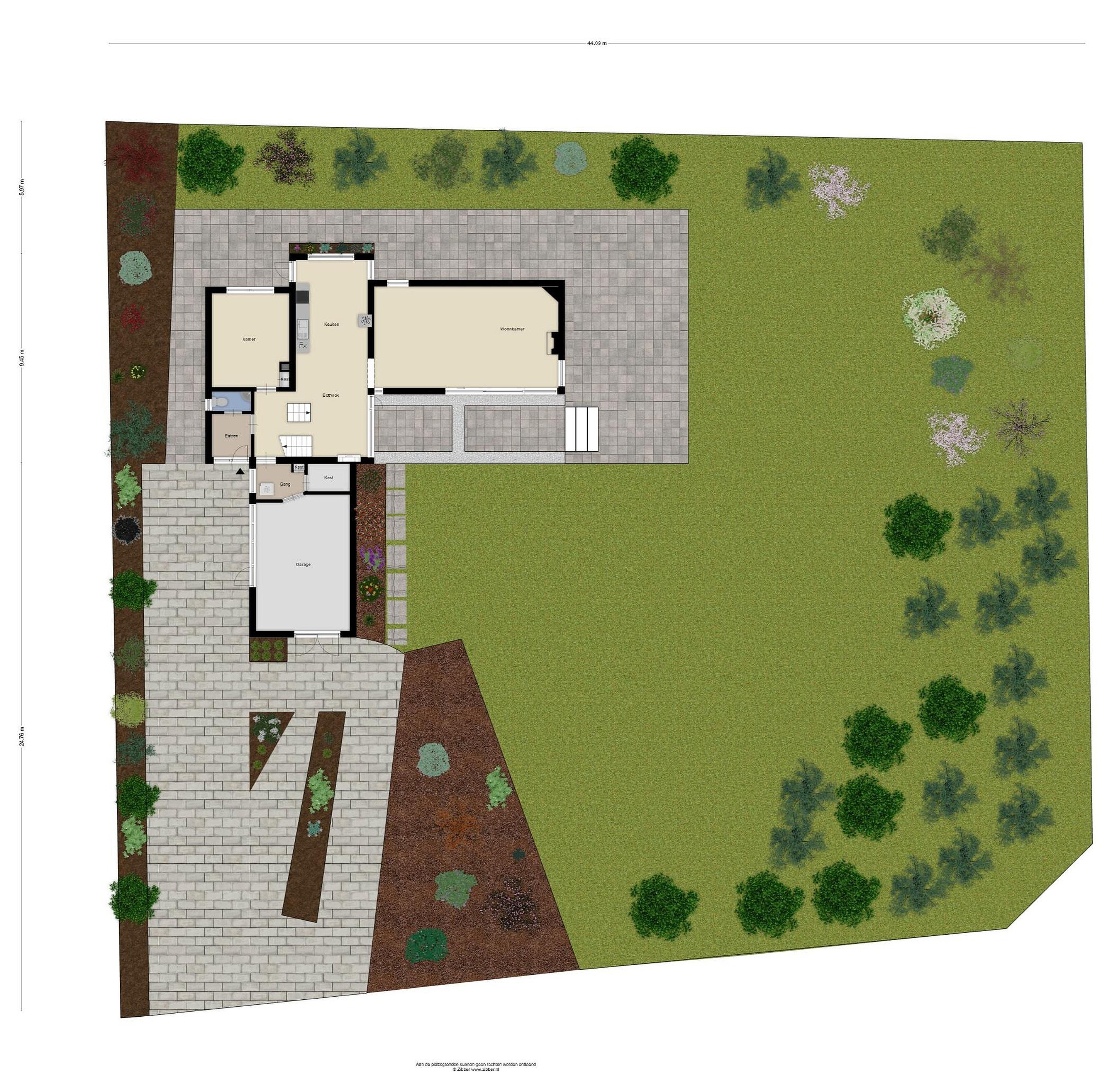 Rondom een mooie groene tuin en een lange oprit die het royale karakter van het perceel van maar liefst 1.701 m2 onderstreept.