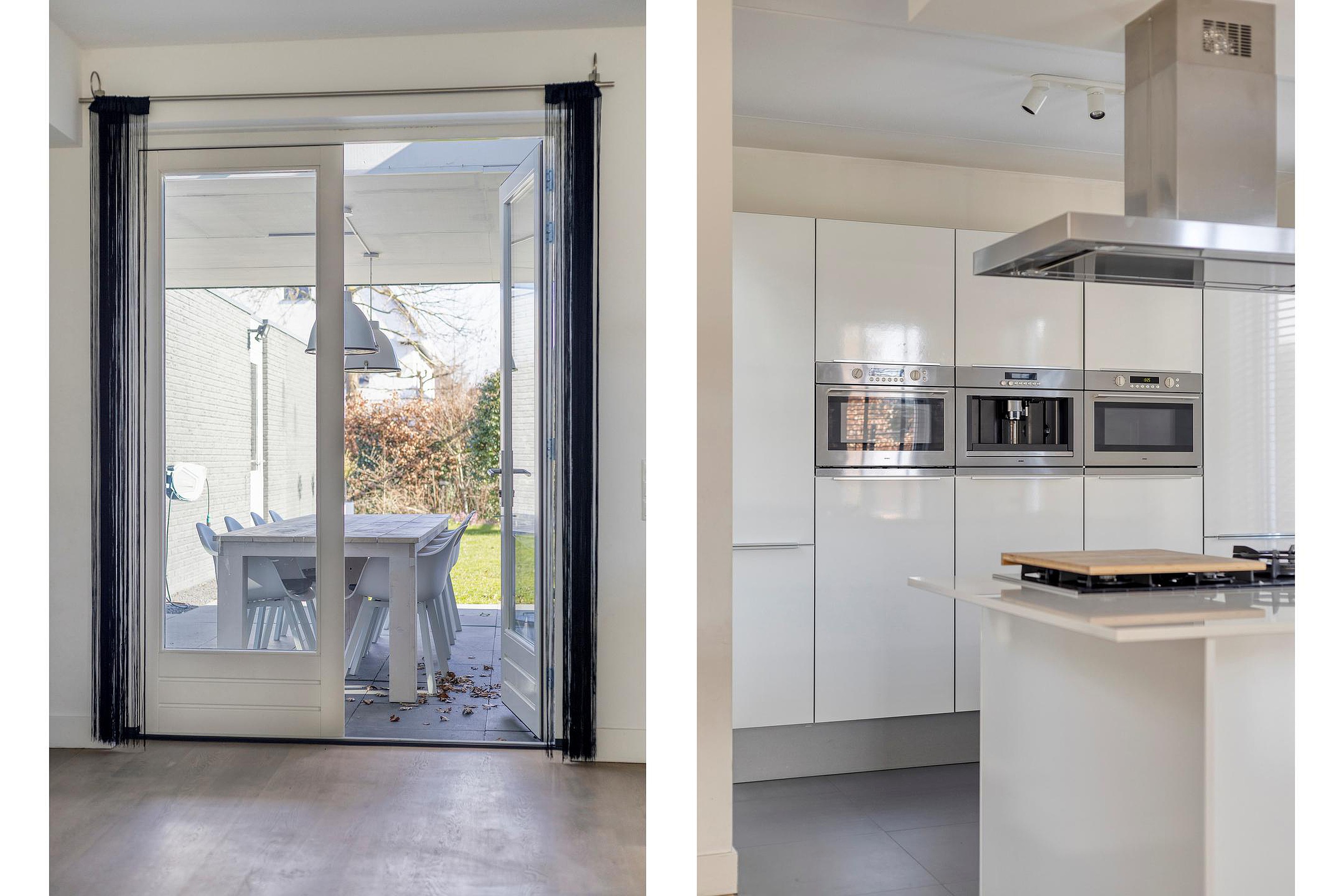 Aan de achterzijde bevindt zich de moderne keuken met een wandopstelling en een royaal kook-/spoeleiland. De keuken beschikt over volop kastruimte en is uitgerust met diverse inbouwapparatuur, waaronder een 5-pits gaskookplaat, afzuigkap, Quooker, vaatwasser, oven, magnetron, koffieapparaat en een grote koelkast. Een heerlijke plek!