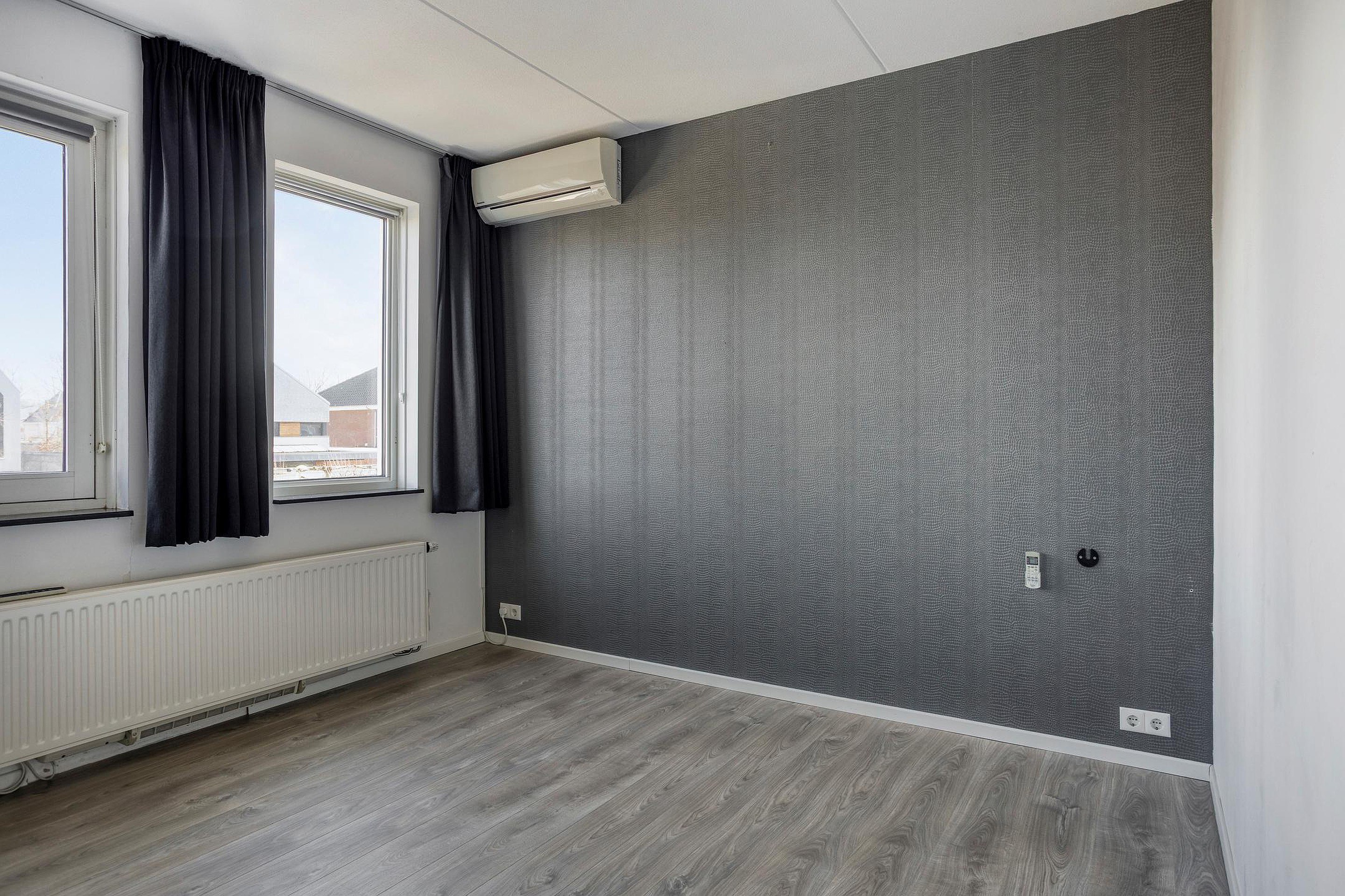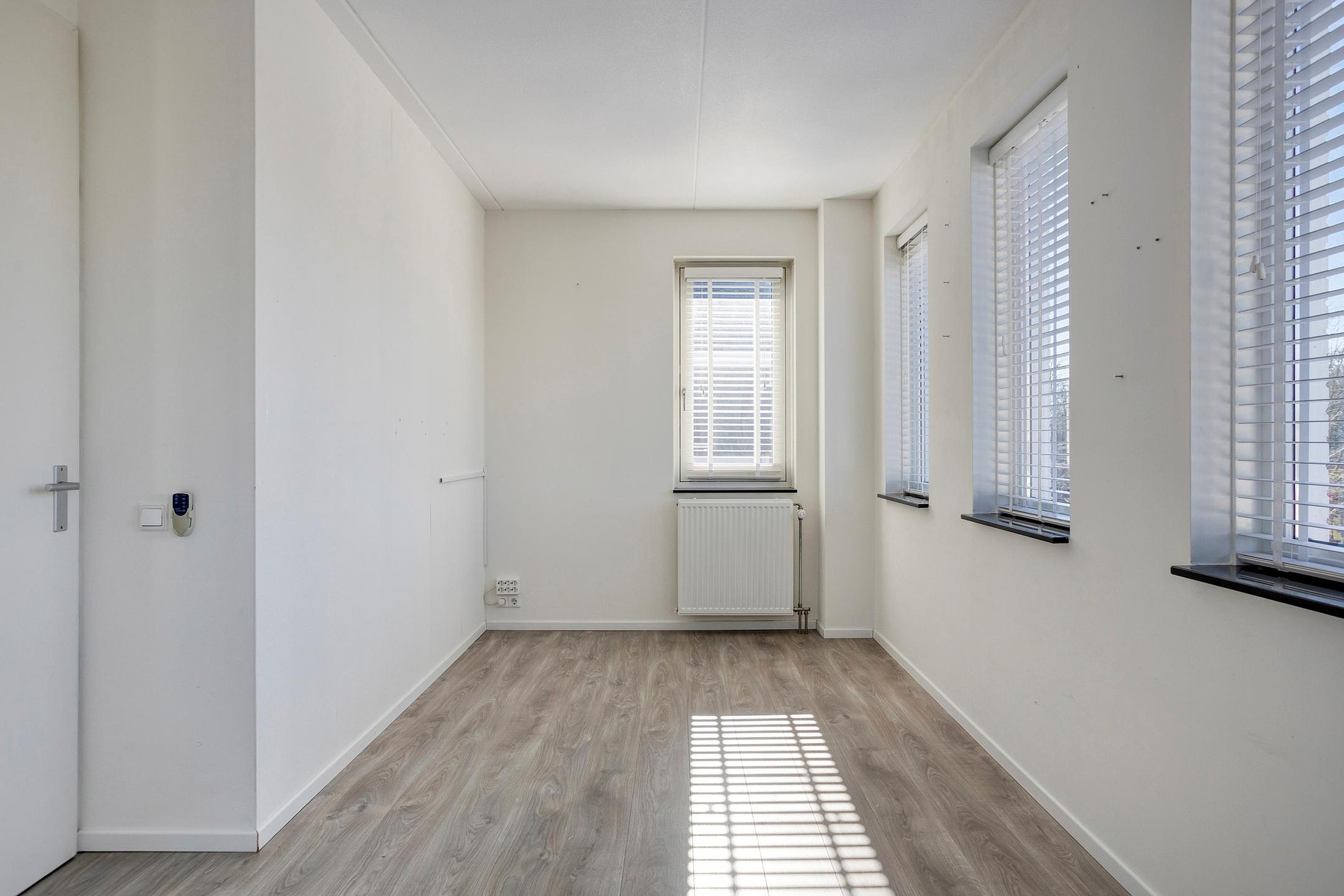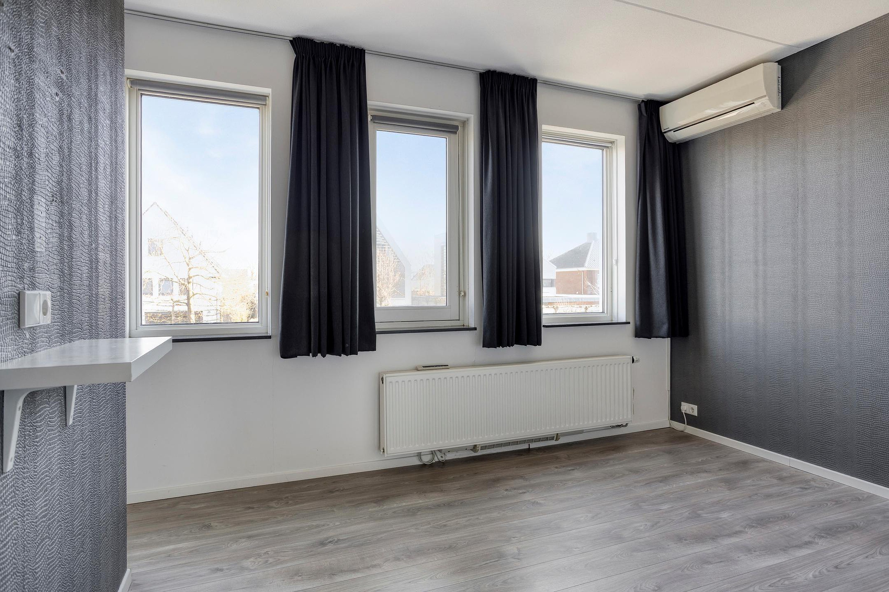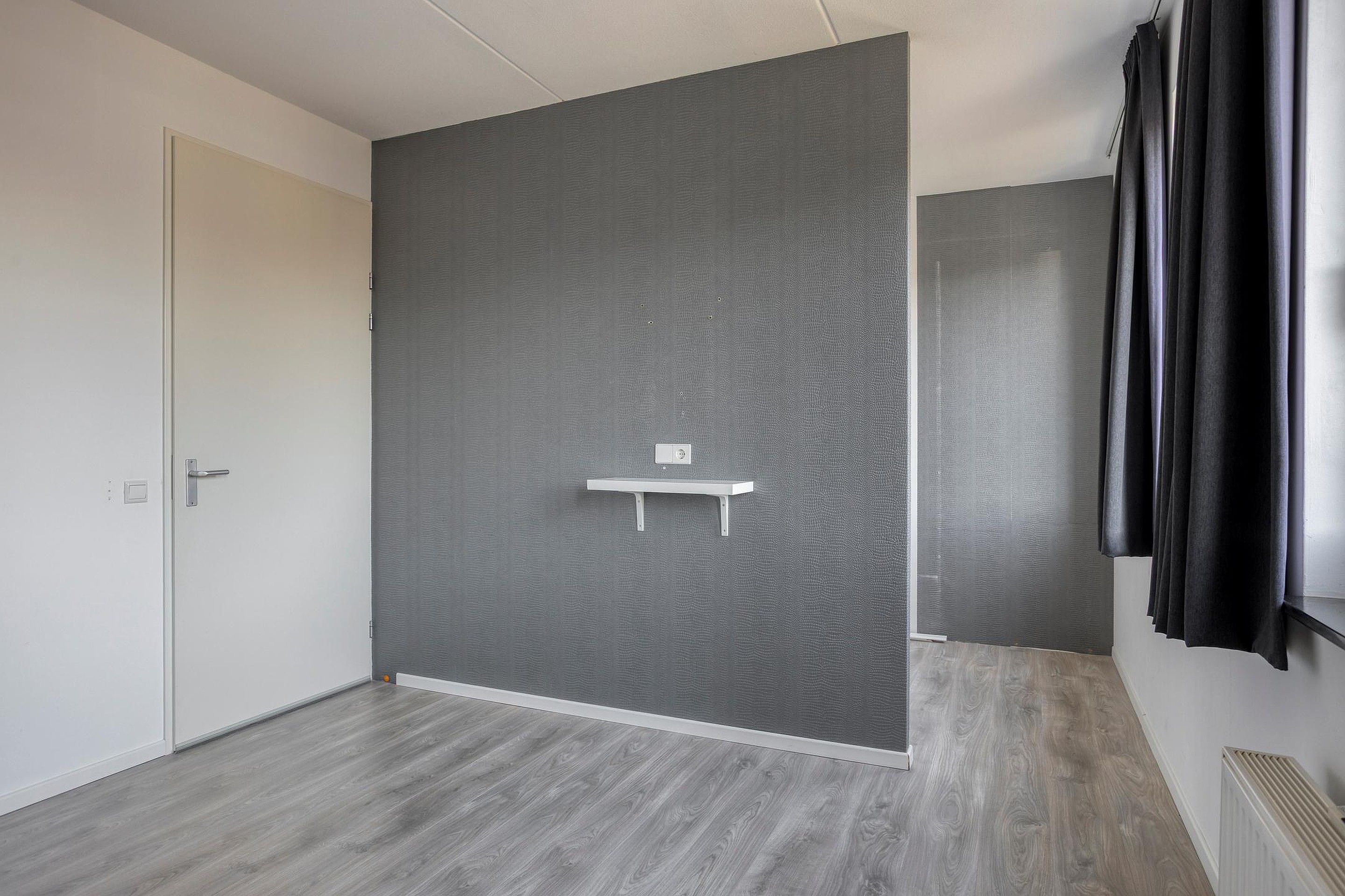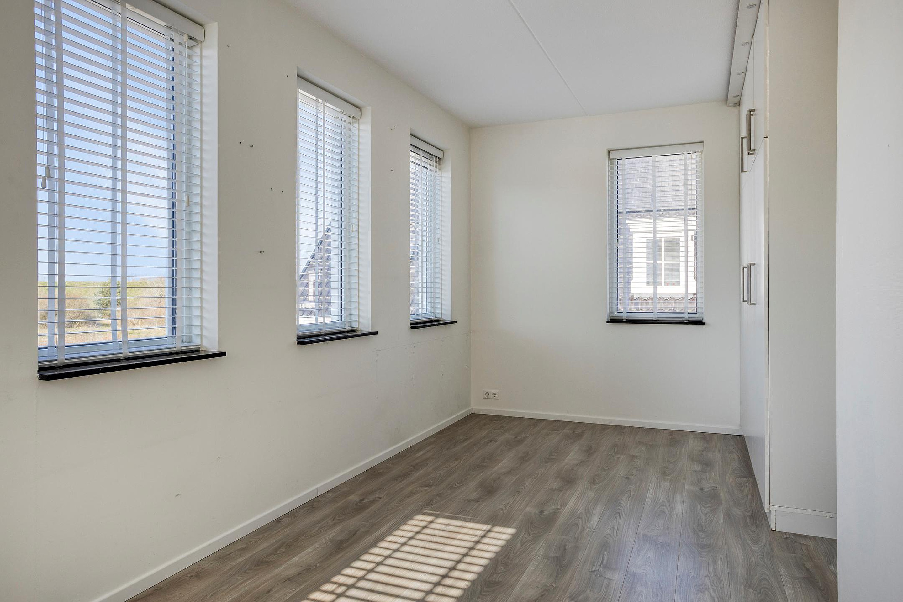 Aan de voorzijde bevindt zich de tweede ruime slaapkamer, eveneens voorzien van laminaatvloer, stuc- en behangwanden en grote raampartijen.