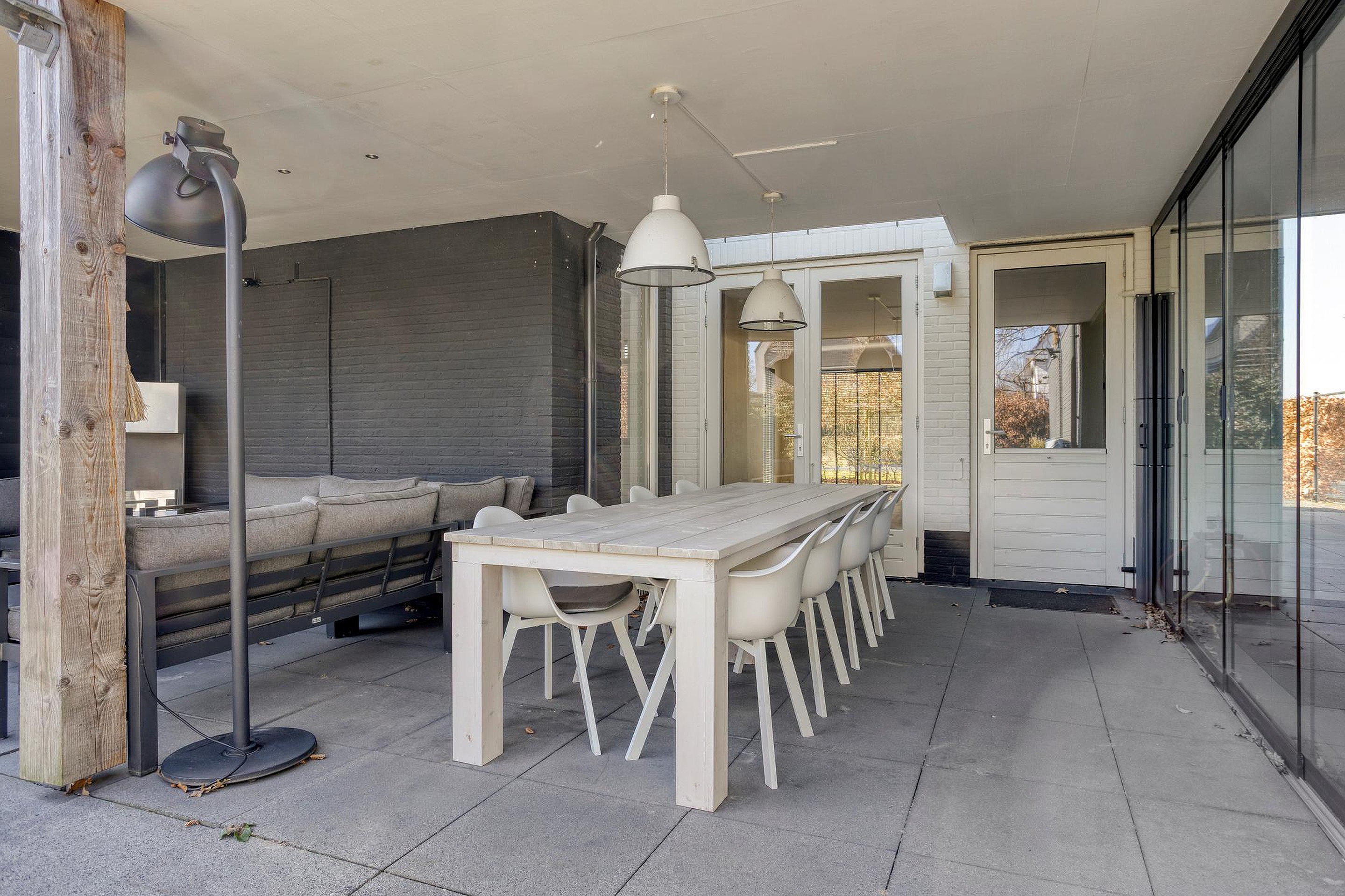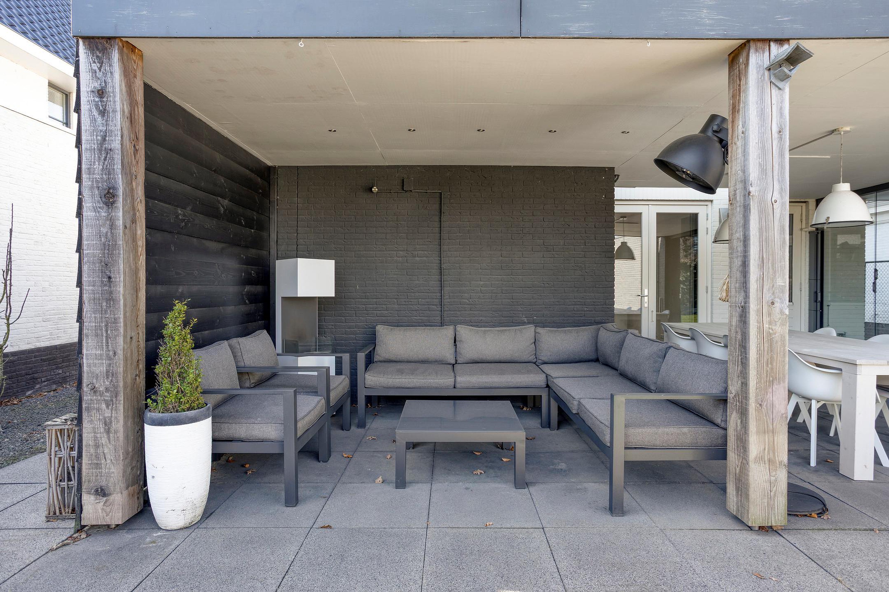 Tuin De achtertuin is keurig aangelegd, gesitueerd op het oosten en biedt volop privacy. Er zijn 3 terrassen waarvan 1 groot overdekt terras aan huis. Het overdekte terras is afsluitbaar (aan de zijde van de oprit) met glazen schuifpanelen, voorzien van inbouwspotjes en een lichtstraat, waardoor het hier het hele jaar door comfortabel verblijven is.