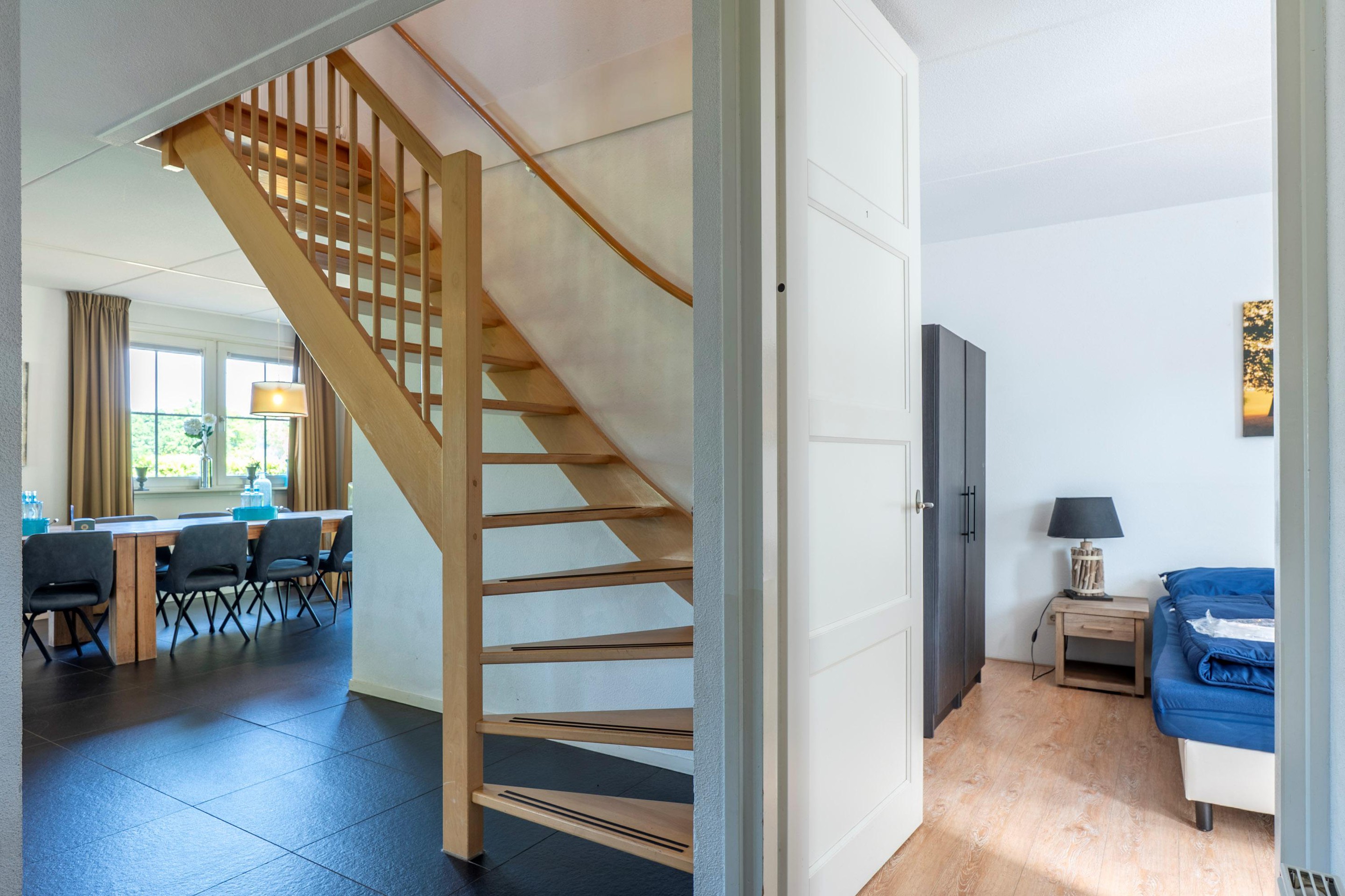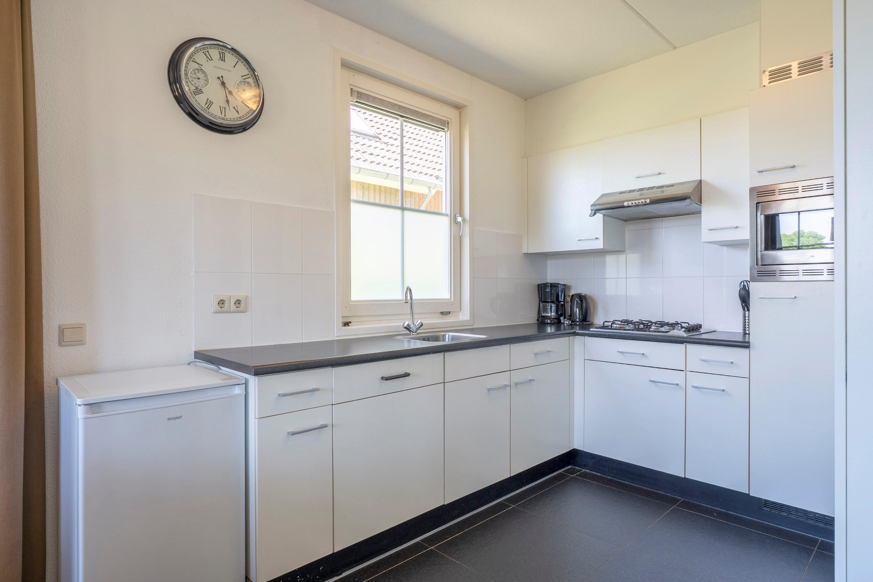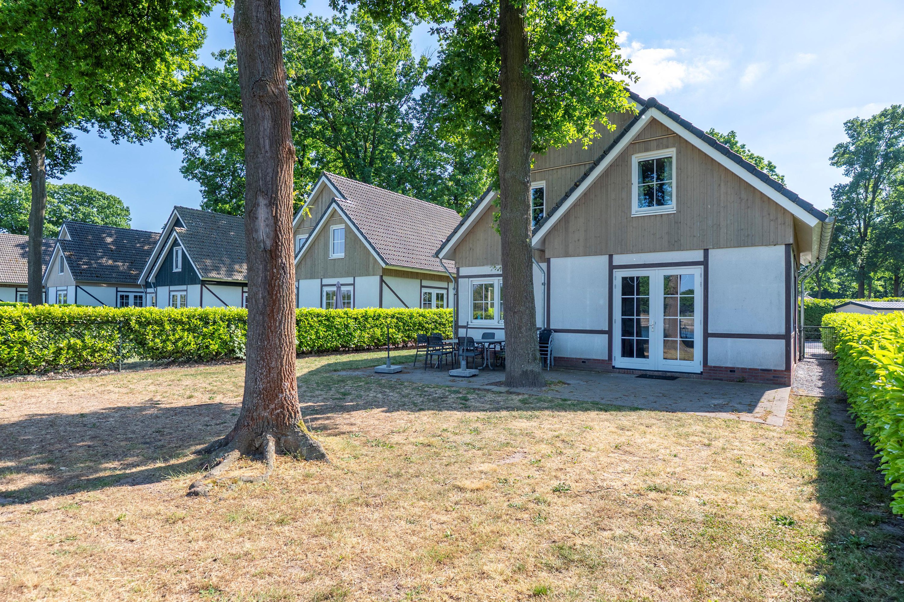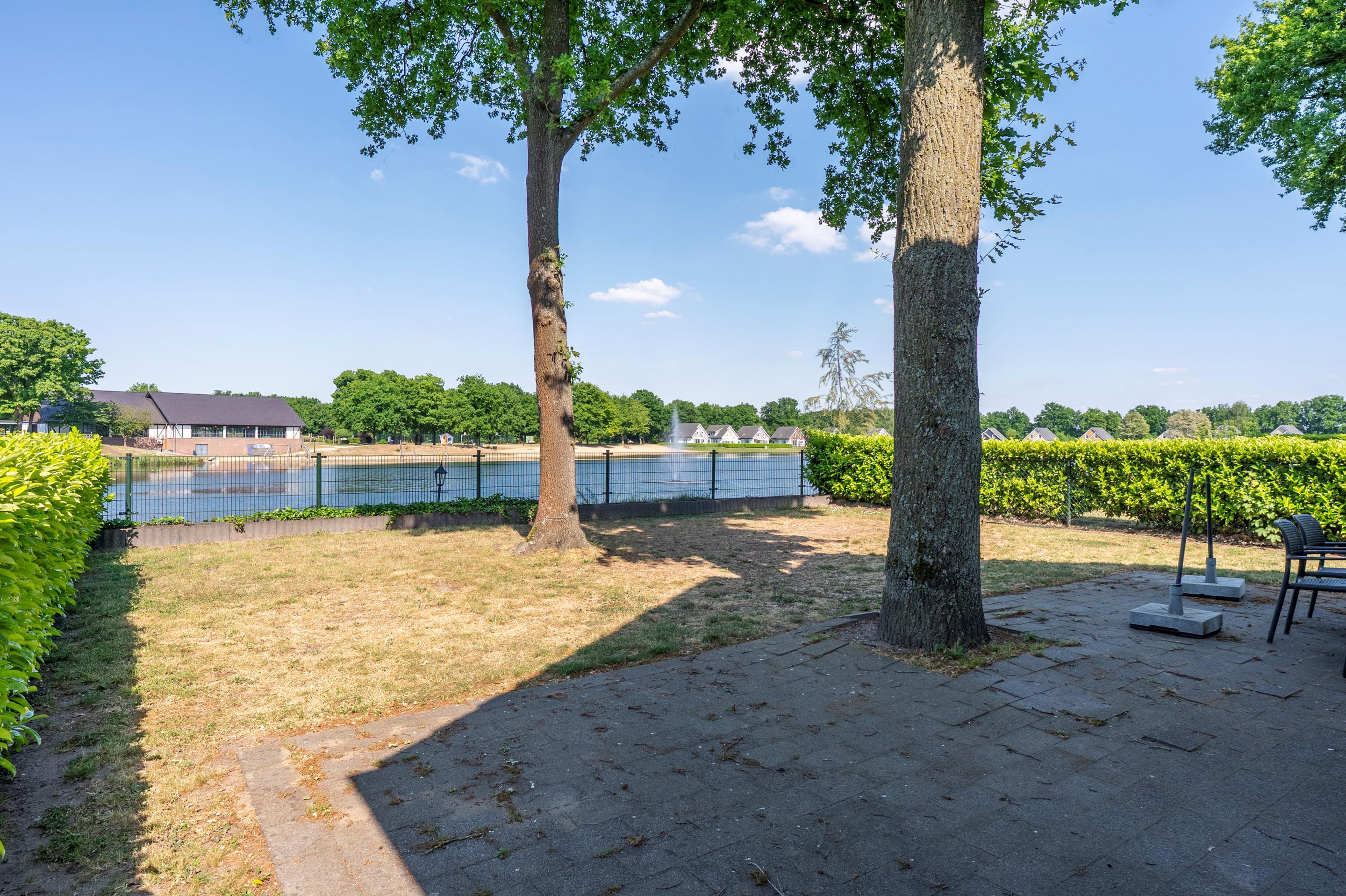 De tuin is geheel omsloten en voorzien van een terras, een gazon en een prachtig uitzicht op de recreatievijver. Aan de voorzijde van de villa is er genoeg gelegenheid voor het parkeren van meerdere voertuigen.