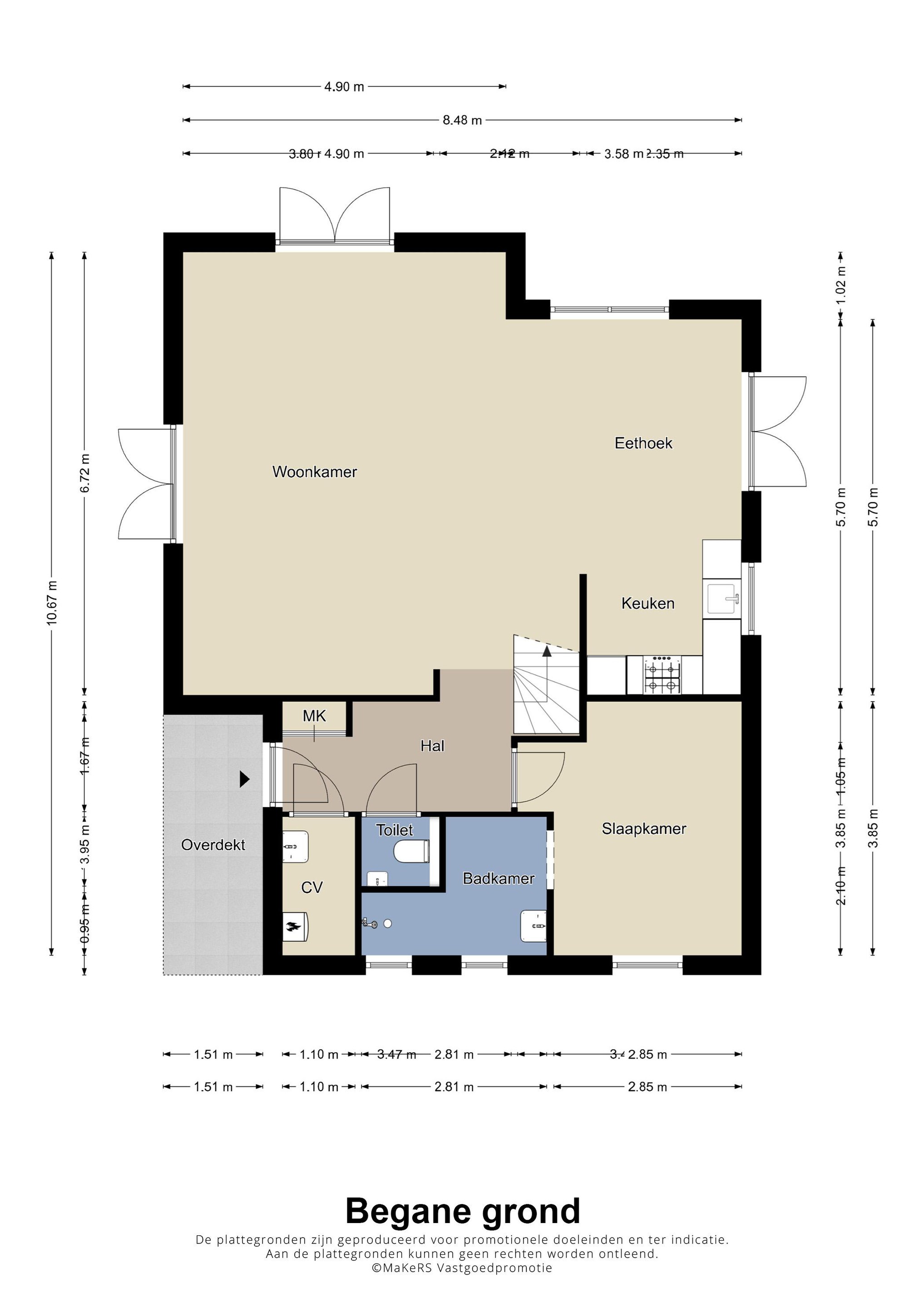Overdekte entree, hal, meterkast, cv ruimte, toilet met fonteintje.