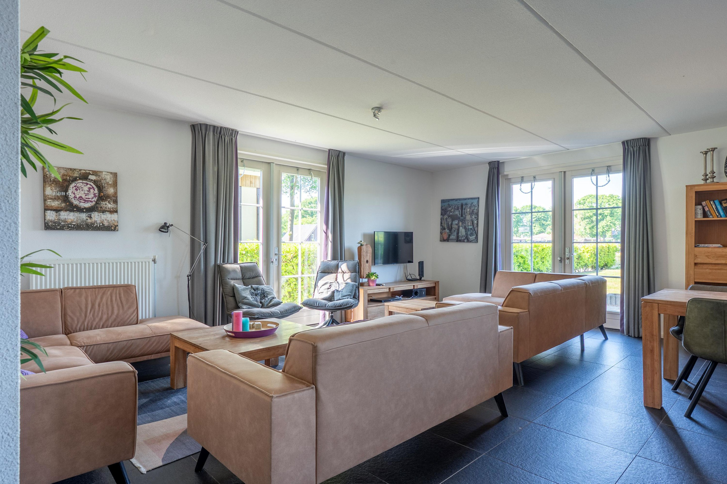 Zowel vanuit de woon- als de eetkamer is er middels openslaande deuren toegang tot de ruime tuin.