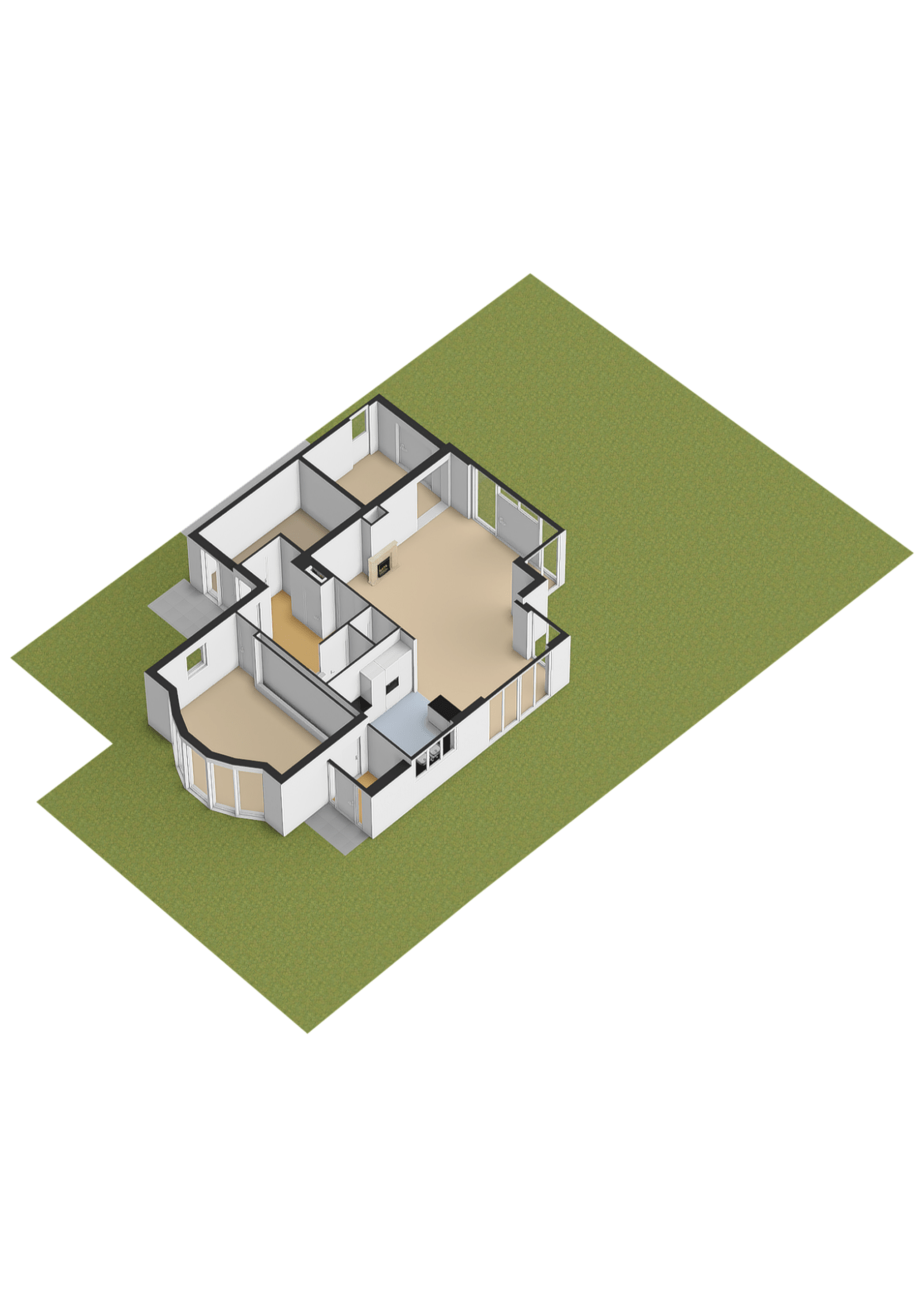 Begane grond Bij binnenkomst stap je via een overdekte entree een ruime hal binnen. Deze hal is de centrale spil van het huis en biedt toegang tot de werkkamer, berging en woonkamer. Hier vind je ook de meterkast, een toiletruimte en de trap naar de eerste verdieping. Aan de voorzijde van de woning ligt de lichte werkkamer, die extra karakter krijgt door een erker en een eigen entree met een kleine hal.