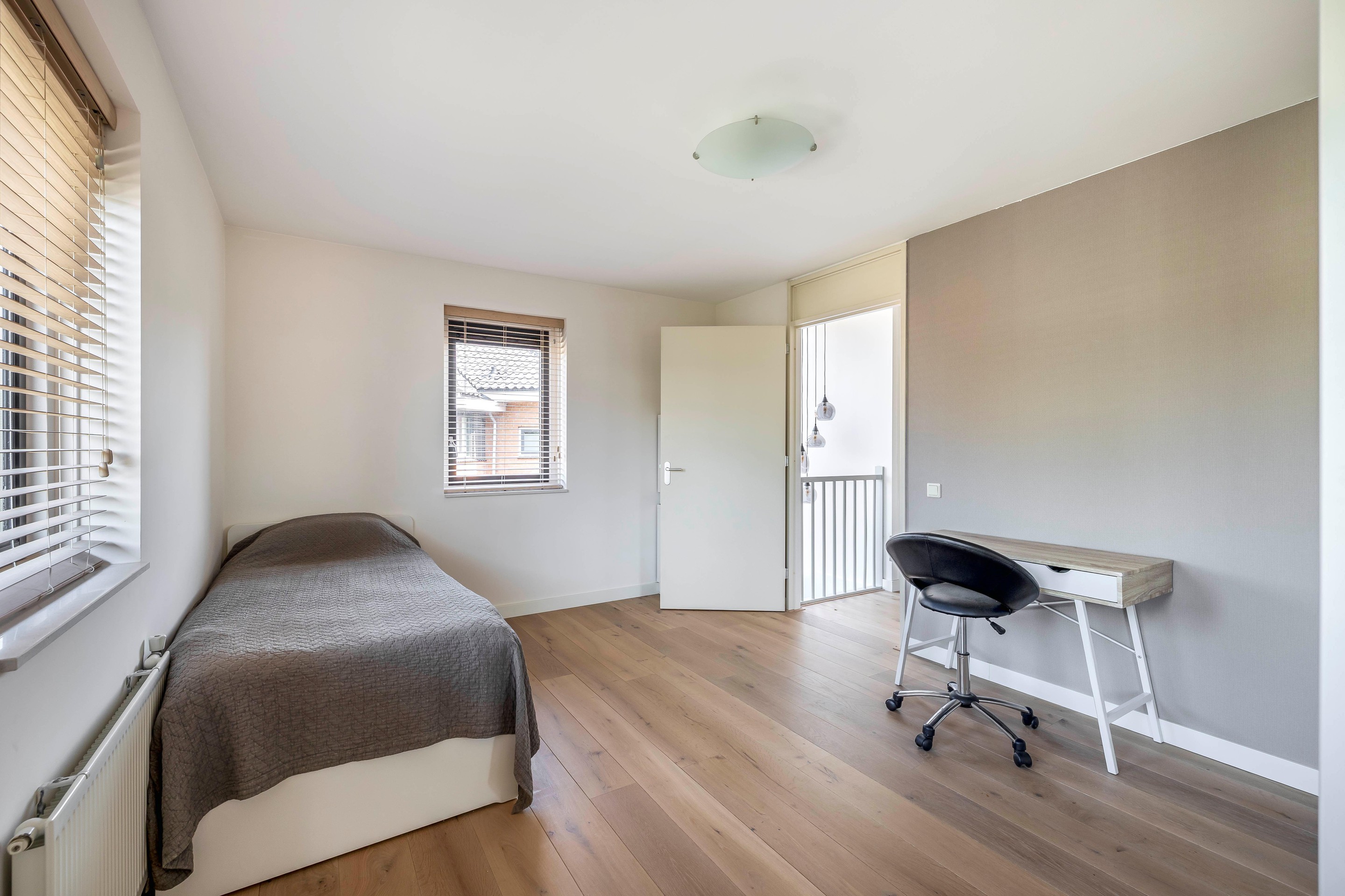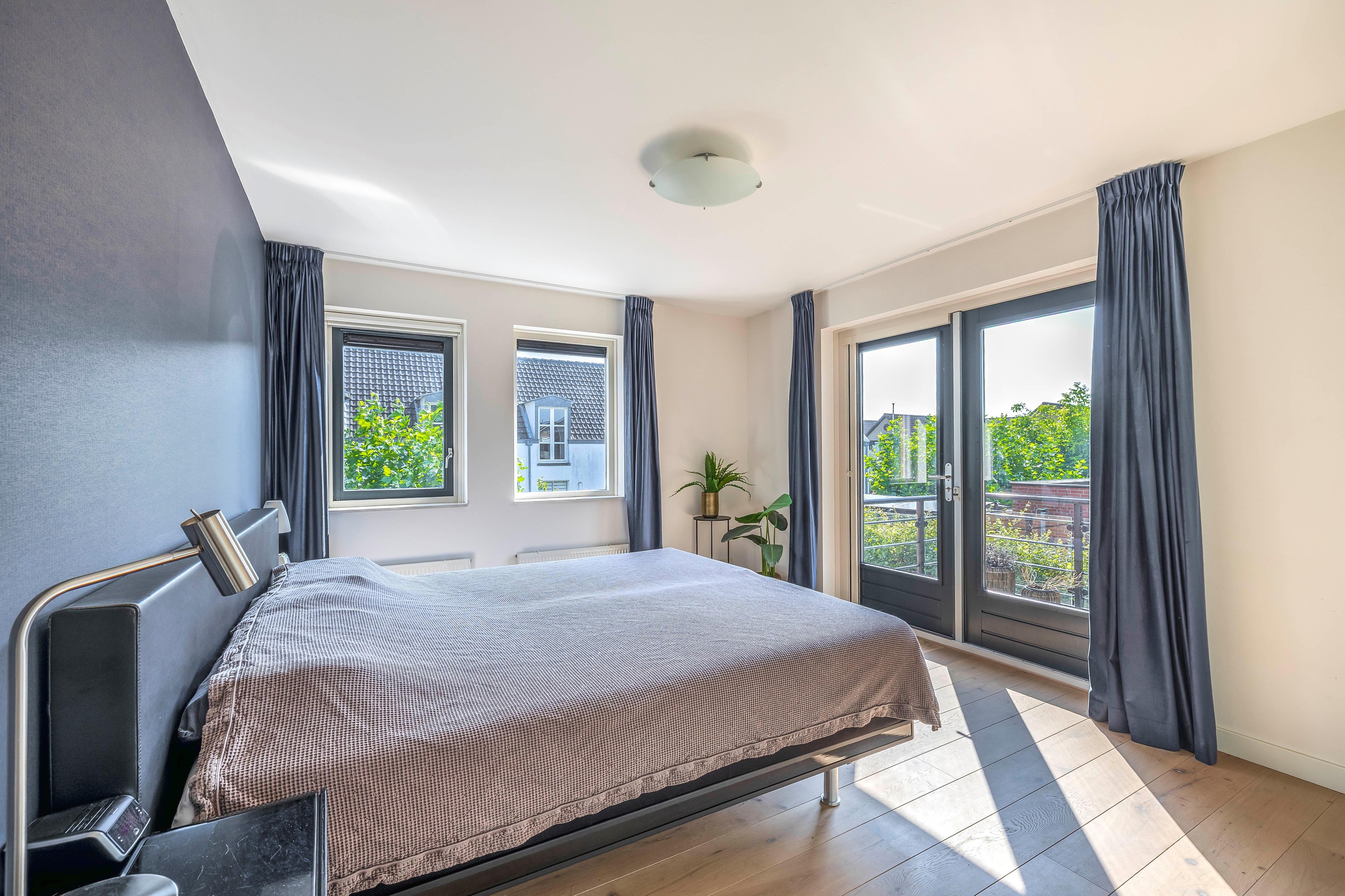 Vanuit de overloop heb je toegang tot drie comfortabele slaapkamers. De slaapkamer aan de voorzijde van het huis is voorzien van een handige inbouwkast. Aan de achterzijde bevindt zich de slaapkamer die via openslaande deuren toegang geeft tot het balkon op het westen, ideaal voor een avondzonnetje. Ook hier vind je een ingebouwde kast met praktische schuifdeuren. De derde slaapkamer, gelegen aan de zijkant, is bijzonder licht dankzij de hoge ramen en heeft eveneens een ingebouwde kast.